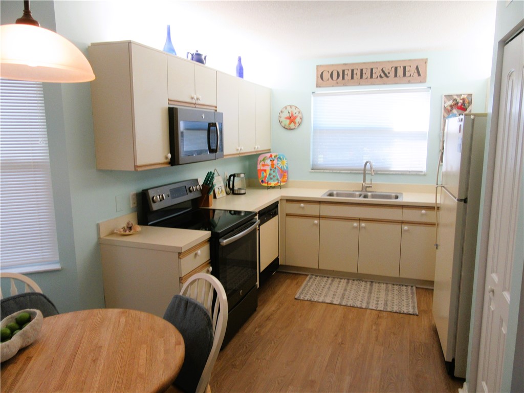 Lovely FIRST FLOOR lakefront 2/2 condo offered fully furnished! Spacious interior with vinyl plank floors, eat-in kitchen, large sun room overlooking serene water views! Located in east end of community, near clubhouse, pool, nature trail. HVAC replaced in 2021, water heater 2019. Ample closet space and primary suite with full bath and walk-in closet. Active pet friendly 55+ community offers 2 pools and clubhouses, exercise facility, tennis, nature trail to intracoastal, kayak racks and launch. Guarded front entrance as well. WOW!