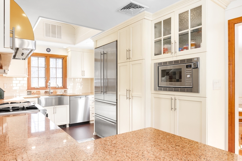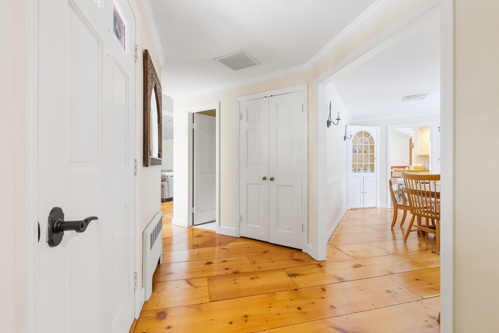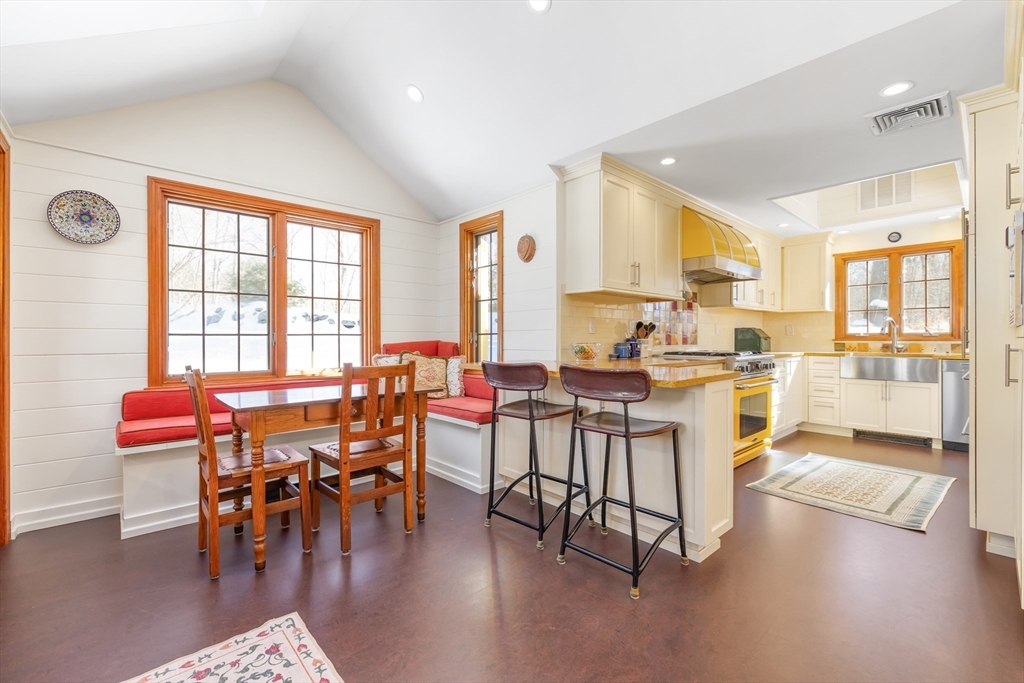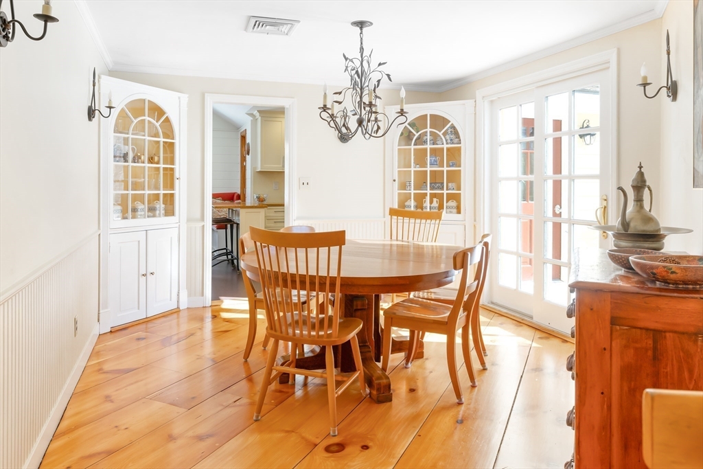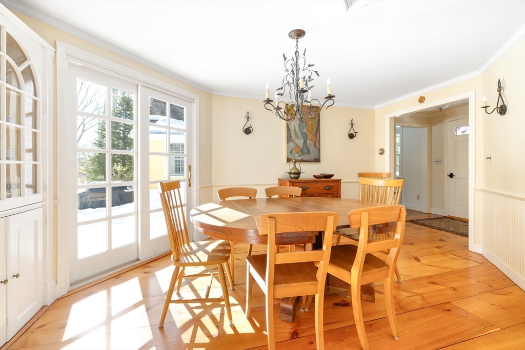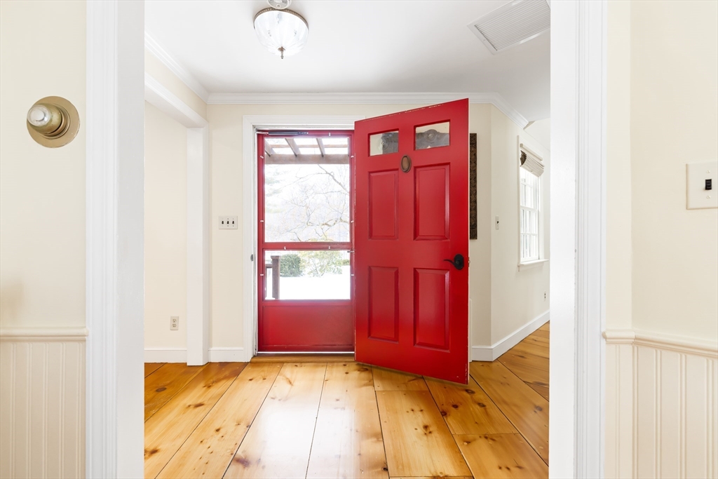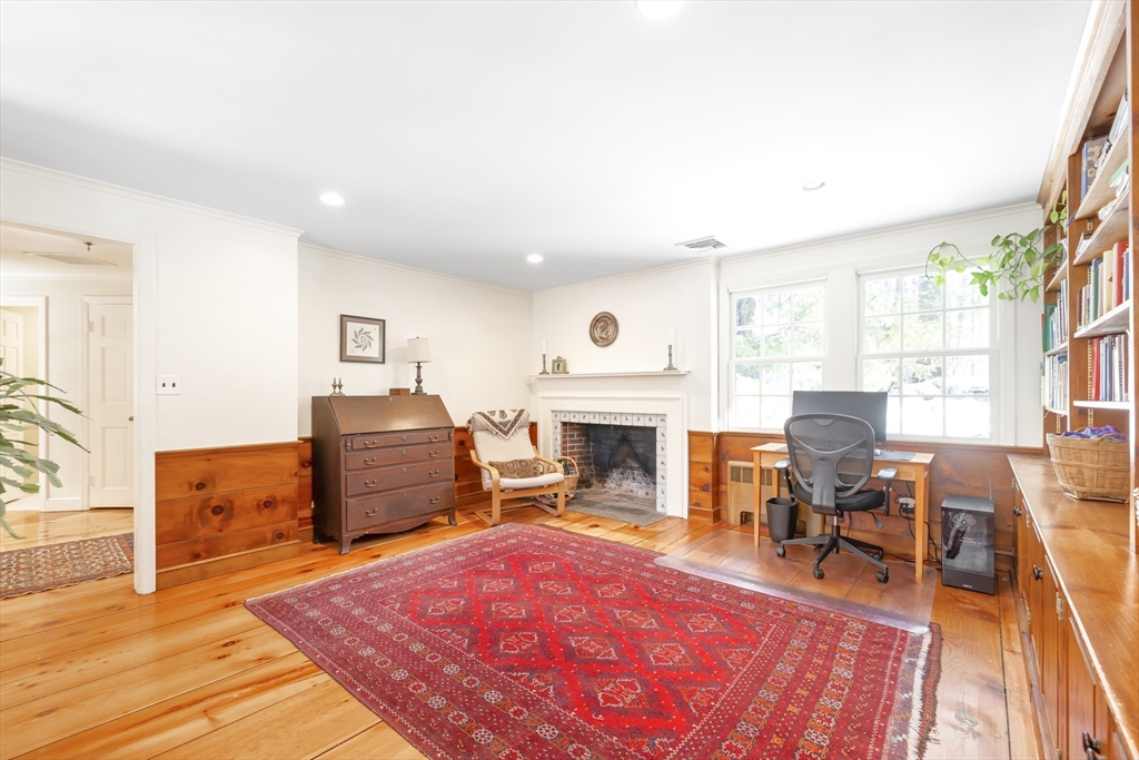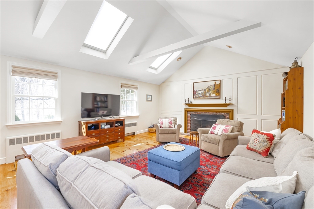 Set on a scenic country lane on 2+ private acres, this distinctive home blends timeless charm with thoughtful updates. Wide-plank pine floors and architectural details enhance the beautiful interior. The light-filled living room features a vaulted ceiling w/ exposed beams, skylights, and fireplace. A cozy den/office with custom built-ins and 2nd fireplace provides flexible living space. 4 br's are grouped in a private wing, including a 1st FLOOR PRIMARY SUITE with 2 walk-in closets and an updated bath. The renovated chef's kitchen and sunny dining room open to bluestone patios for seamless indoor-outdoor living.The finished Lower Level offers a third fireplace, mudroom, laundry, 1/2 bath, and bonus room with direct exterior access. Magnificent grounds showcase mature plantings, stone walls, a water feature, and expansive lawn space. Located in sought-after Sherborn, known for top-ranked schools, open space, trails, and the popular Farm Pond recreation area. A truly special home!