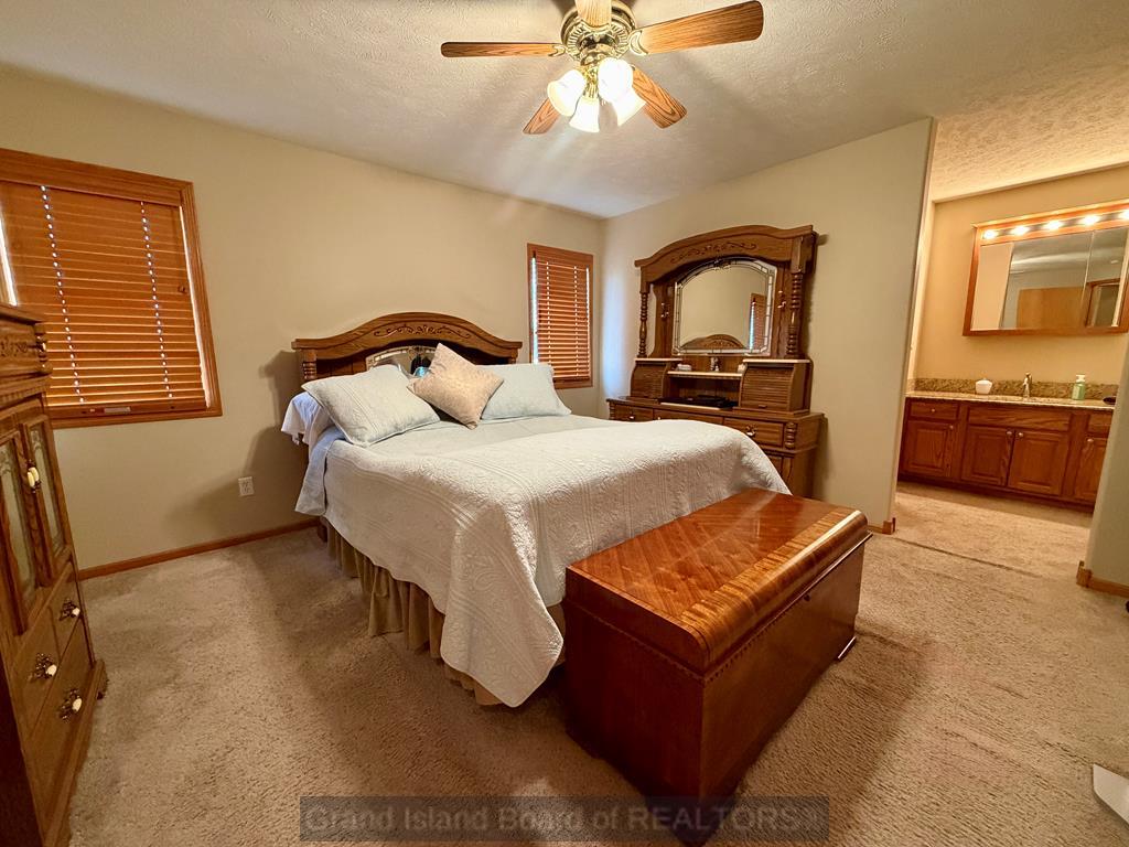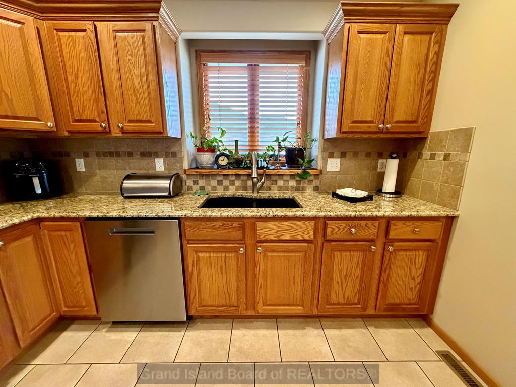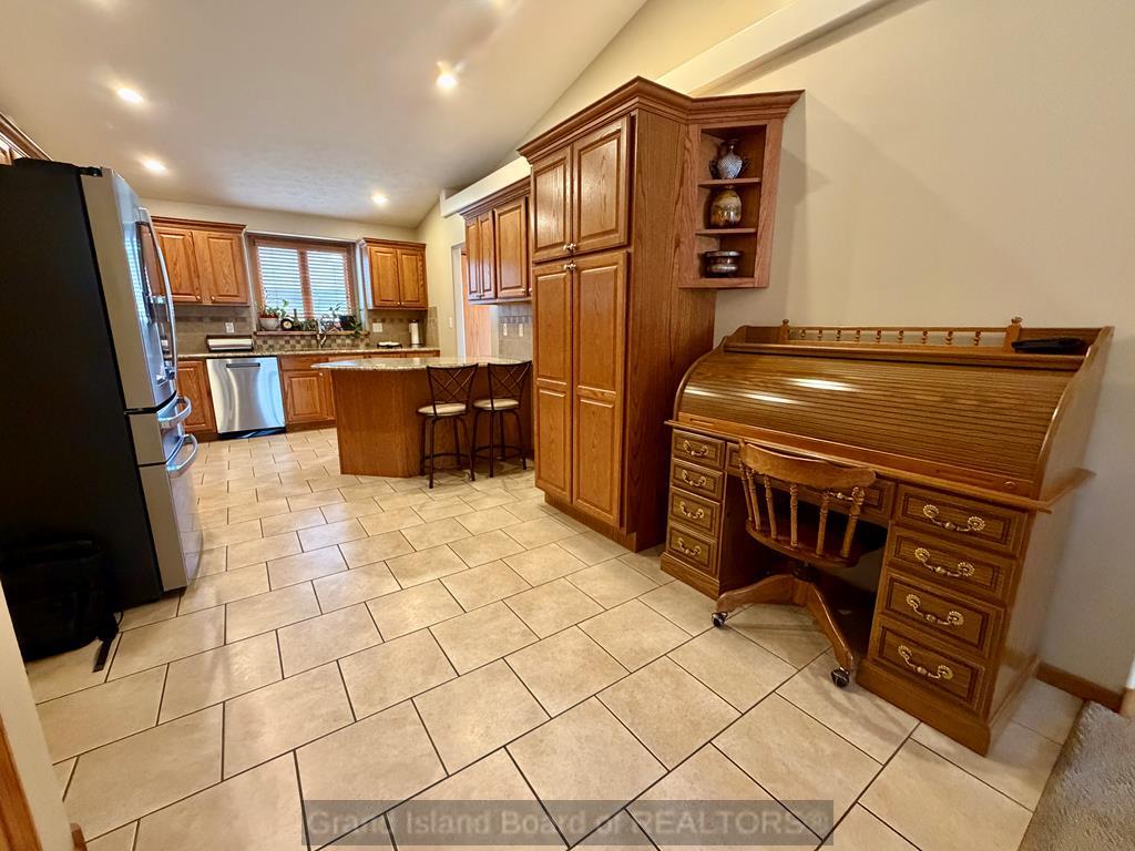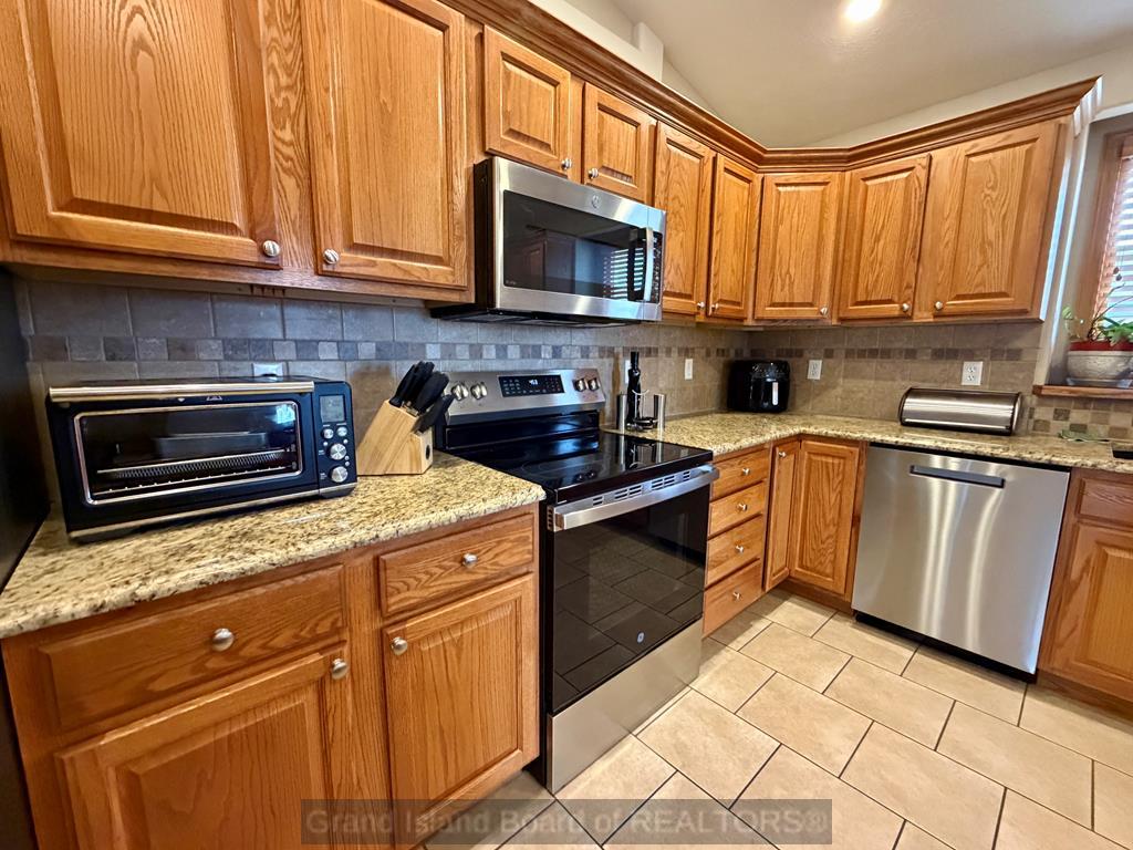 Beautifully maintained ranch-style home located on the northwest side of Grand Island! Enjoy a prime setting perfect for evening walks and quiet neighborhood living. This property features a spacious three-car garage, an inviting and functional layout, and the added privacy of no rear neighbors. Recent updates include stunning stone countertops, newer appliances (just one year old), and a recently replaced roof. Step outside to a covered deck with additional composite decking, ideal for entertaining or relaxing. The backyard also includes a versatile shed with an overhang and electricity, offering excellent storage or workspace potential.