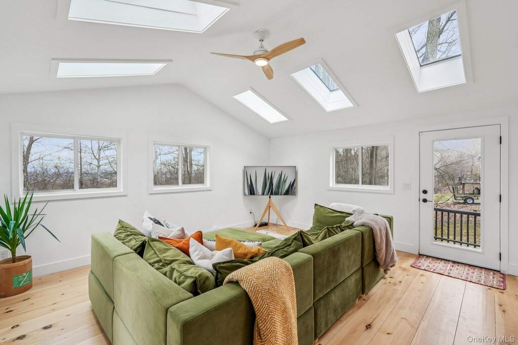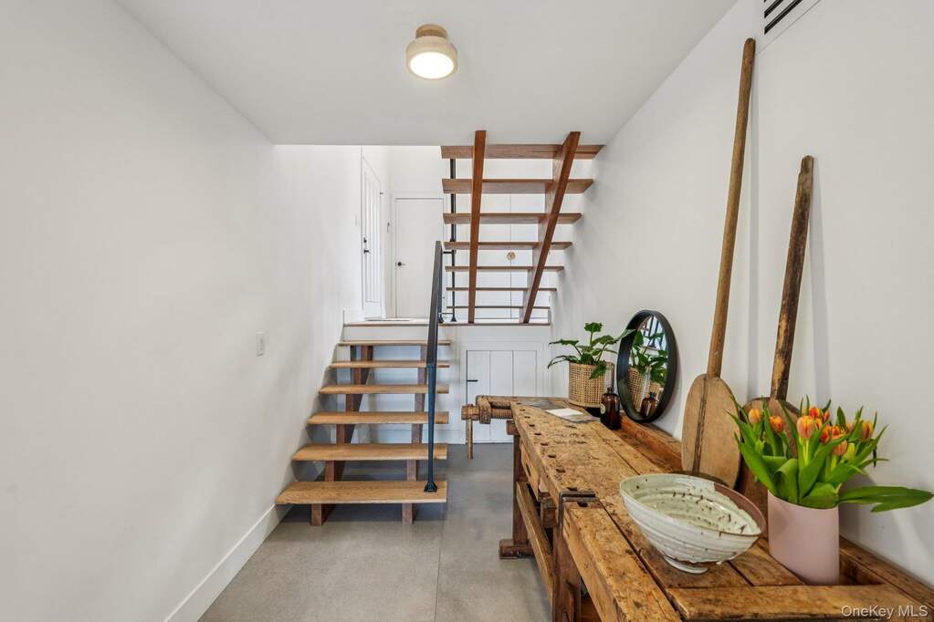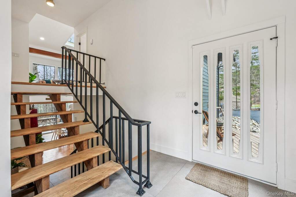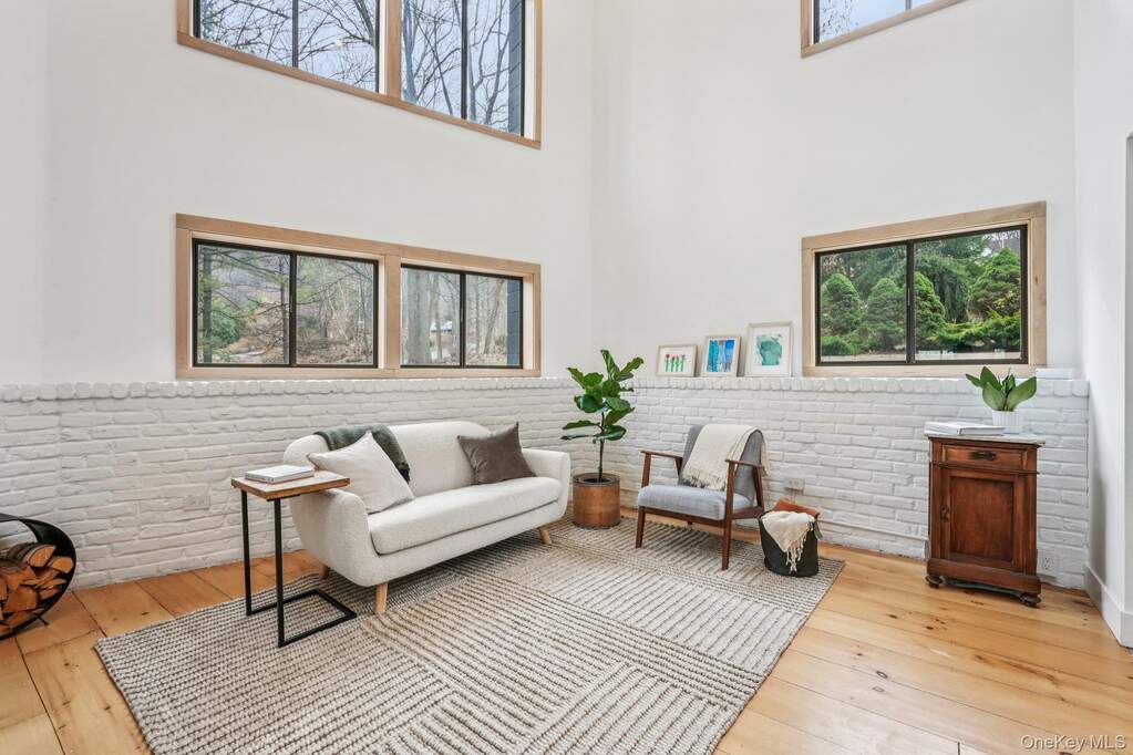 Tucked into the trees in Cornwall, 4 Mountain Brook Road feels more like a modern retreat than a traditional house. A full Japandi-inspired renovation blends Japanese calm with Scandinavian warmth, with wide-plank wood, sculptural lighting, and large-format tile creating a clean, serene backdrop for everyday living. With 4 bedrooms and 2 baths, the main level flows easily from the living area-anchored by a sleek gas fireplace and custom Douglas Fir post-into a true chef's kitchen with Fisher & Paykel appliances, Caesarstone counters, and radiant-heated floors, so everything from quiet weeknights to larger gatherings moves naturally out to the deck. Spa-style baths bring a boutique-hotel feel home with a soaking tub, rain shower, and thoughtful lighting that make daily routines feel a bit more special, while custom closets, a well-designed laundry room, and smart-home systems keep life organized behind the scenes. Upstairs, three bedrooms and a loft lounge with a living wall and bar area open to the level below, creating a dramatic yet comfortable second-floor hangout. Outside, new hardscaping, oxidized steel edging, and layered plantings turn the acre into a series of outdoor "rooms" for arrival, entertaining, and quiet moments to watch the seasons change. Located in the heart of Cornwall, this home pairs modern design with the small-town charm and natural beauty that make the Hudson Valley so sought after-minutes to cafes and boutiques in Cornwall-on-Hudson, riverfront parks, Storm King Art Center, and Black Rock Forest, with easy access to Route 9W, the Thruway, and Metro-North for a straightforward NYC commute. Whether it is a quiet coffee in town, a sunset along the river, or a day on the trails, this address puts the best of Cornwall living right at your doorstep.