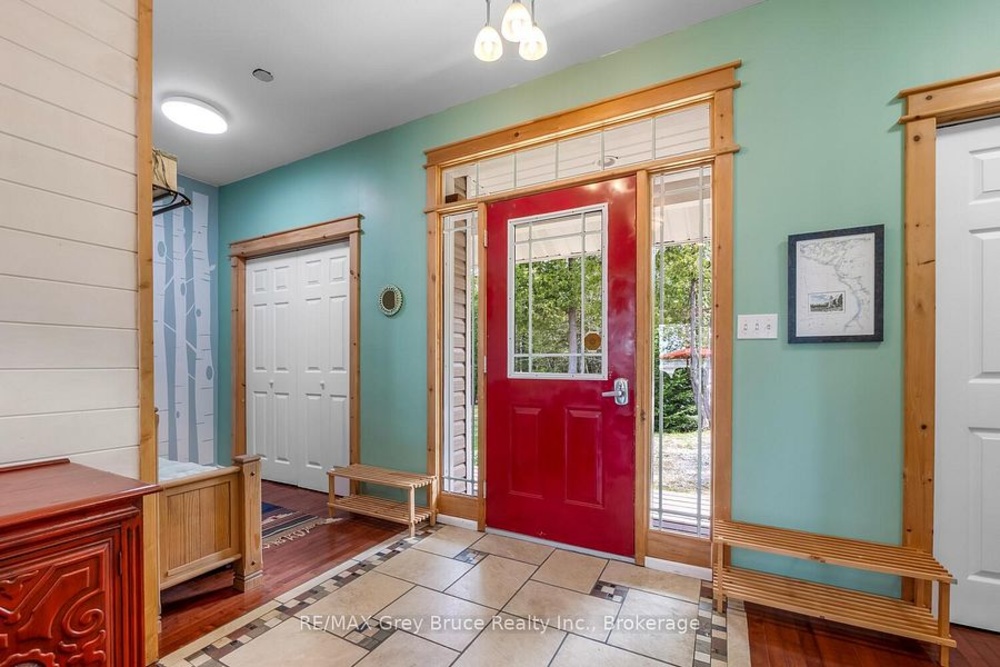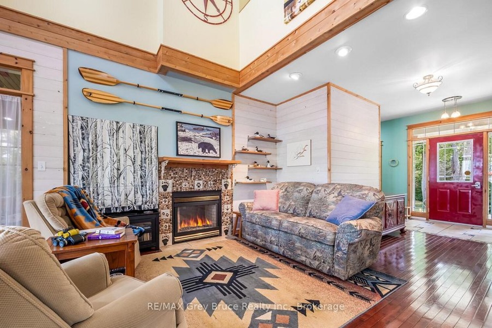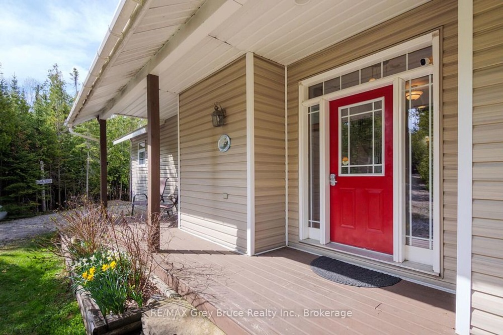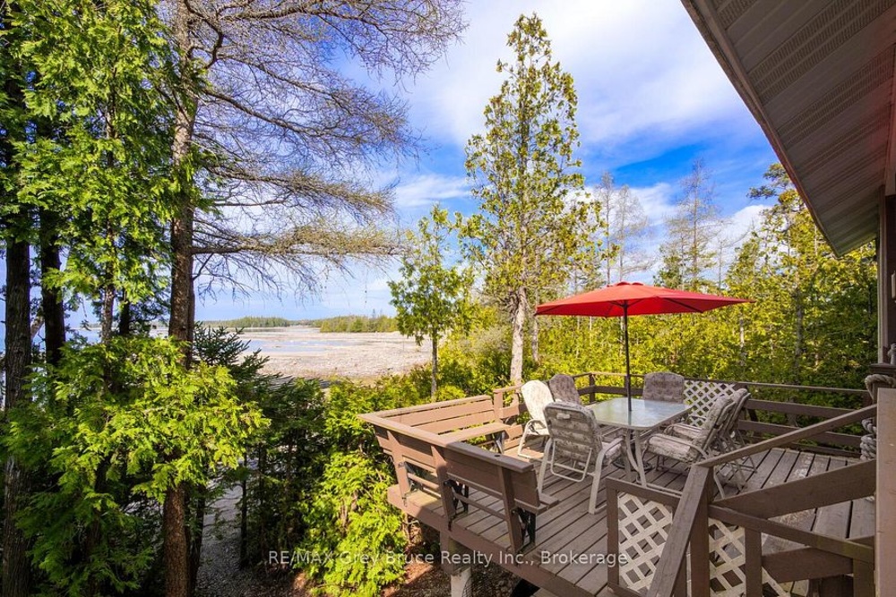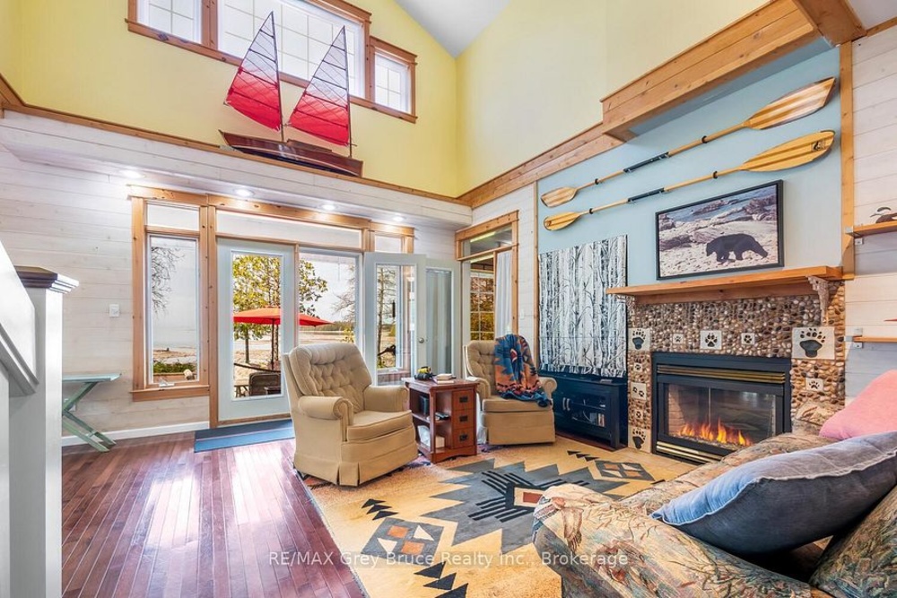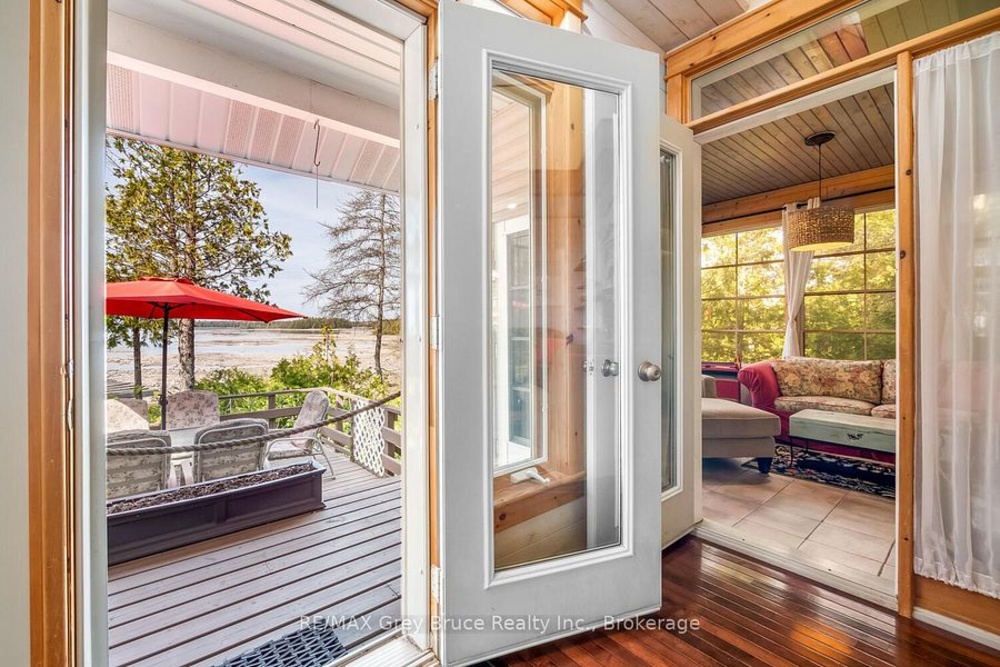 Turn-key Lakefront Home/Cottage with Sandy Shoreline! Your Bruce Peninsula retreat near Tobermory awaits. Offering a rare sandy beach shoreline in a protected cove, this property is perfect for family getaways, weekend retreats or retirement living. Sited a short drive to Tobermory and directly across from the Bruce Peninsula National Park, this property delivers the ultimate four-season recreational lifestyle. Arrive via a winding, tree-lined driveway and step into a serene setting with panoramic lake views and spectacular sunsets. Enjoy outdoor living with expansive decks, a stone waterfront patio, and covered porches - ideal for relaxing, entertaining, or soaking in the natural surroundings. The clean, sandy-bottom waterfront offers easy entry for all ages-perfect for swimming, kayaking, paddleboarding, and endless summer fun. Evenings are made for campfires by the shore, with the gentle sound of waves completing the experience. Inside, this thoughtfully designed 3 bedroom, 2-bathroom home/cottage features a bright kitchen, dining, and living area with vaulted ceilings. A double-sided fireplace adds warmth and ambiance to both the living room and primary bedroom retreat. The main floor includes a spacious secondary bedroom, a full bath, plus a private primary suite with ensuite and walkout to a screened three-season sunroom. A perfect getaway for morning coffee or quiet evenings by the woodstove. The loft-style bedroom is a dream for kids, with space for bunk beds and play, or consider use as a home office, taking in the elevated lake views. Additional features include a detached garage with loft space for storage. Offered fully furnished (turnkey), this is a ready-to-enjoy waterfront property in one of Ontario's premier cottage country destinations. Close to hiking the Bruce Trail, the Grotto, Georgian Bay, and Lake Huron - this is your gateway to adventure and relaxation.Co-listed with Ashley Jackson from Remax Grey Bruce Realty Inc.