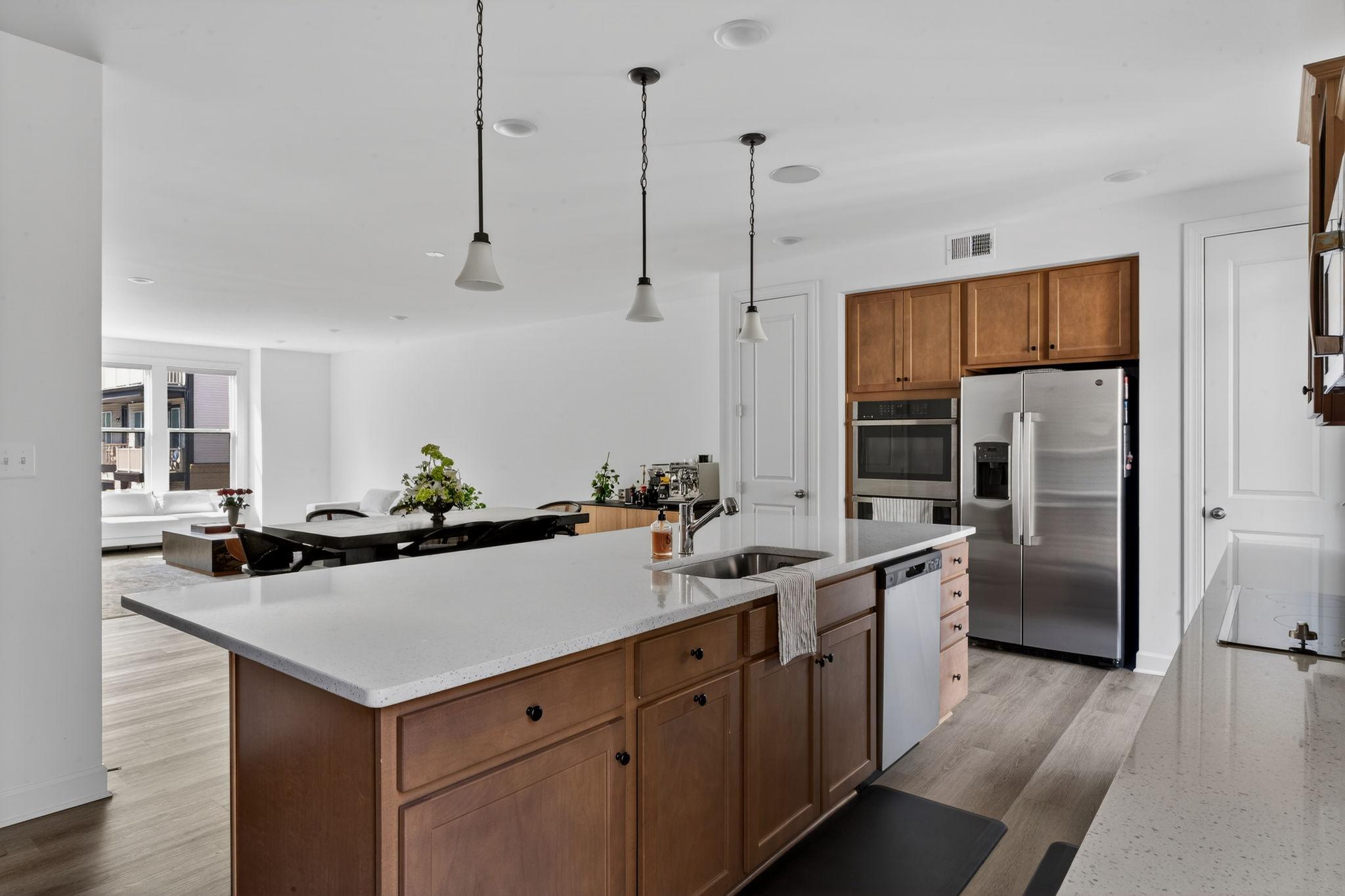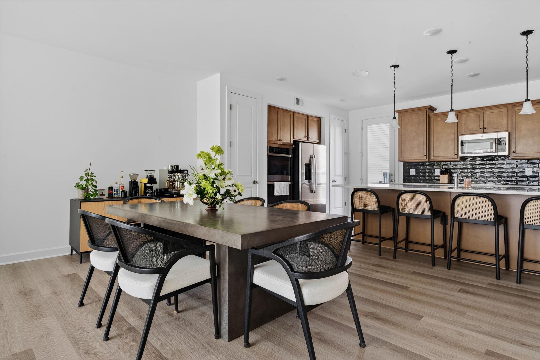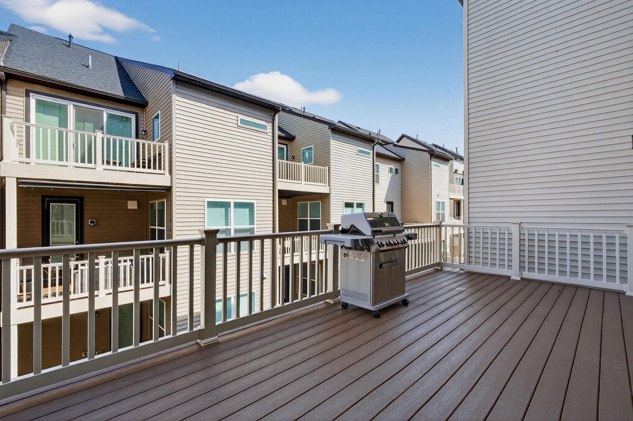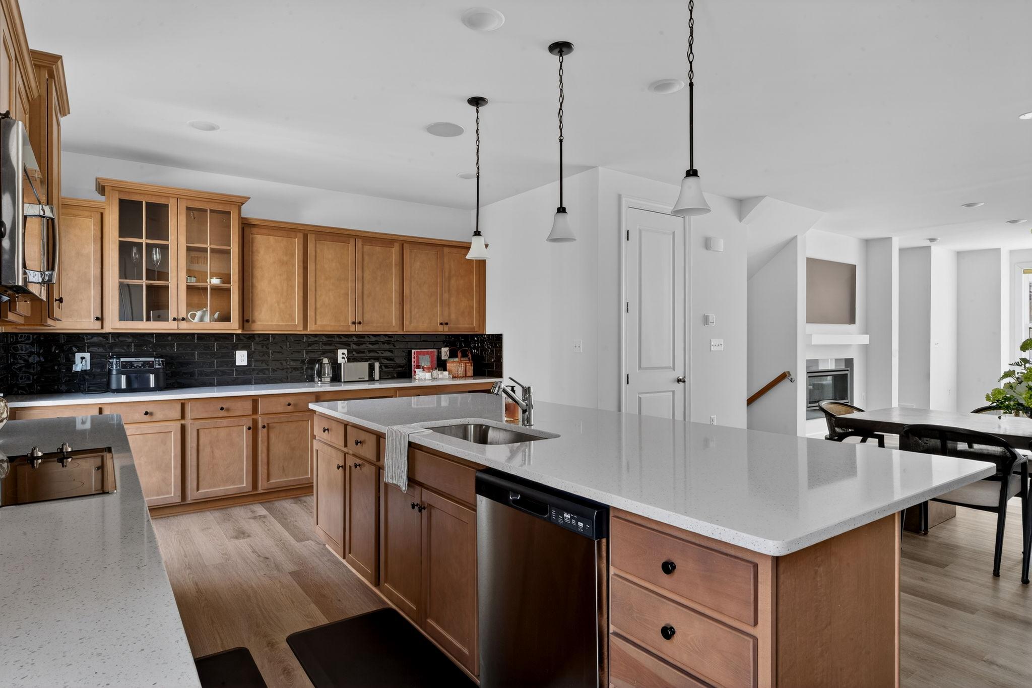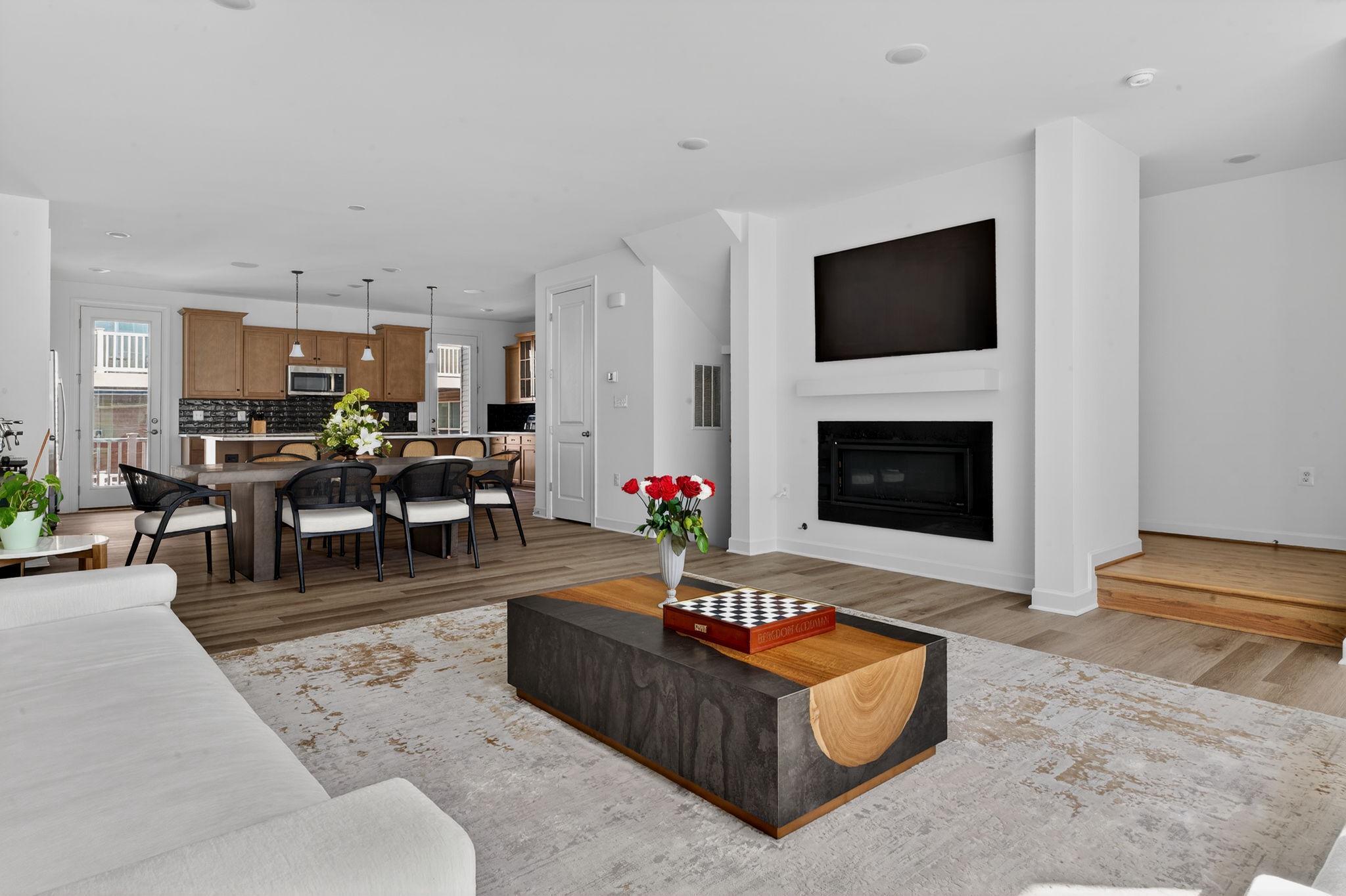 Tucked within the sought-after Boulevards at Westfields, this nearly new 2024 townhome offers a refined blend of modern design, comfort, and effortless living across three beautifully appointed levels.Upon entry, a spacious two-car garage is complemented by a versatile lounge or recreation room—ideal as a home office, media space, or guest retreat—complete with a convenient half bath and additional storage.A short ascent leads to the heart of the home, where an open-concept main level is bathed in natural light. The expansive living and dining areas flow seamlessly into a stunning kitchen, featuring striking black subway tile, warm-toned cabinetry, and a bright, airy ambiance that feels both contemporary and inviting. Perfectly positioned mid-row with no direct homes in front, the residence enjoys an abundance of natural sunlight throughout the day. A private deck extends the living space outdoors—ideal for entertaining or relaxed evenings of grilling.The upper level is thoughtfully designed for both comfort and functionality, highlighted by a serene primary suite with a walk-in closet and a well-appointed en-suite bath. Two additional bedrooms, a full hall bath, and a conveniently located laundry room complete this level.Enhancing the home’s modern appeal are smart features including an integrated speaker system and select motorized shades, both easily controlled from your phone.Stylish, sun-filled, and exceptionally well maintained, this residence presents a rare opportunity to own a truly turnkey home in one of Chantilly’s most desirable communities.