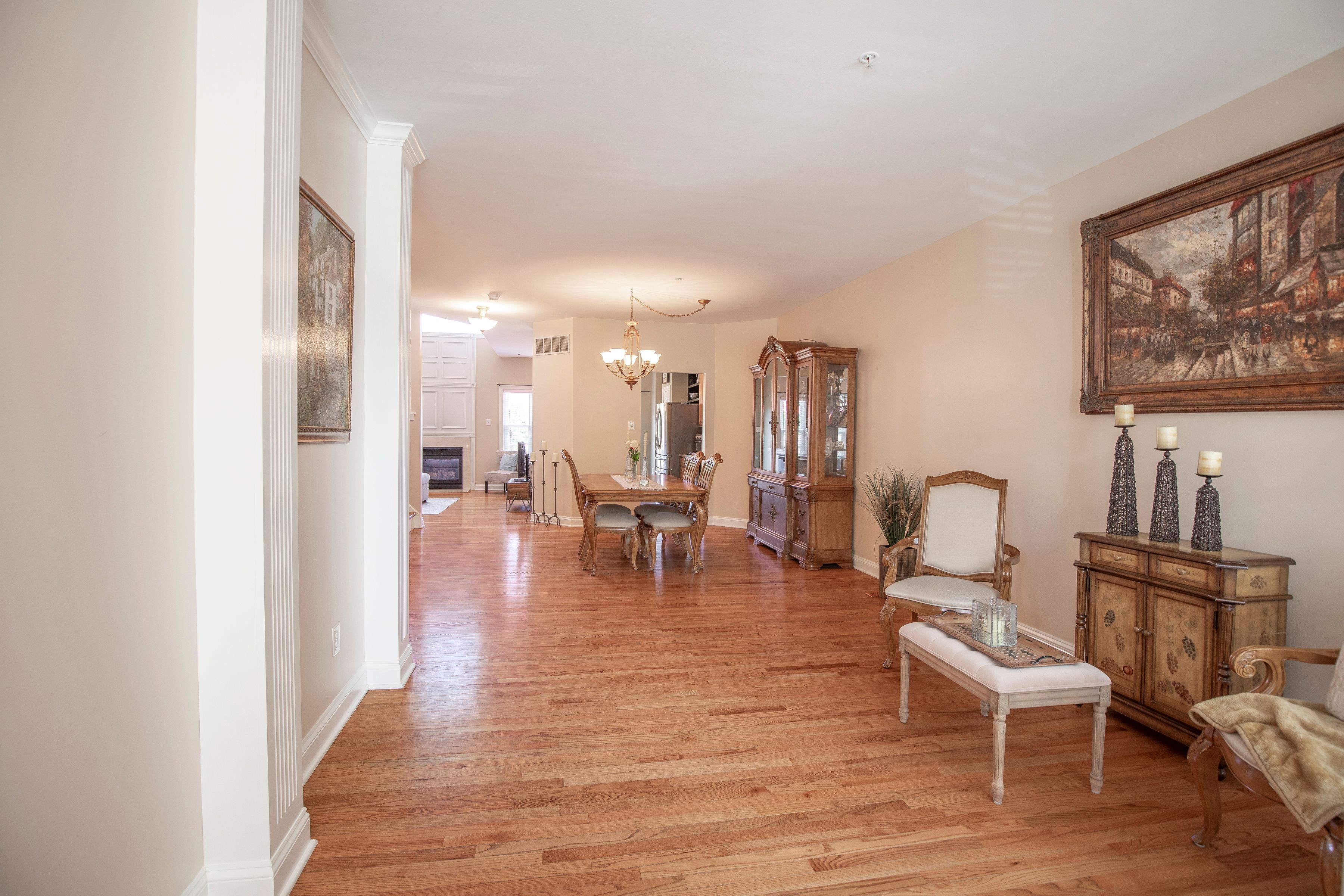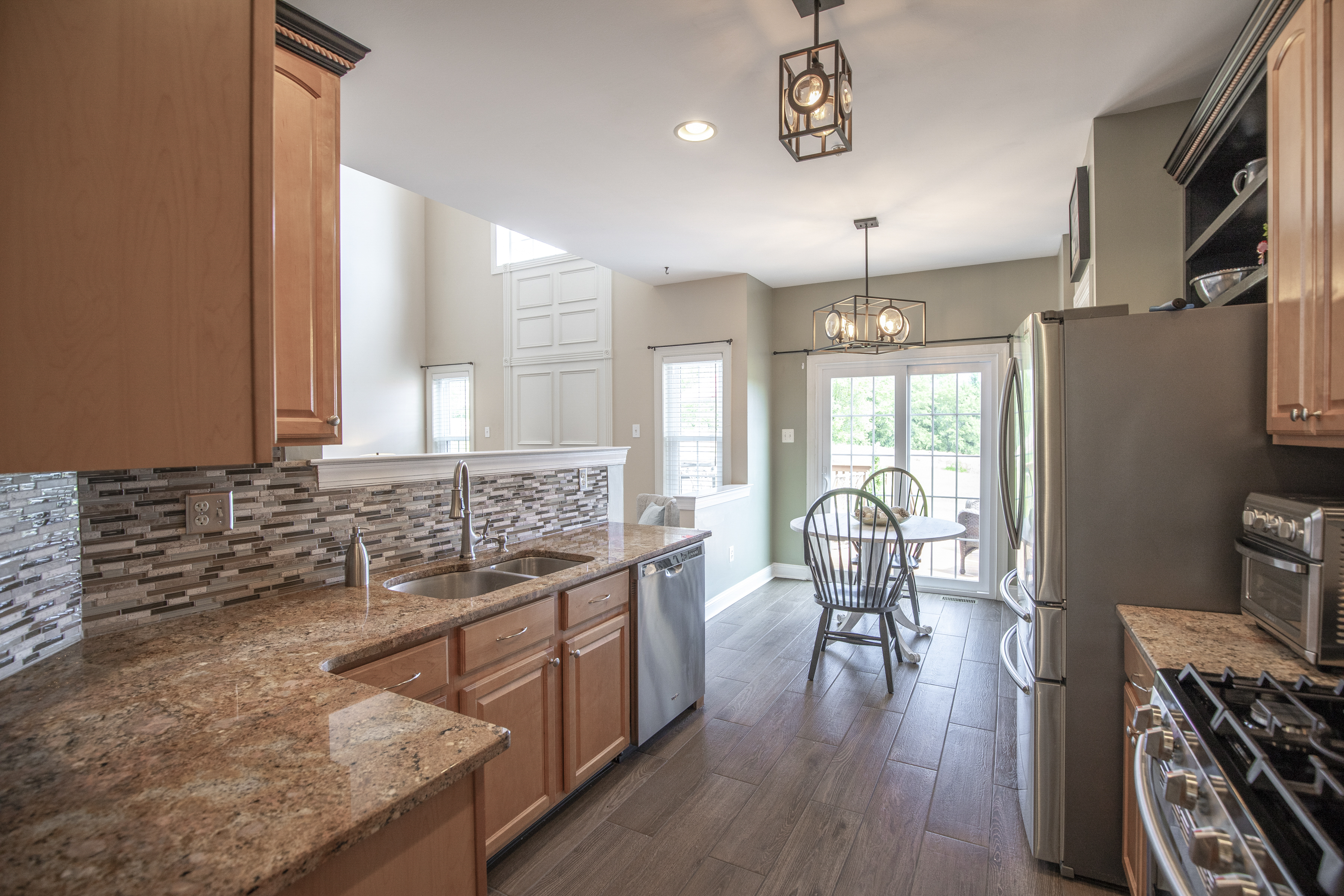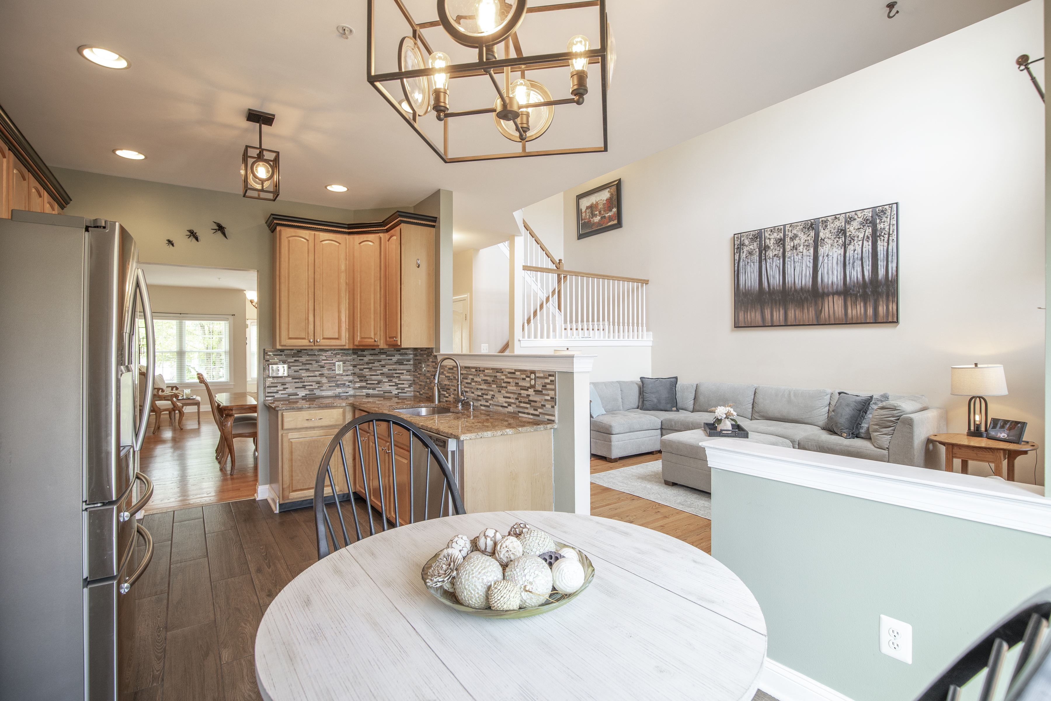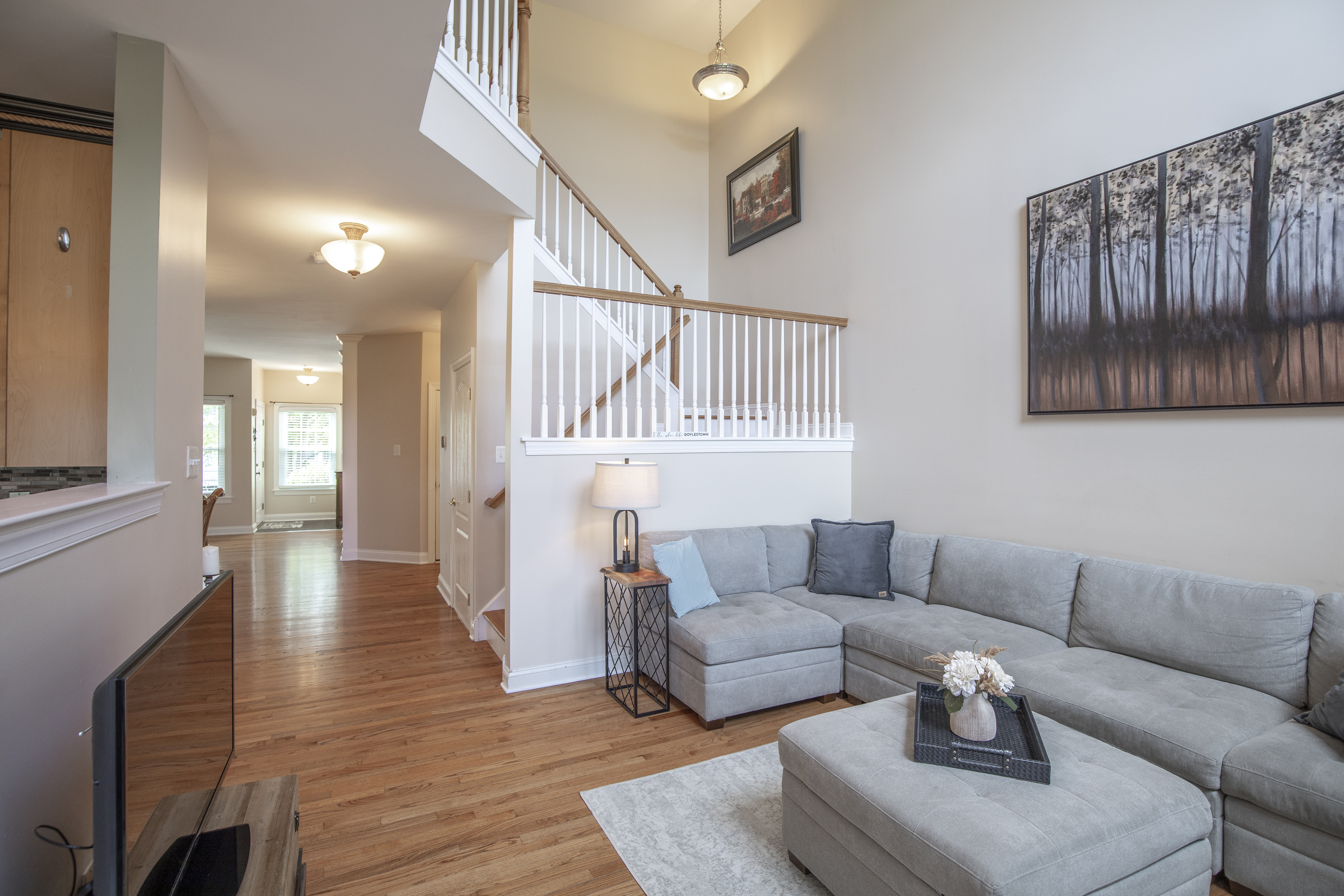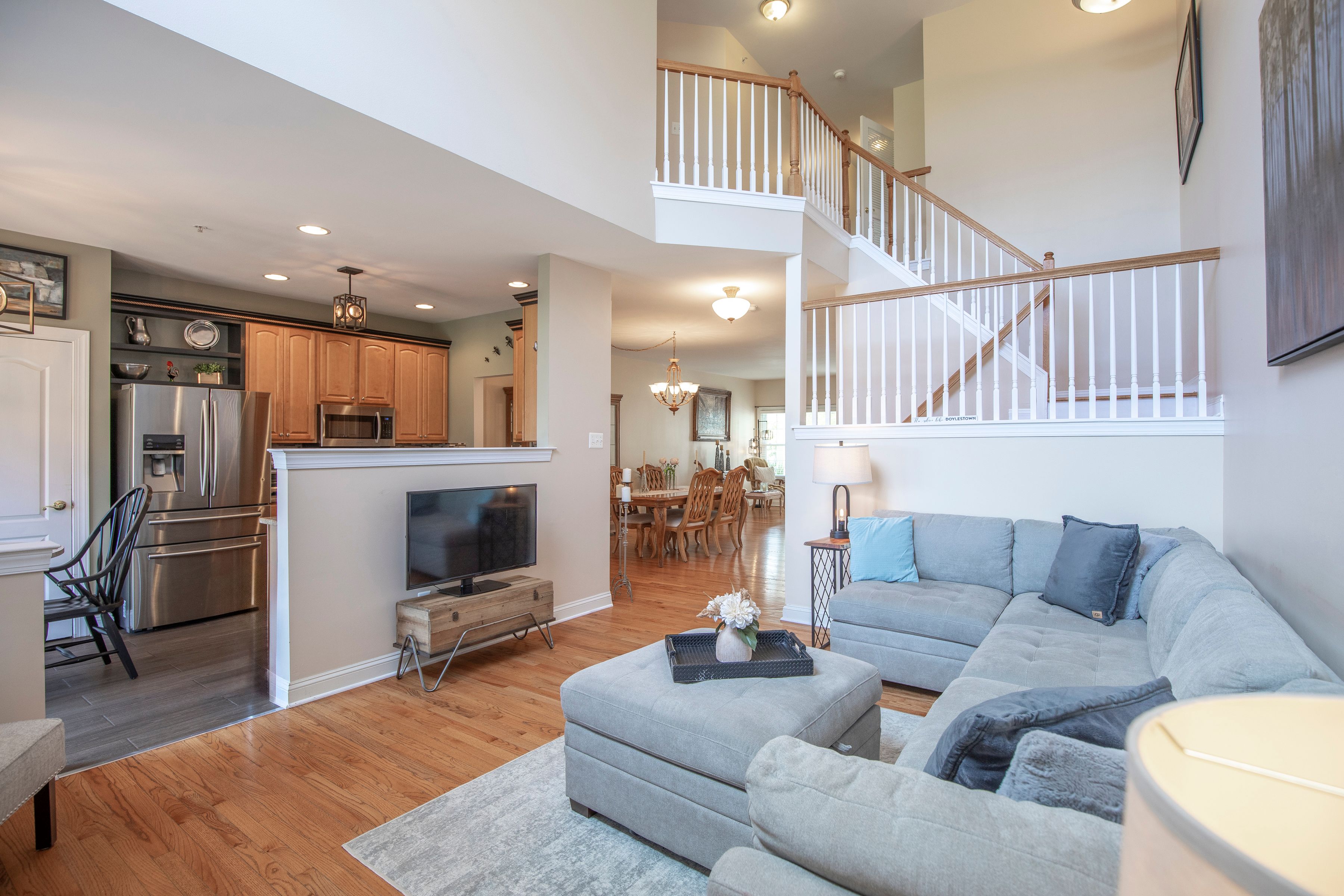 Set within the desirable Summer Hill community and backing to preserved Township land, this former model home offers a rare combination of privacy, natural light, and effortless living. Positioned on a premium lot, the setting feels open and serene, with peaceful views that extend well beyond the home. A covered front porch welcomes you inside, where a gracious foyer opens to a flowing, light-filled layout designed for both everyday comfort and entertaining. The living and dining areas connect seamlessly, creating an inviting space with understated elegance. The kitchen has been thoughtfully updated with granite countertops, stainless steel appliances, gas cooking, custom tile backsplash, and a built-in beverage cooler. The adjoining breakfast area offers flexible space for casual dining or seating and opens to a TimberTech deck, creating a private outdoor retreat overlooking preserved green space. A dramatic two-story family room anchors the home, featuring a gas fireplace and expansive windows that fill the space with natural light. Upstairs, the primary suite provides a peaceful retreat with a vaulted ceiling, generous closet space, and tranquil views. The remodeled bath features a soaking tub, glass-enclosed shower, and dual vanity. Two additional bedrooms are well-proportioned and share an updated hall bath, while a second-floor laundry adds everyday convenience. The finished lower level offers flexible living space ideal for a home office, fitness area, or media room, along with additional storage. Over time, the home has been thoughtfully improved with updated systems, roof, siding, windows, and interior enhancements, reflecting consistent care and pride of ownership. Located just minutes from the heart of Doylestown Borough, with its restaurants, boutiques, and cultural attractions, and a short drive to New Hope and Lambertville, the home offers easy access to the best of Bucks County. Convenient access to Philadelphia and New York City further enhances its appeal for both full-time living and weekend use. Offered fully furnished, including existing furnishings and appliances, the home provides a truly turnkey opportunity with an easy, immediate transition.