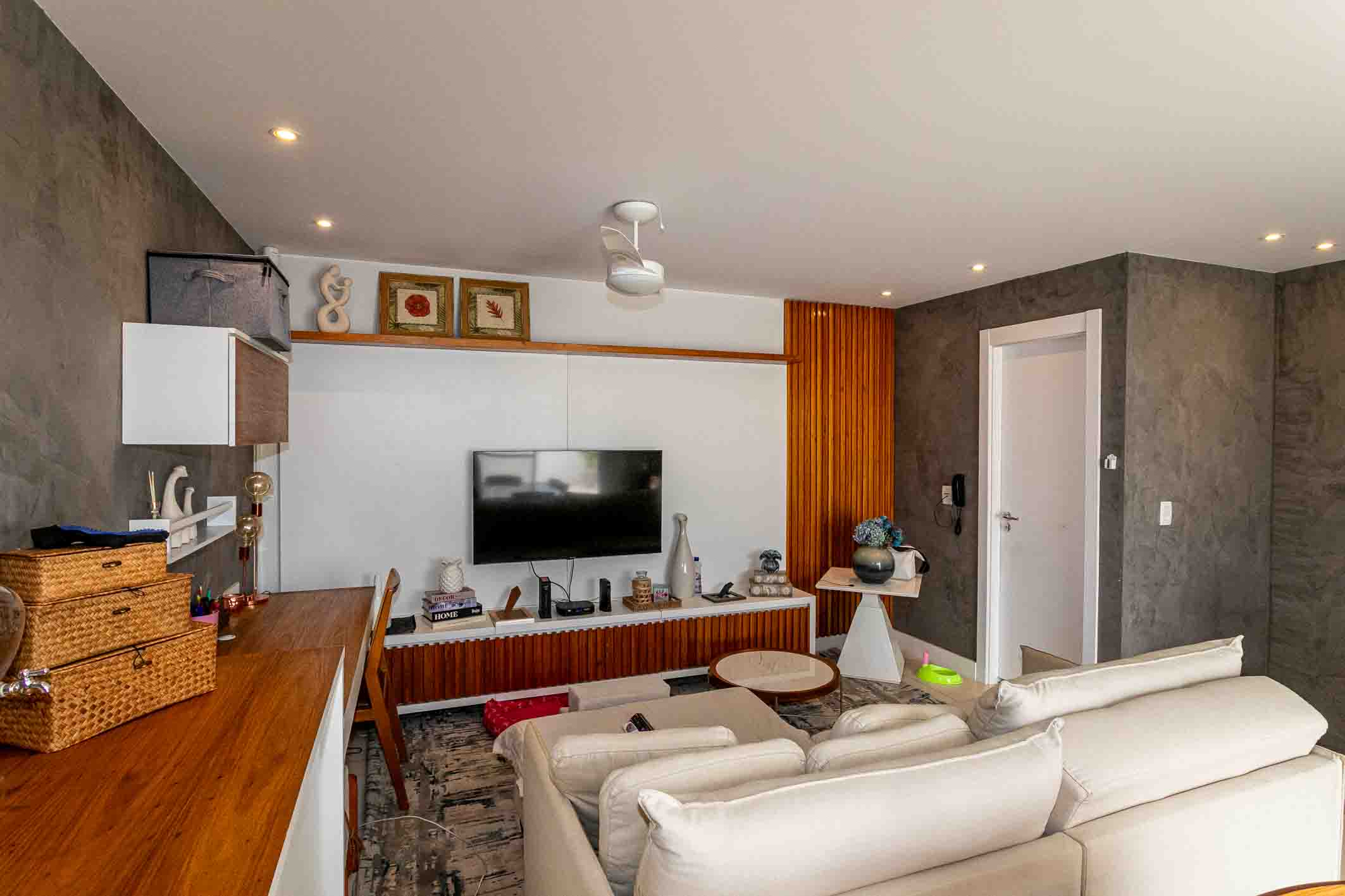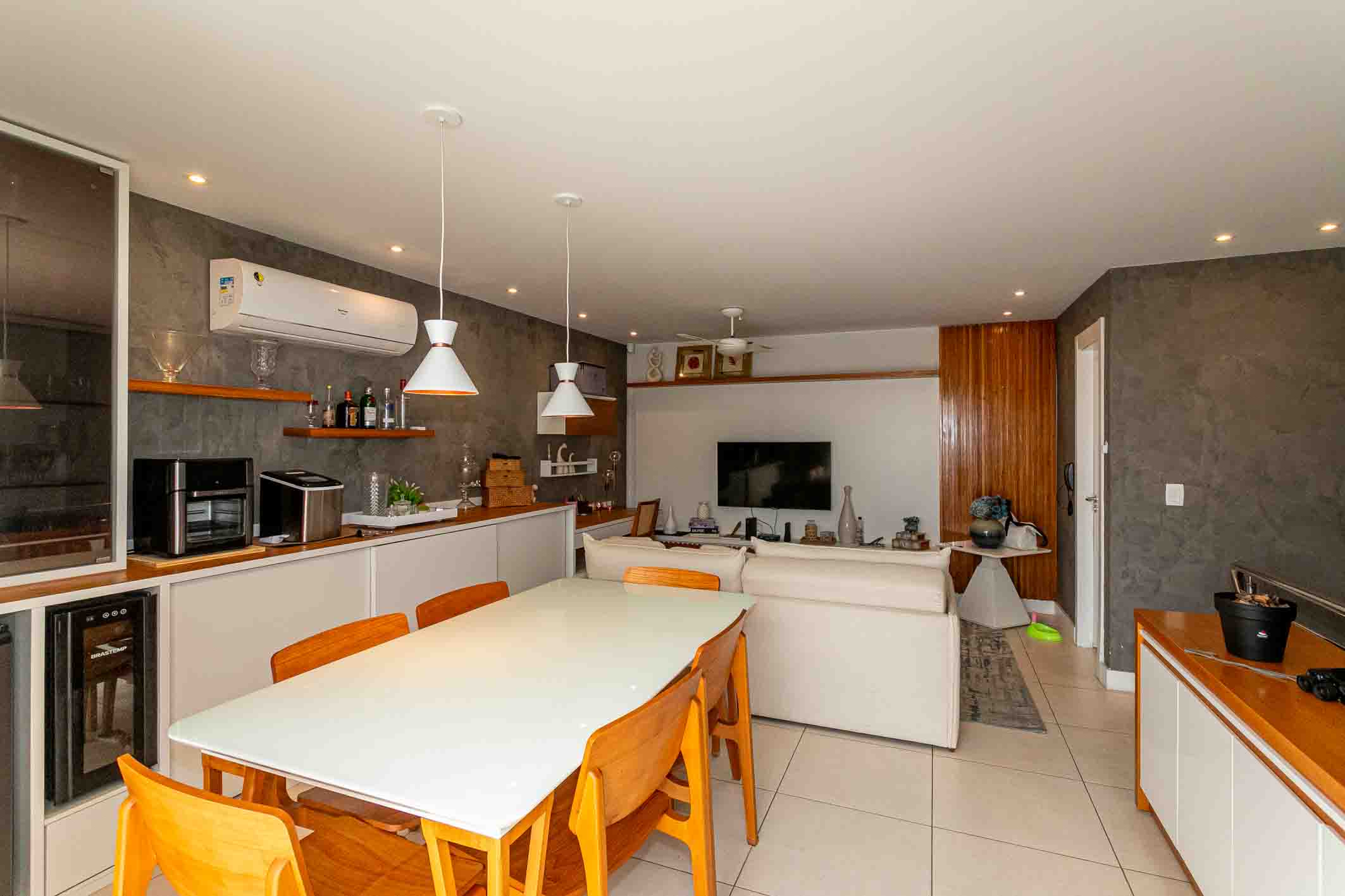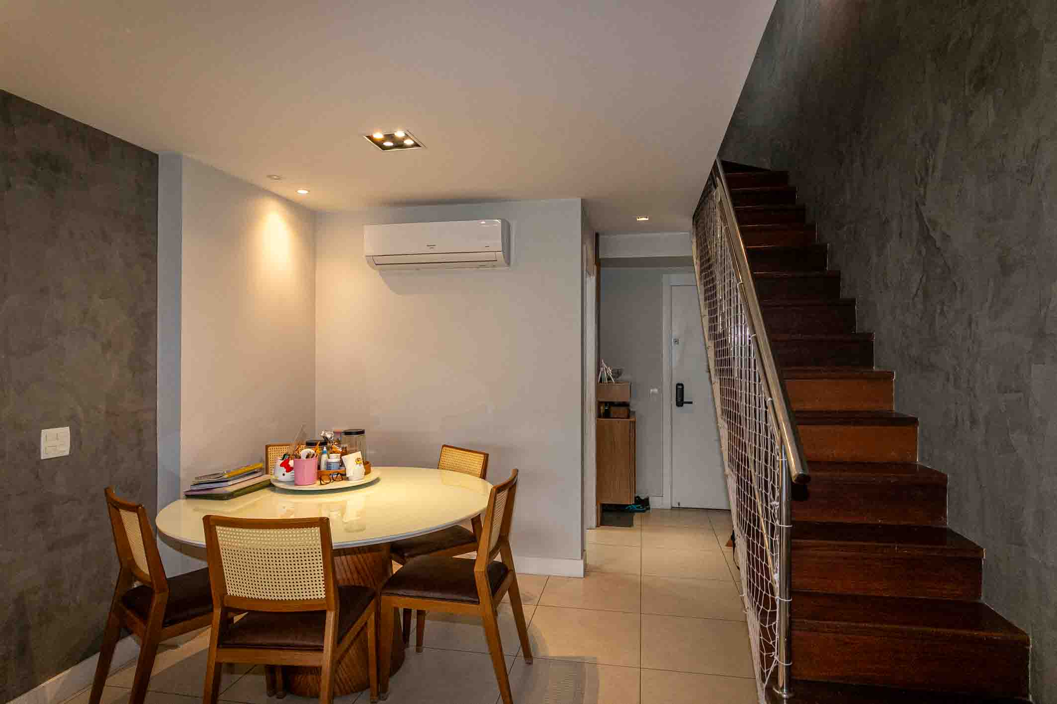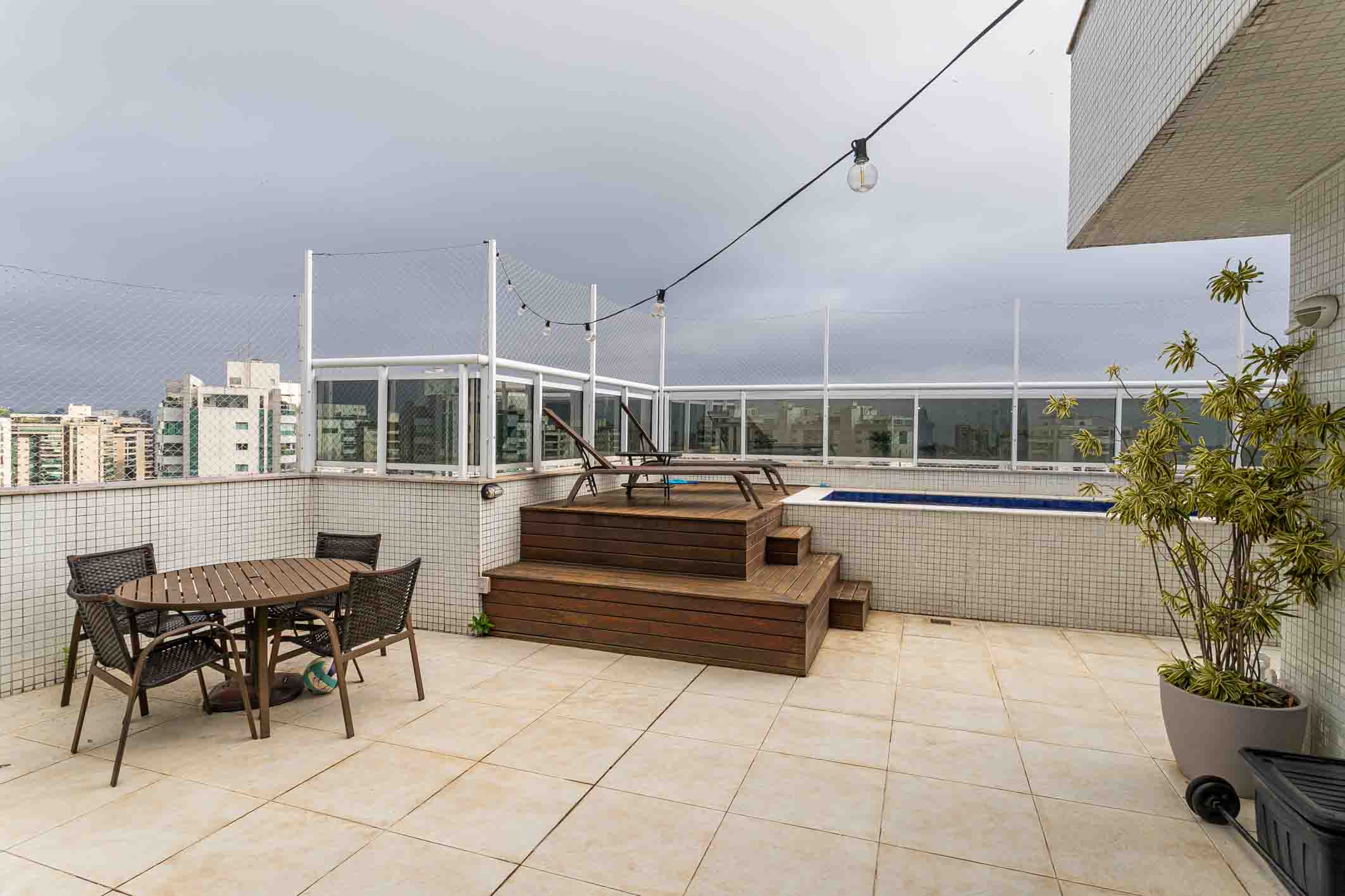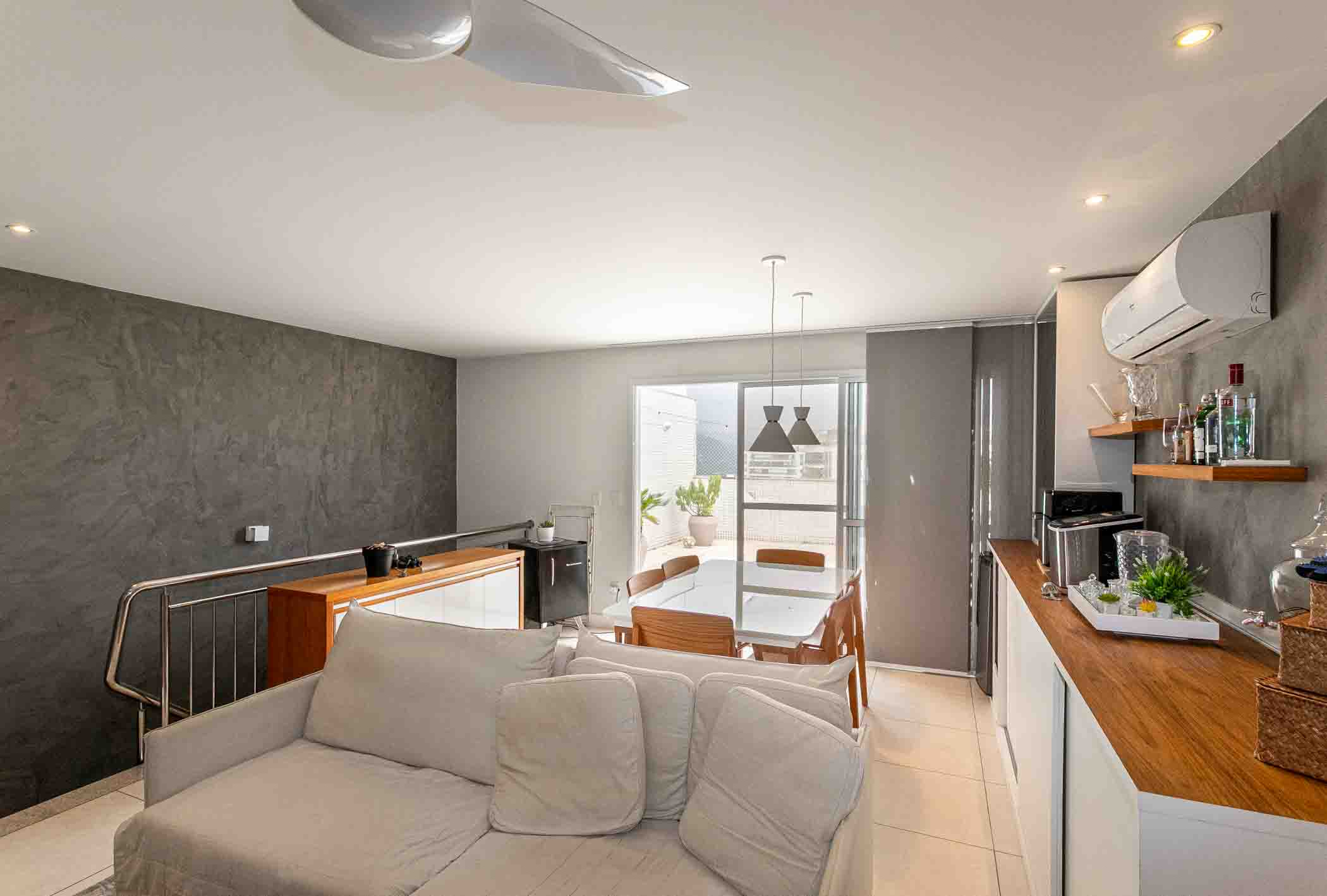 Located in Península, this duplex penthouse features a well-distributed layout with integrated living spaces. On the first level, the social area includes a climate-controlled living room and a glass-enclosed terrace, along with three bedrooms, two of which are suites, all equipped with split air conditioning and custom millwork. The upper level offers a spacious TV lounge, also climate-controlled, seamlessly integrated with a gourmet area—creating a functional setting for entertaining. The outdoor space includes a swimming pool, barbecue, and dedicated areas for relaxation and social gatherings. The condominium provides a comprehensive leisure infrastructure, with access to parks, landscaped gardens, walking trails, multi-sport courts, football fields, and communal spaces designed for gatherings, reinforcing a complete and well-balanced residential environment.
