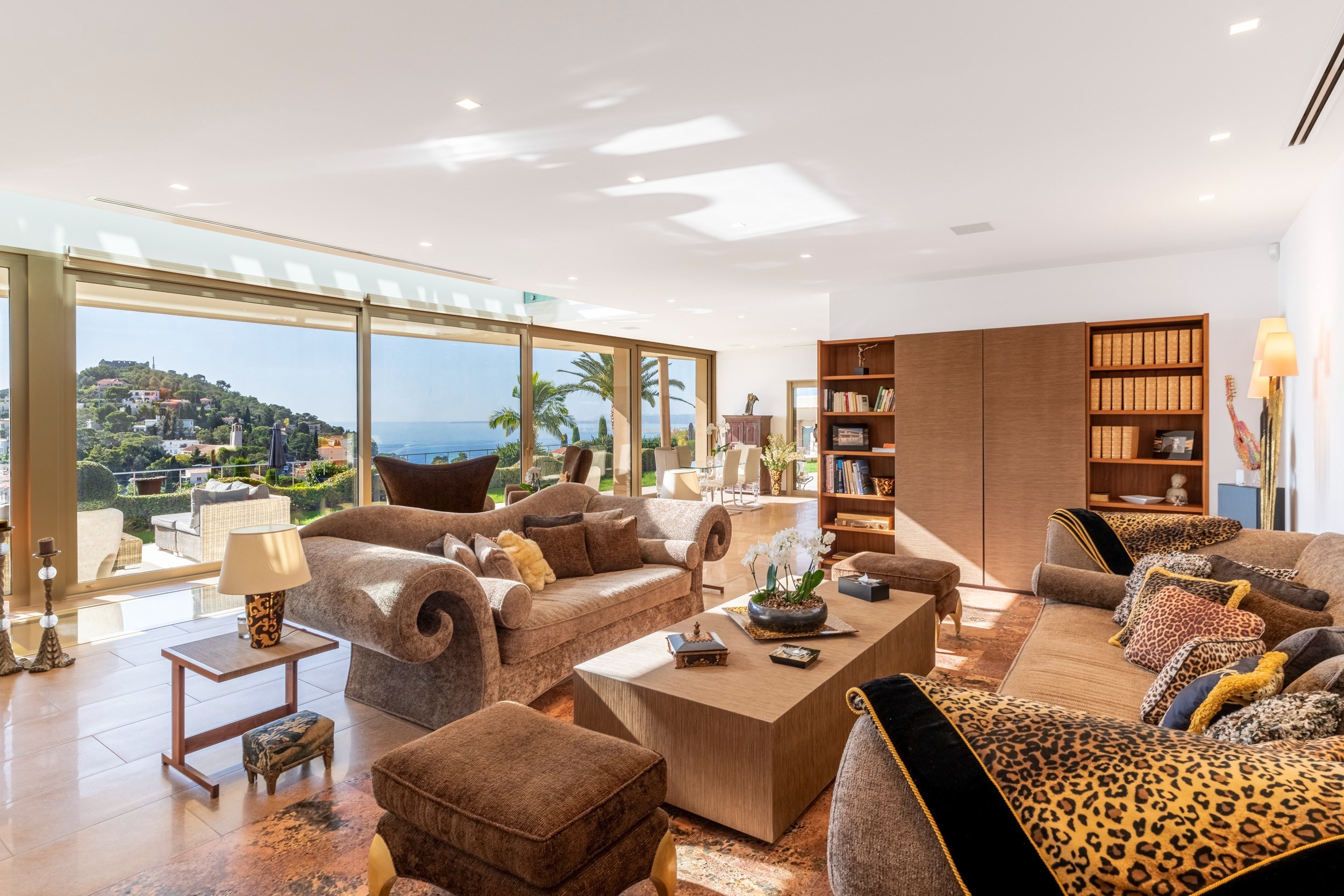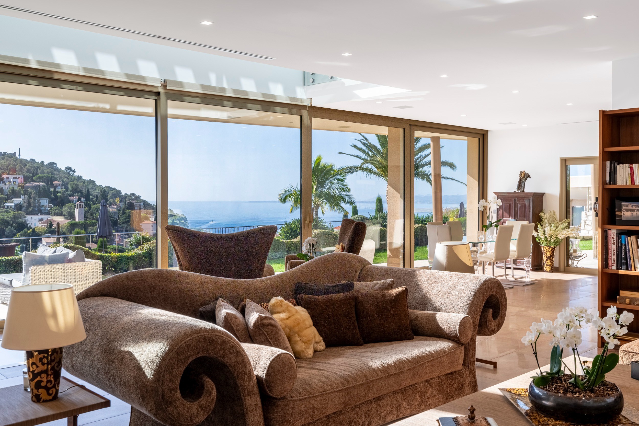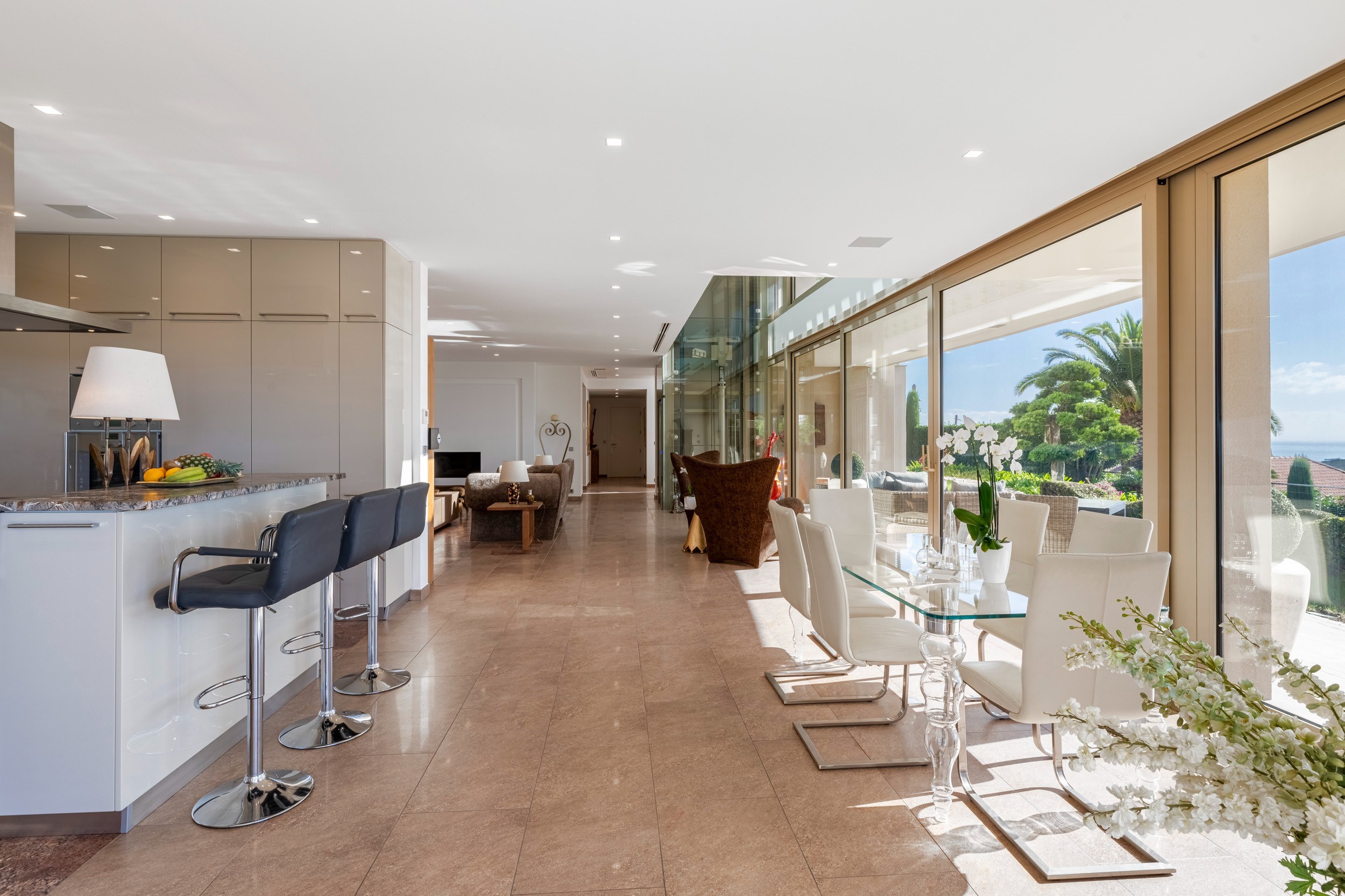 Set within beautifully landscaped grounds of around 2,200 m², the villa boasts more than 395 m² of bright and spacious interiors.
