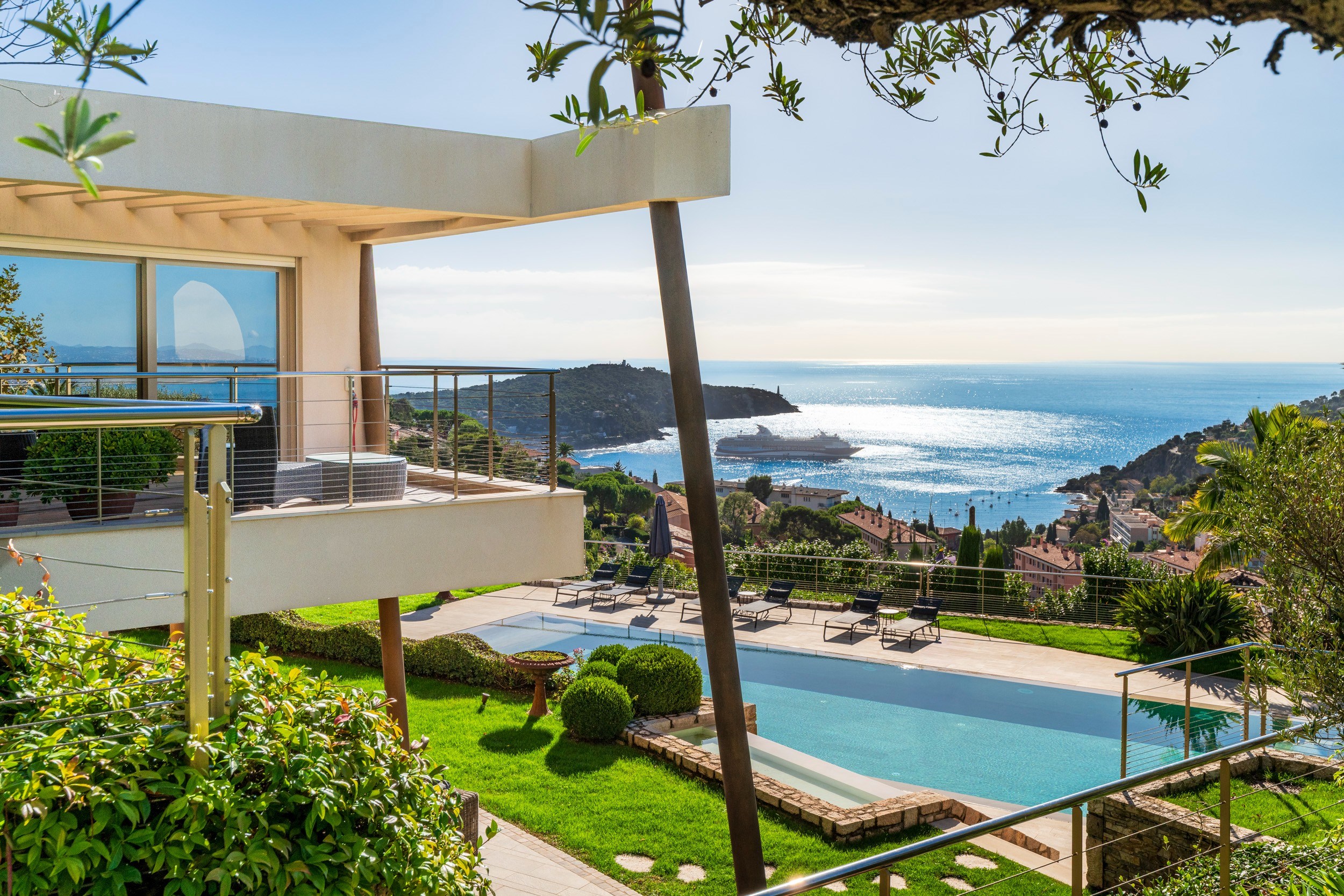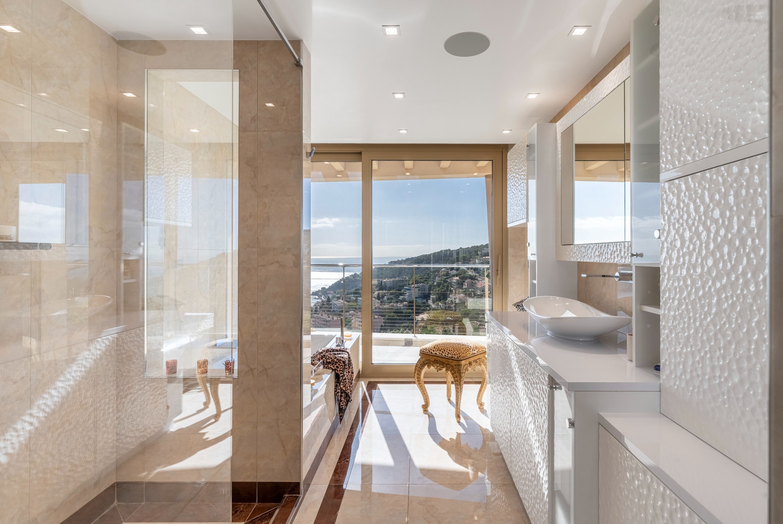 Located in the highly sought-after Vinaigrier area, this stunning contemporary property overlooks the Bay of Nice, offering a spectacular panoramic view of the sea and the city.