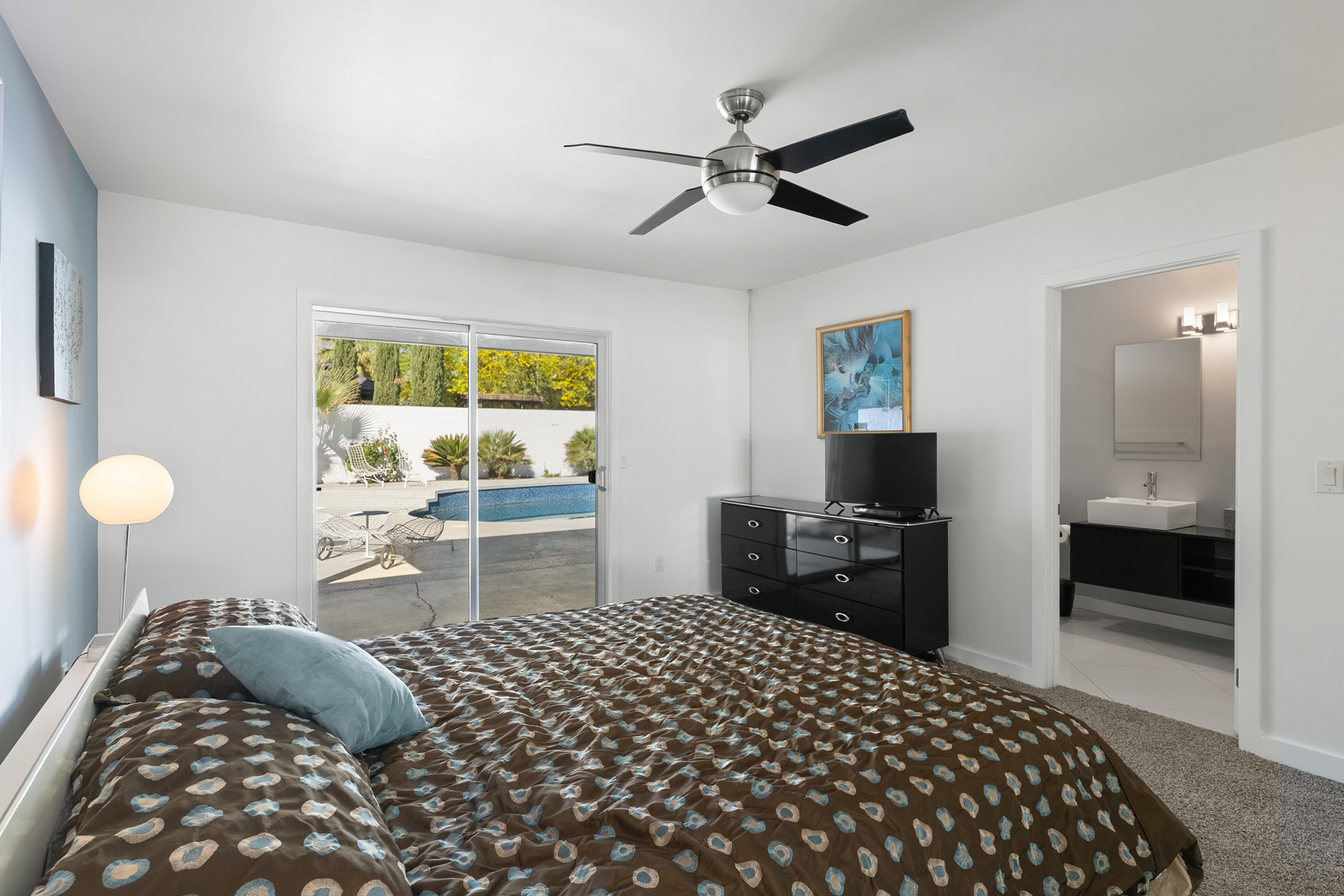 Step outside to your private backyard retreat, complete with a sparkling pool and spa, covered patio for shaded lounging, and generous yard space ideal for gatherings under the desert sky. The oversized lot also offers rare RV parking and ample additional space--an exceptional find in Palm Springs.