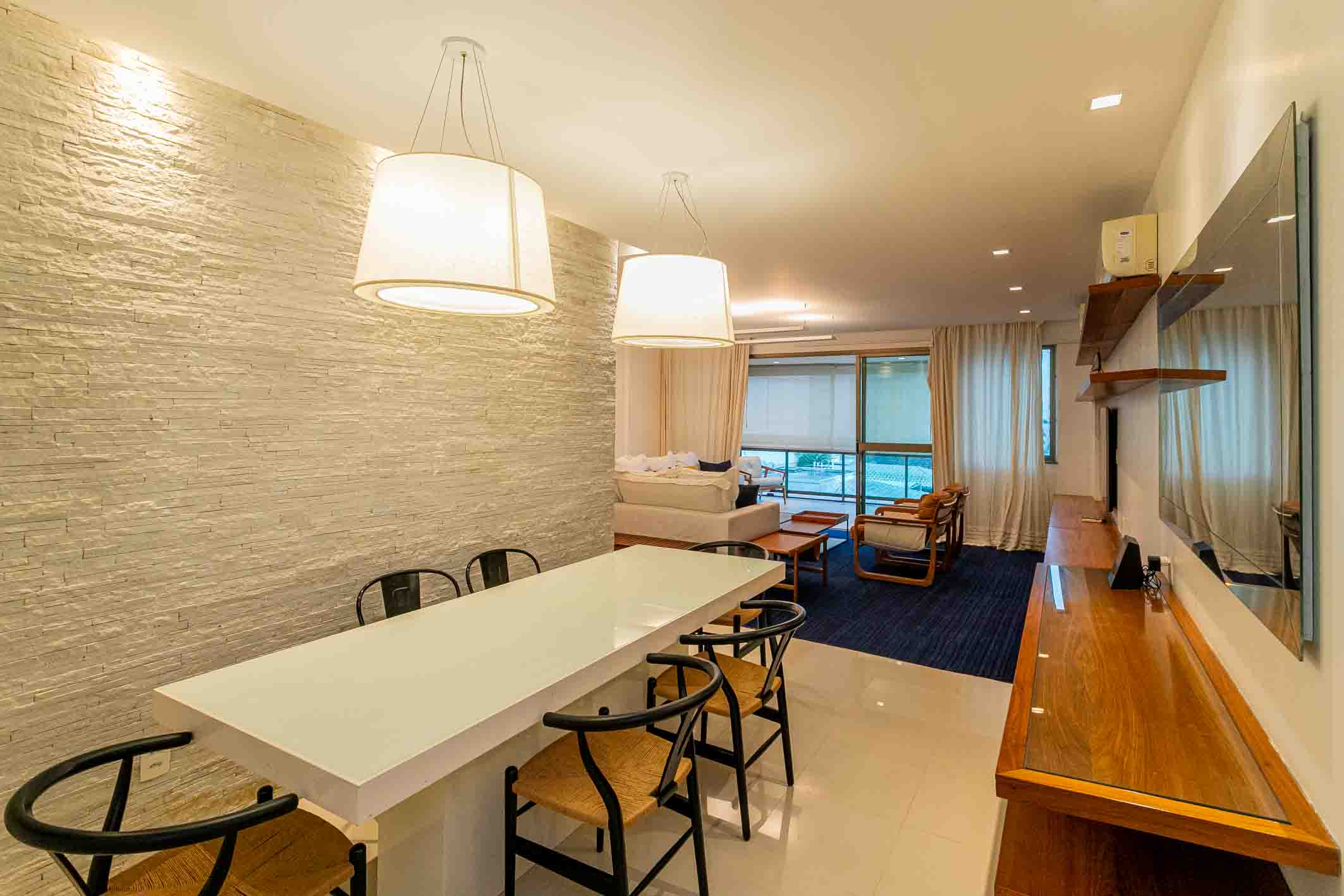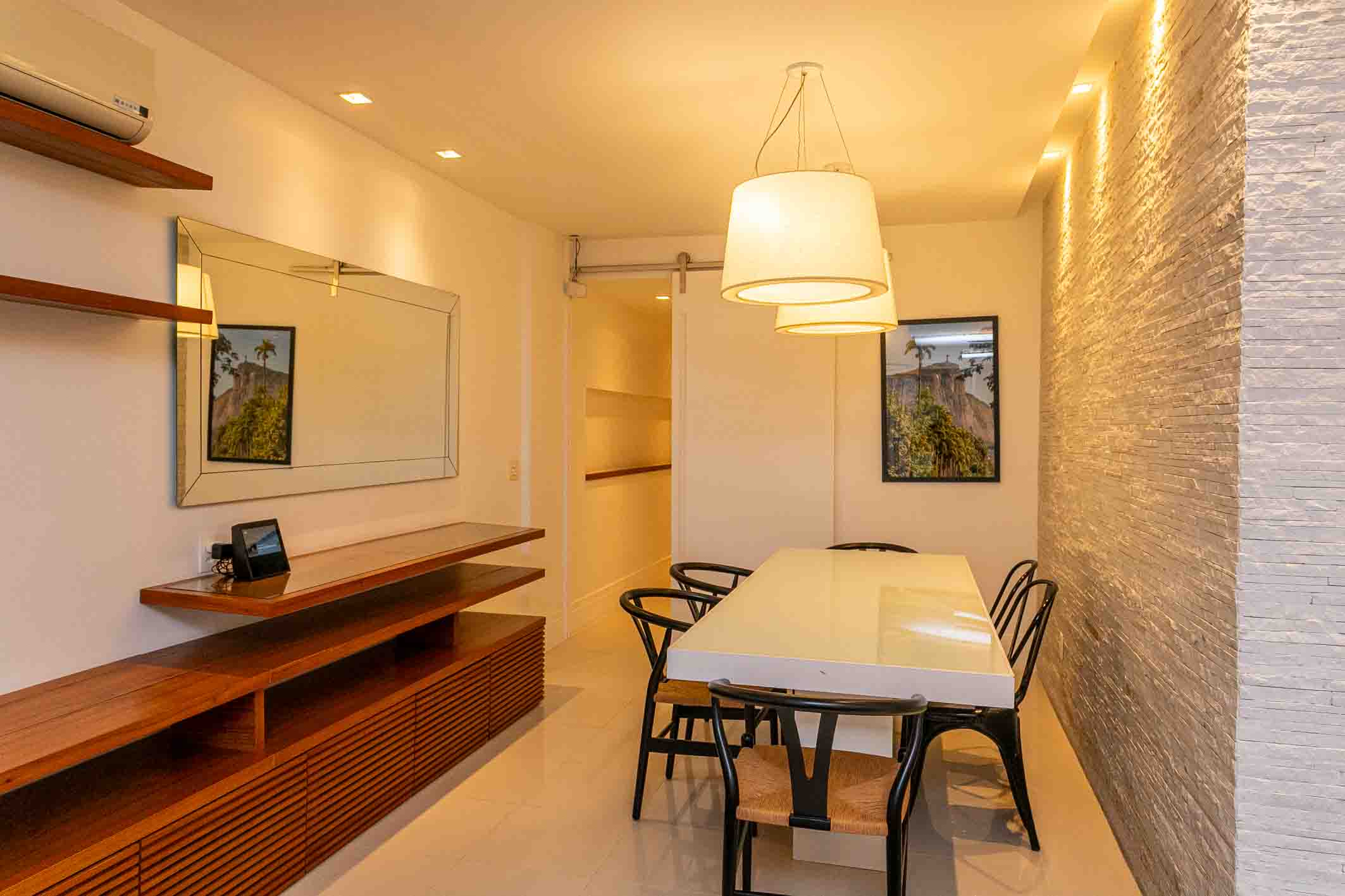 Located in the Fonte da Saudade area of Lagoa—one of the neighborhood’s most pleasant settings and close to a wide range of restaurants, retail, and services—this fully renovated and decorated apartment presents a well-resolved and contemporary living environment. The social area features an integrated and well-lit living space, with a layout that enhances circulation and the connection between lounge and dining areas, complemented by updated finishes and bespoke millwork. The kitchen follows the same design language, offering a functional layout and well-organized cabinetry. The private quarters comprise four comfortable bedrooms, thoughtfully arranged to provide both privacy and practicality in daily living. The condominium offers complete leisure and service infrastructure, along with 24-hour concierge and security systems, ensuring convenience and peace of mind for residents.