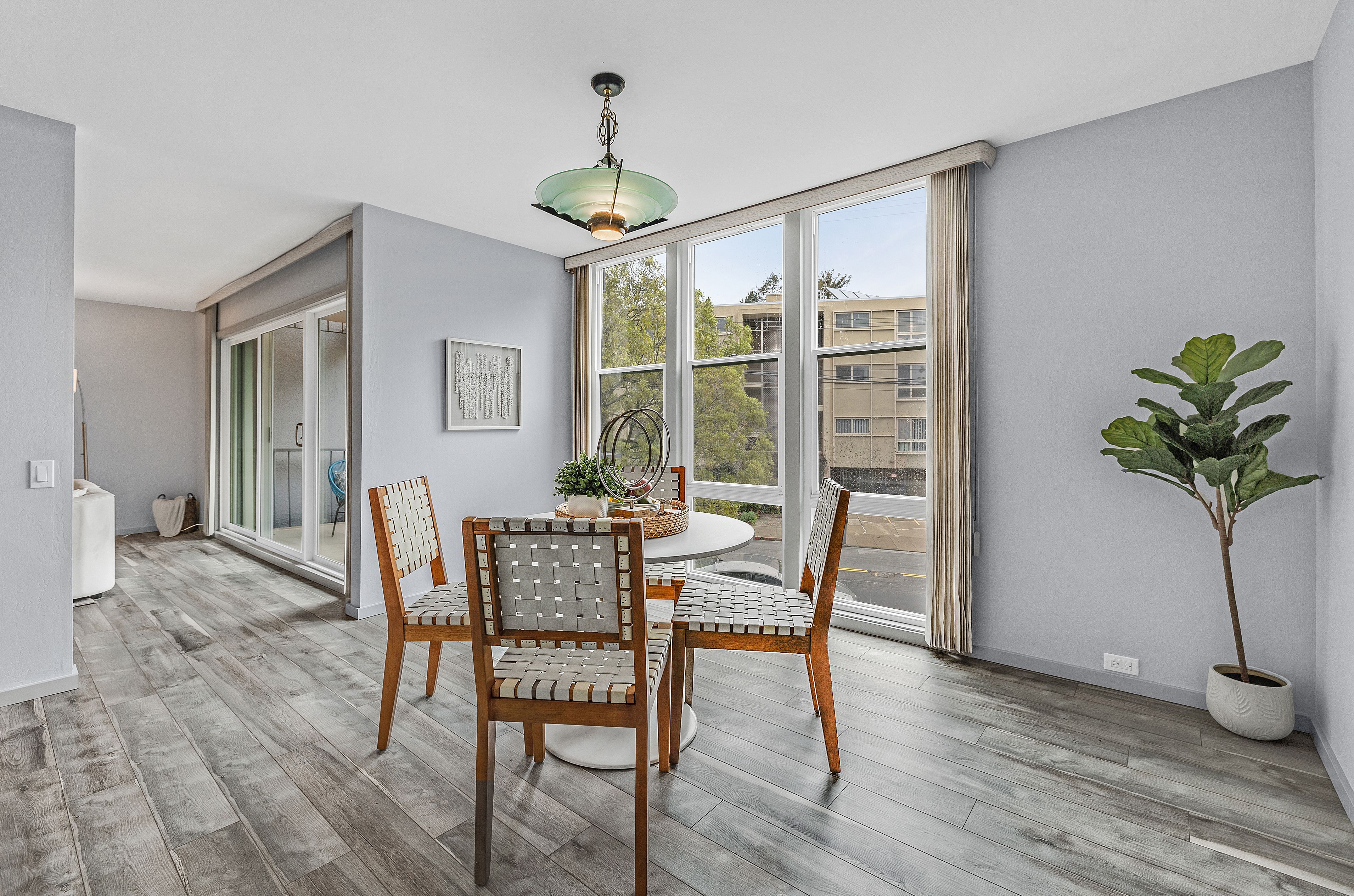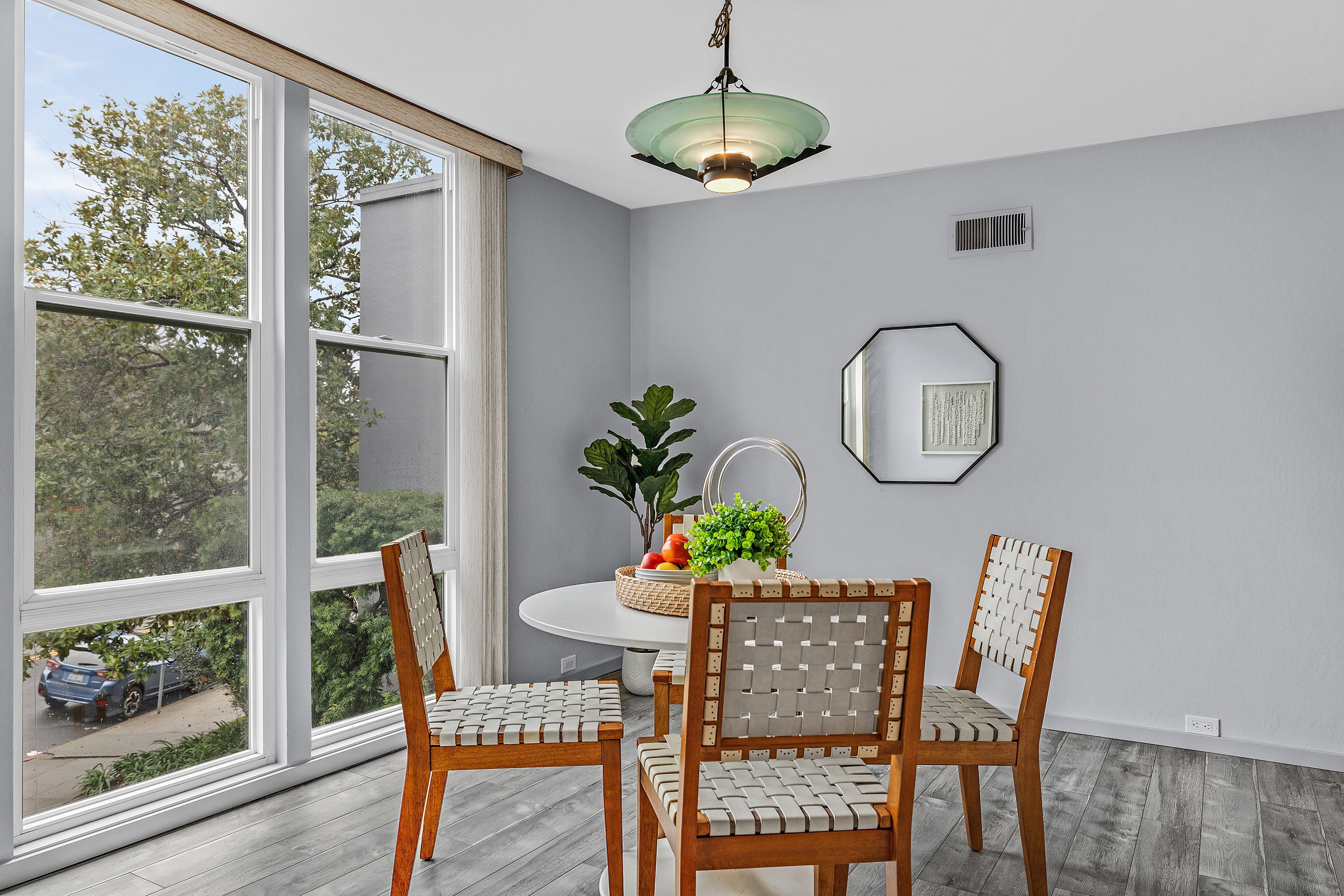 Discover the perfect blend of tranquility and urban energy in this rarely available two-bedroom, two-bathroom sanctuary. Nestled in an intimate 12-unit building, this second-story home has been meticulously renovated to offer a turnkey lifestyle. From the floor-to-ceiling dual-paned windows that bathe the space in natural light to the seamless flow between the galley kitchen and generous dining area, every detail invites you to relax. Step out onto your private balcony for morning coffee. With a 91 Walk Score, your weekends are set: stroll to Piedmont Avenue boutiques or the Grand Lake farmers market. Complete with deeded parking, a private EV charger, and expansive storage for the avid cyclist, this is East Bay living at its finest.* Property no longer staged - virtually staged photos are from when the property was previously listed.