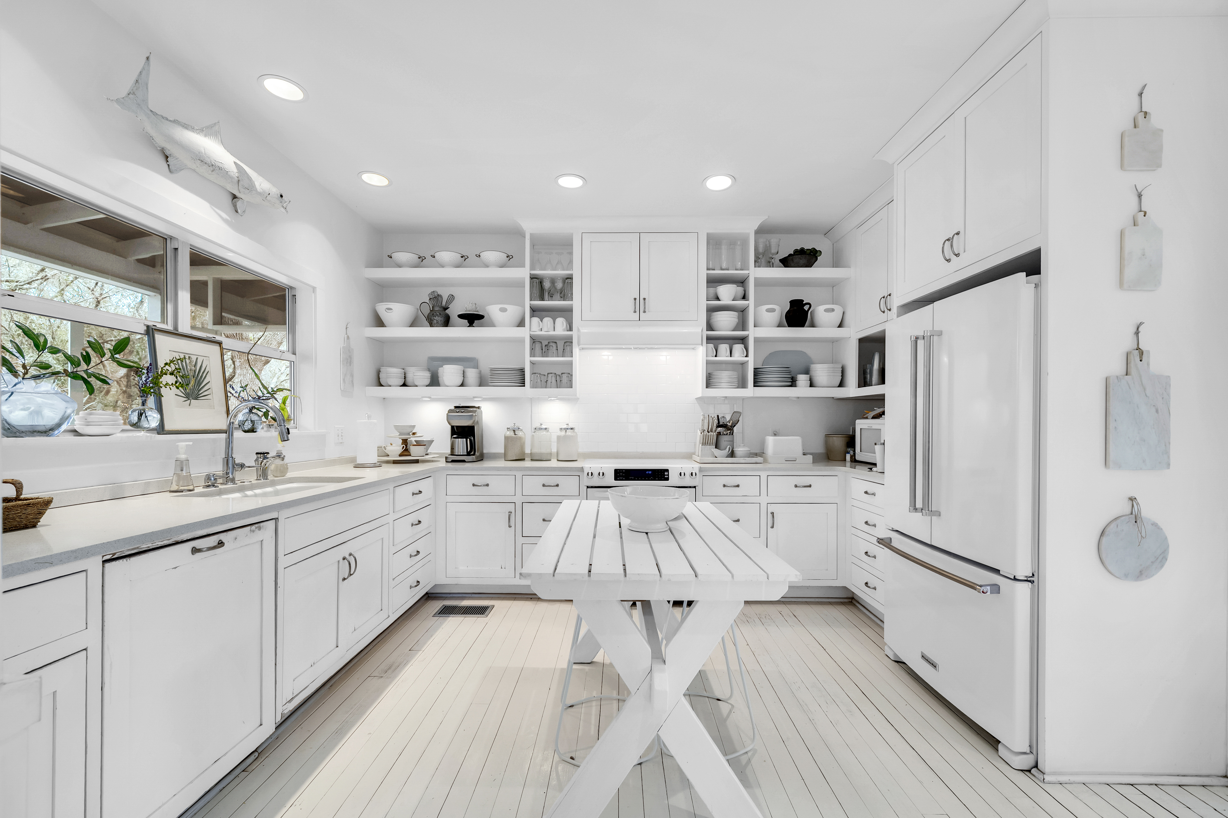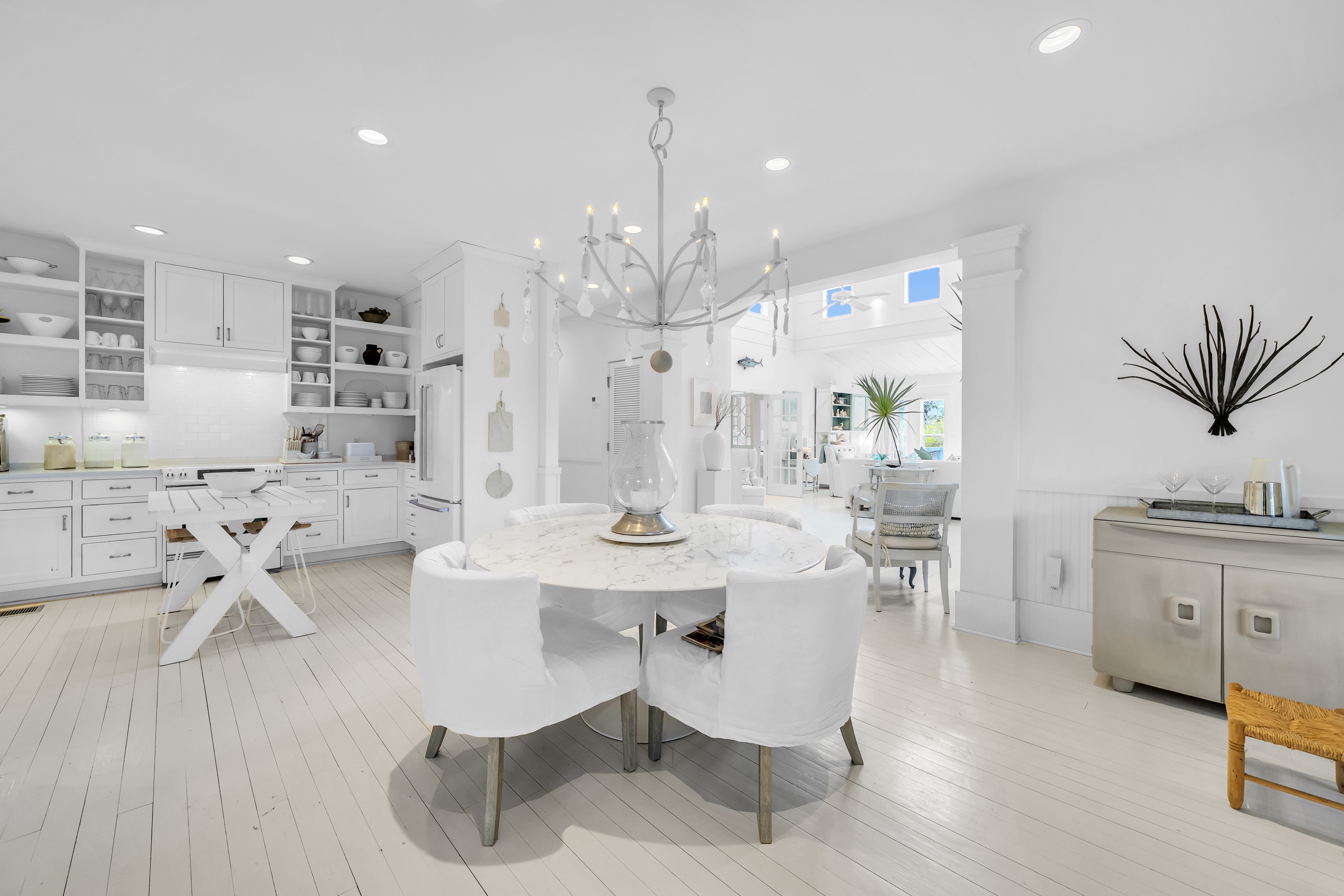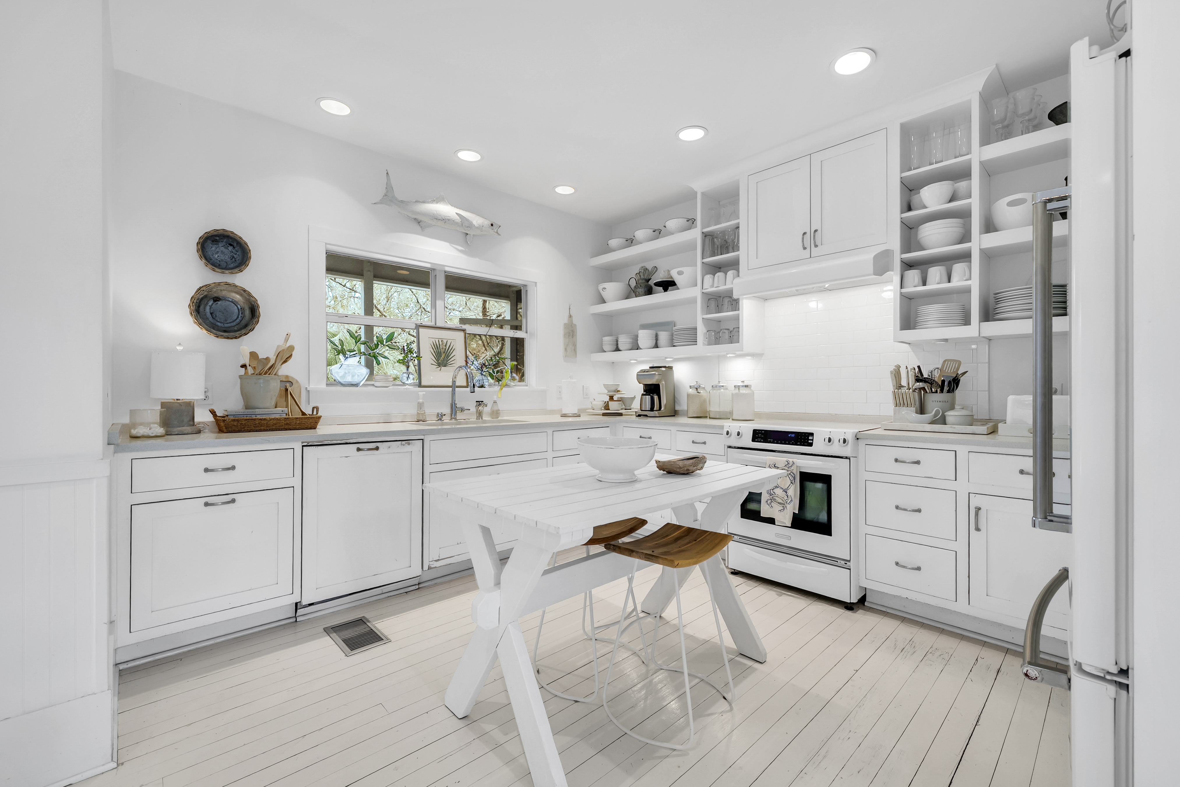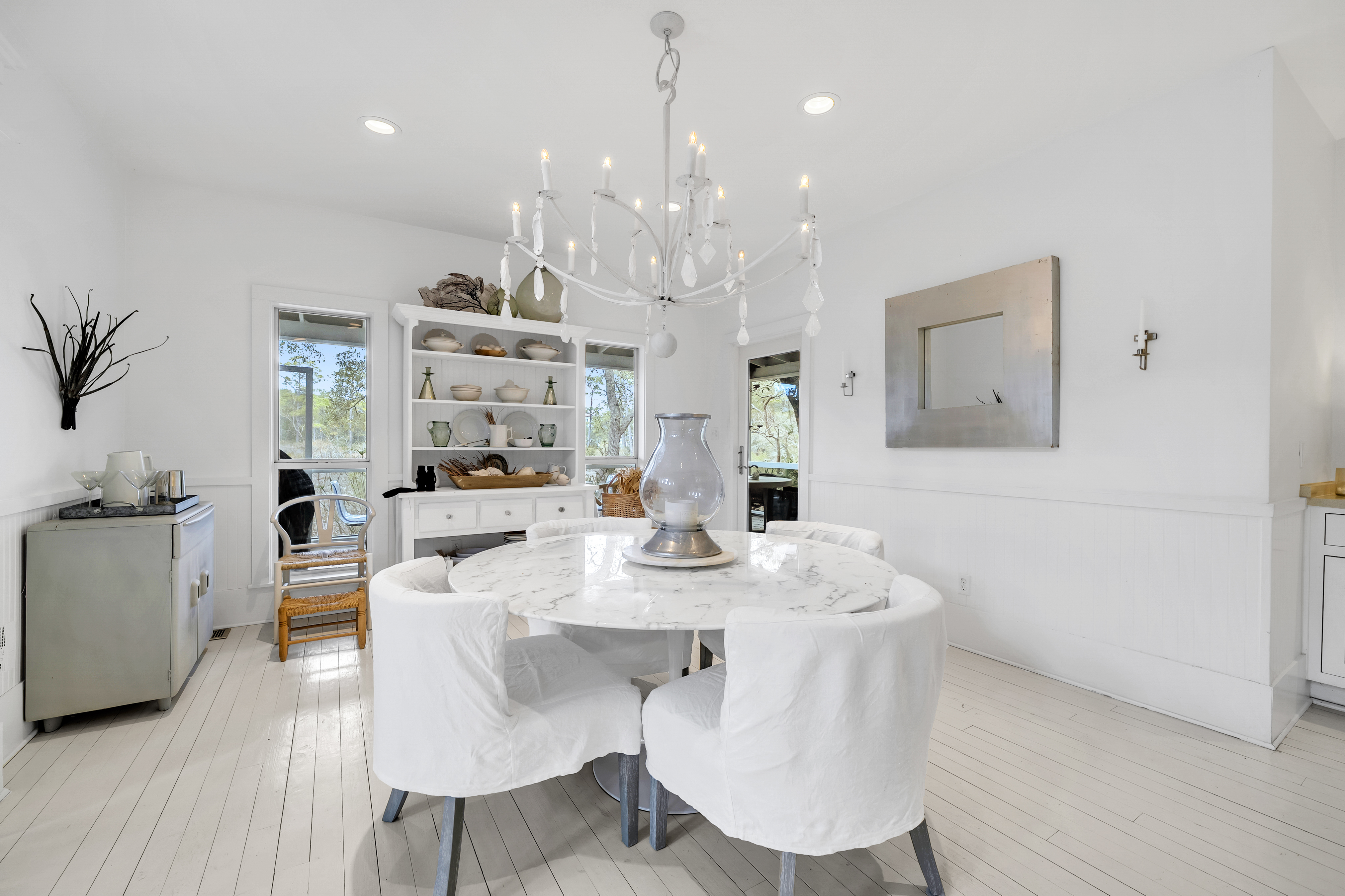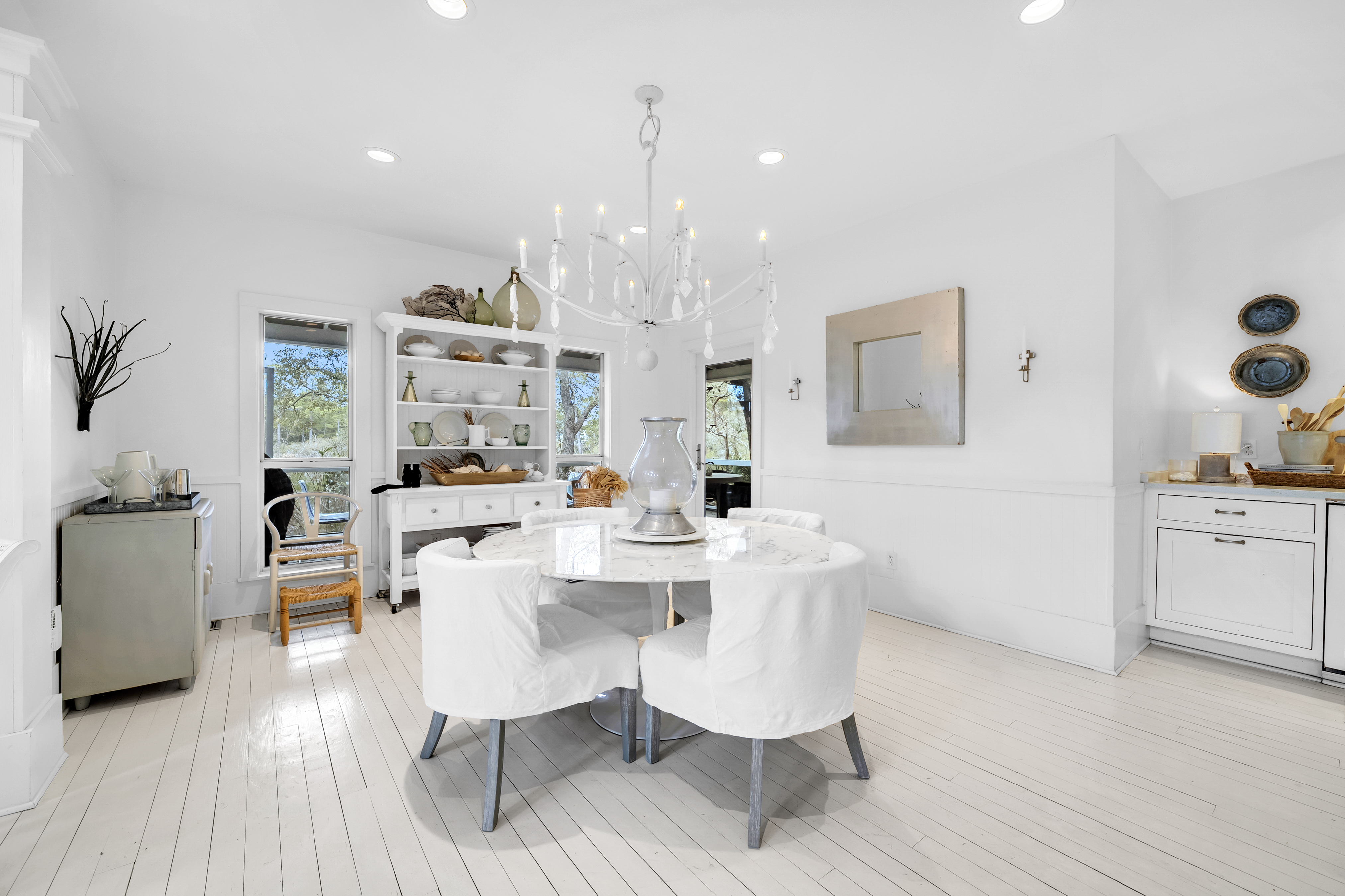 Tucked away from the noise of the world, yet uniquely positioned in Blue Mountain and only three blocks to the Gulf of Mexico, this extraordinary six-acre sanctuary is a living, breathing landscape where time moves differently and the ordinary weight of daily life simply falls away. At its heart lies a three-acre spring-fed lake, its water so clear and still on quiet mornings that the ancient live oaks surrounding it see their own reflection. And those oaks — they are the true soul of this place. Centuries old, draped in cascading Spanish moss, their cathedral arms stretch wide enough to shelter generations. Standing beneath them is a charming 2200 sf coastal cottage that has been showcased in various magazines with views of the lake from every room. The property also boasts an artist's studio, and a shed.