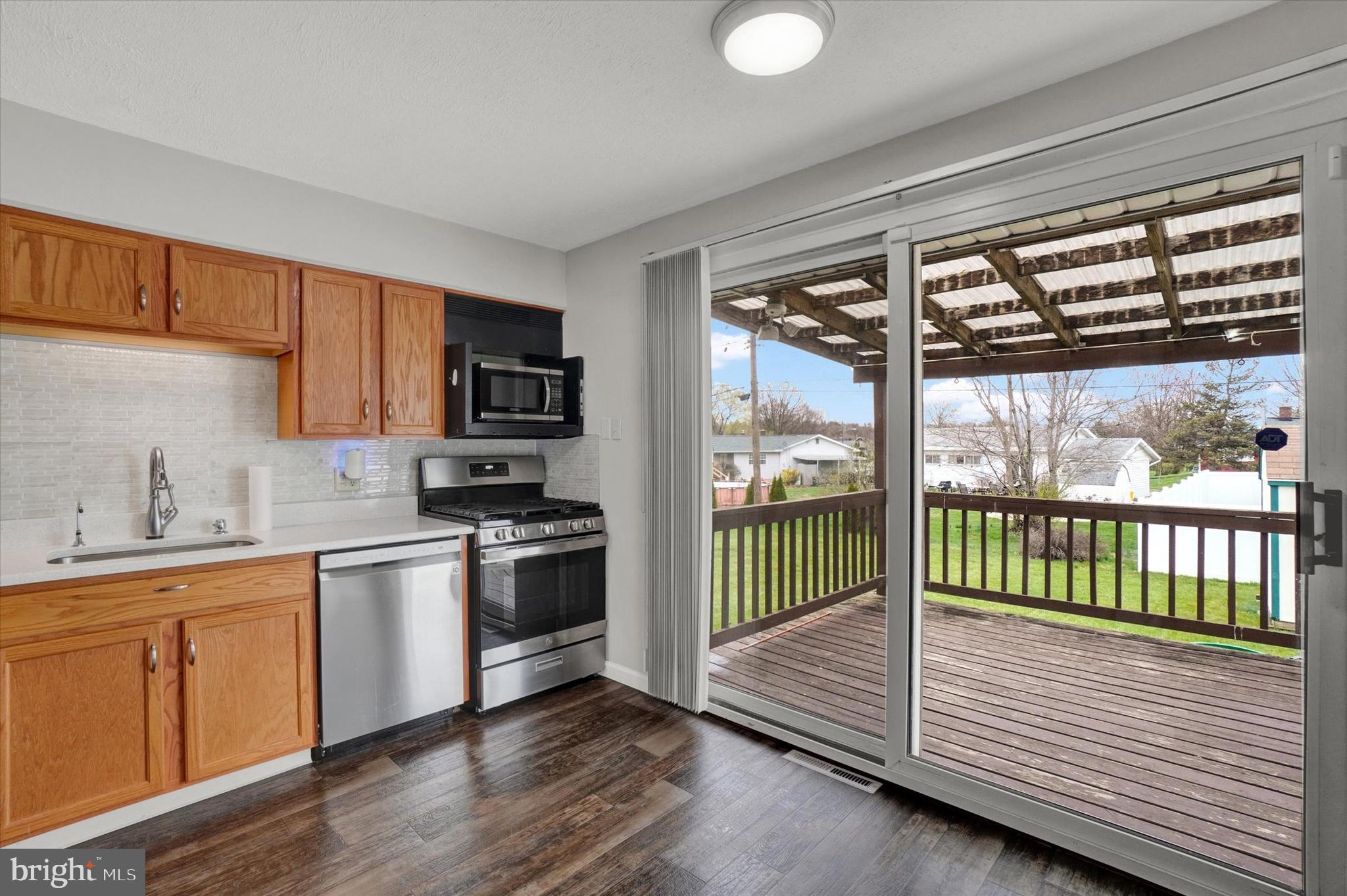 Updated Kitchen and Bathroom are features of the 1 Story living, Sliding Glass Door to covered deck and patio, upgrades include: wall blown insulation, ADT Security System sensor, Replacement Windows, Radon pipe, Tankless Hot Water Heater, Generex Generator, and solar panel, the small 3rd Bedroom is plumbed for a Laundry Room, the Lower Level Family Room with bar and an aquarium shelf, the unfinished side has a work bench and Half Bath