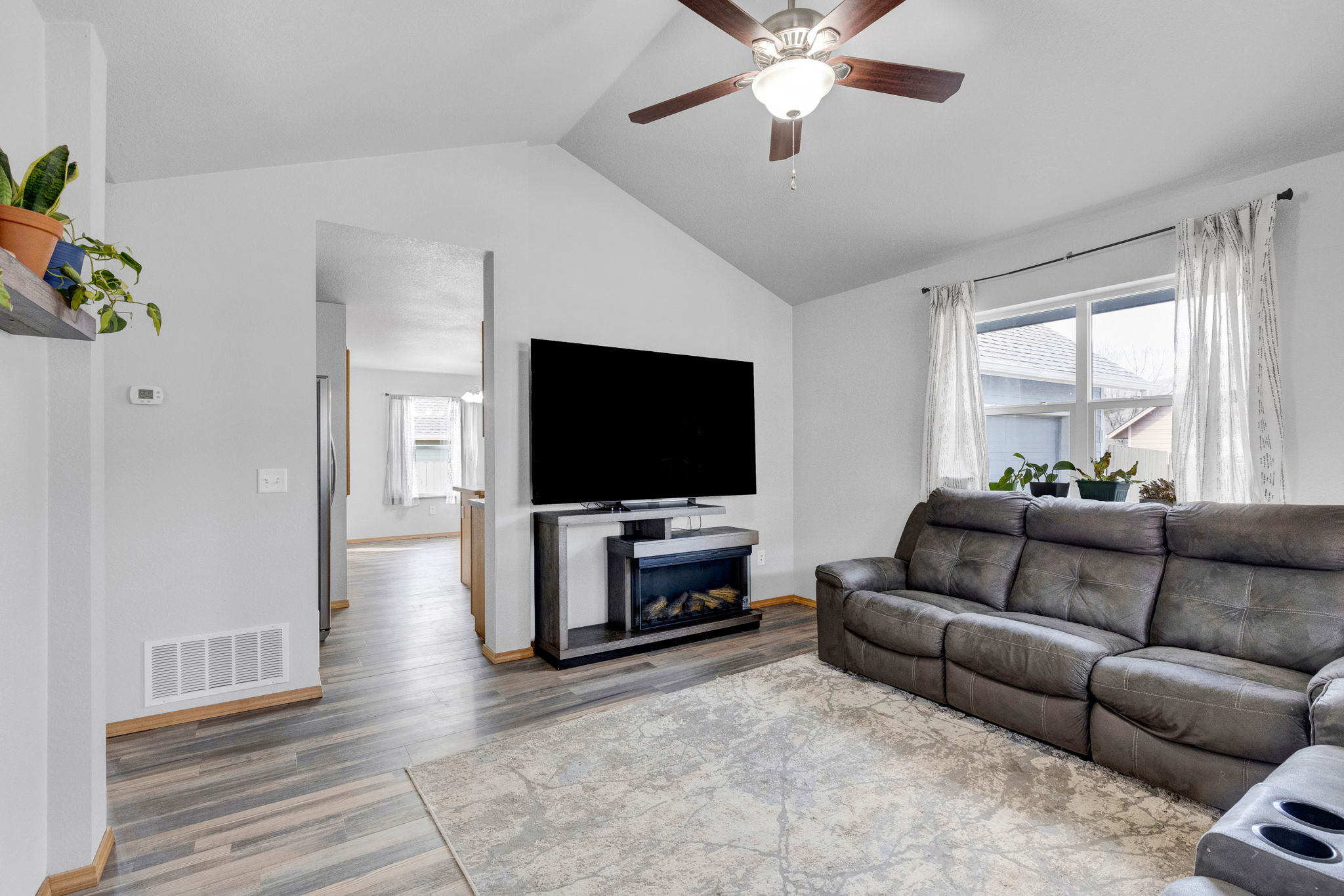 Situated on a quiet cul-de-sac in a desirable neighborhood, this well-cared-for 4-bedroom, 2-bathroom home offers a comfortable and functional layout designed for everyday living. The living room features vaulted ceilings that create a bright, open atmosphere, while the kitchen includes bar seating, a new dishwasher, and flows seamlessly into the dining area. The main level is complete with two bedrooms, a full bathroom, and direct access to the garage.