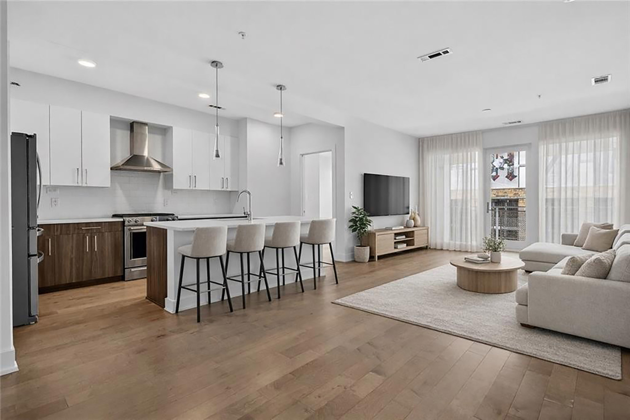 Elevated, effortless living awaits at J5 in the heart of Midtown Atlanta. Perfectly positioned at Juniper and 5th, this sophisticated two bedroom, two bath plus Storage Unit residence offers a refined urban lifestyle with a storage unit, two secure parking spaces and premier amenities just outside your door. From the moment you arrive, J5 sets the tone with attentive service and modern design. Inside the home, natural light fills the open-concept living and dining space, creating an inviting backdrop for both intimate evenings and lively gatherings. Wide-plank hardwood flooring flows throughout, complementing a chef-inspired kitchen equipped with top-of-the-line KitchenAid appliances, gas cooking, and sleek quartz countertops. The thoughtfully designed split-bedroom layout provides privacy and versatility, with two spacious suites that feel like private retreats. Each bedroom features a generous walk-in closet and a spa-inspired bath complete with dual vanities, backlit mirrors, contrasting full-overlay flat panel cabinetry, and soft-close hardware, blending comfort with contemporary style. Beyond your residence, J5 delivers a true resort-inspired experience. Relax beside the saltwater pool, enjoy the garden terrace, recharge in the state-of-the-art fitness center, or unwind in the open-air rooftop lounge with skyline views. A 24-hour concierge and pet spa add convenience and ease to everyday living. Surrounded by Midtown’s premier dining, green space, cultural destinations, and vibrant energy, this home offers the perfect balance of luxury, location, and lifestyle, an exceptional opportunity to enjoy city living at its finest.