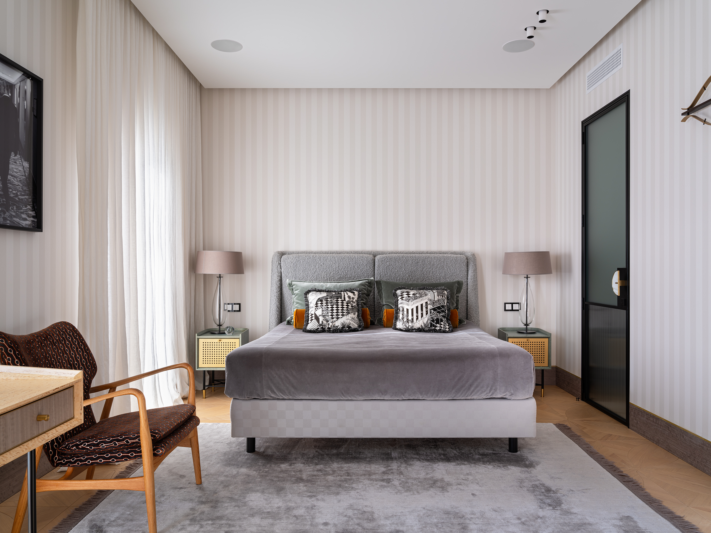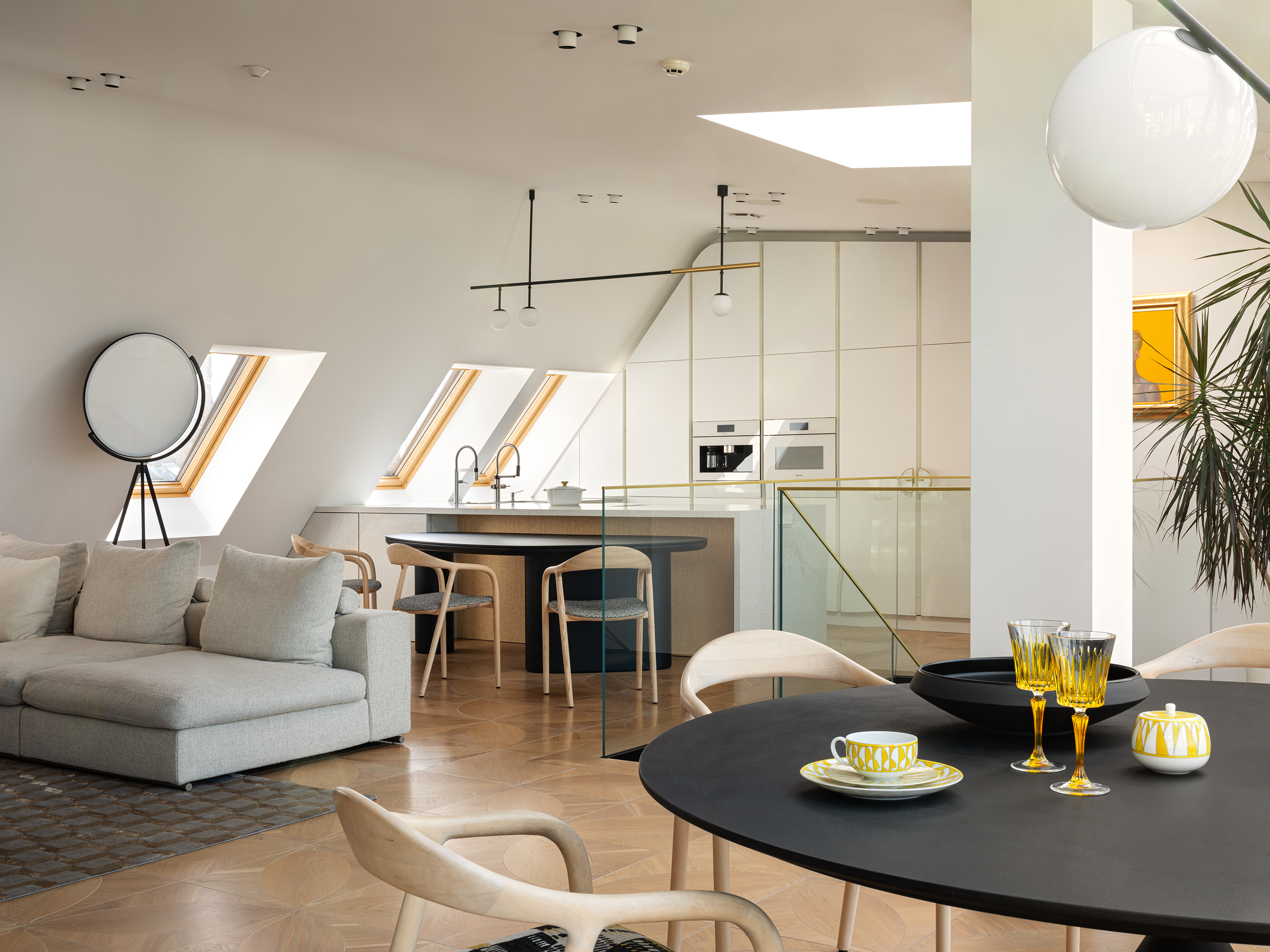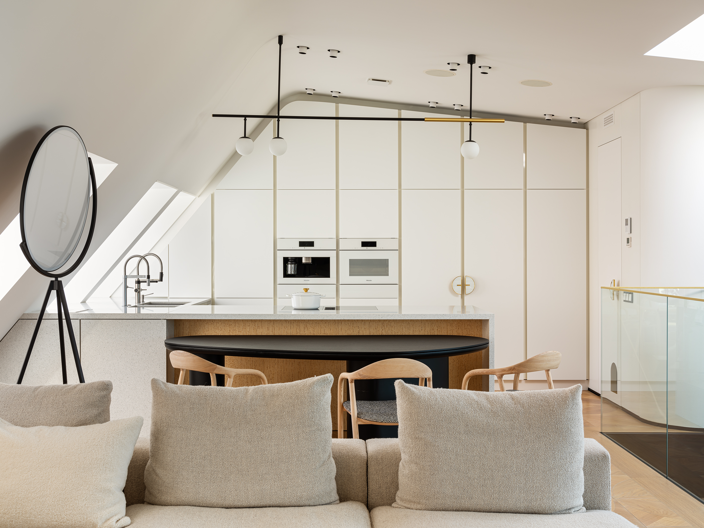 A two-level penthouse apartment in the TAL Residences project offers a spacious and functional living environment in Riga’s Quiet Centre. The total area of the apartment is 325.9 m², of which 275.6 m² is interior space, complemented by multiple outdoor areas designed for comfortable city living. The apartment is arranged across two levels. The upper floor features a spacious living area with a kitchen and panoramic windows overlooking Riga’s rooftops, creating a bright and open atmosphere suitable for everyday living and entertaining. The lower floor includes four bedrooms, providing ample space for a family or for separating work and leisure areas. This level also offers two terraces and two balconies, extending the living space and allowing for private outdoor enjoyment in the city centre. A video surveillance system is installed in the apartment for additional security. The interior features high-quality furniture and finishing materials, including Karelian birch, eucalyptus, Fenix surfaces, and bird’s-eye figured wood. The apartment is furnished with lighting and furniture from recognized design brands — Hästens, Maxalto, Flexform, Meridiani, B&B Italia, Desalto, Bonaldo, Vitra, CTO Lighting, and Flos — as well as textile elements by Pierre Frey and CC-Tapis. The building provides security services, and the Michelin Guide-listed restaurant “Snatch” is located on the ground floor. The price includes two parking spaces, adding convenience in the city centre. This property combines a well-thought-out layout, high-quality equipment, and a prestigious location, offering a comfortable and secure living environment in a major city.