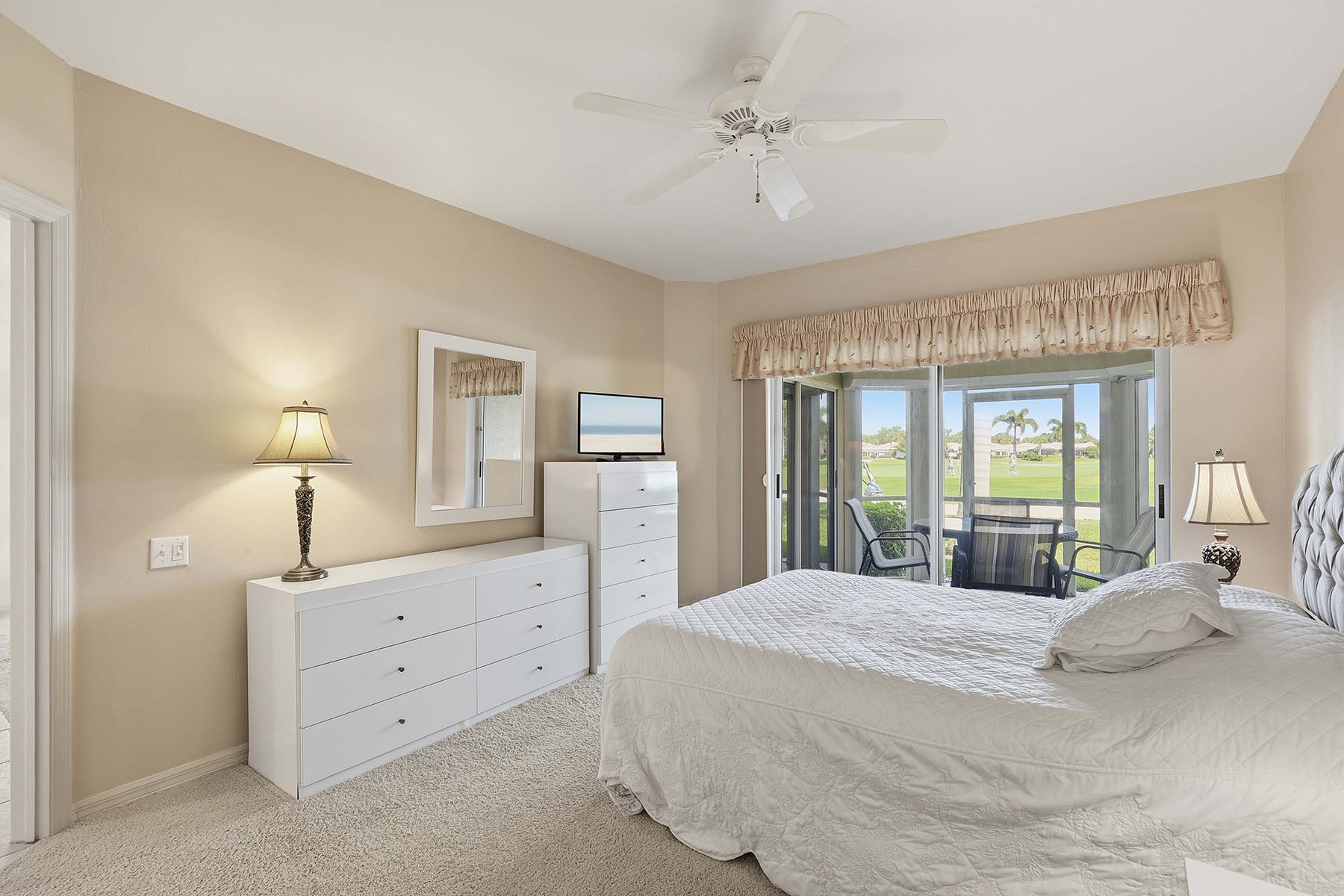 Immediate full golf membership included with no waitlist. Located in Worthington Country Club, this first-floor end residence offers three bedrooms and two baths, along with a screened lanai with eastern exposure. Recent updates include a new HVAC system (2025) and water heater (2025), providing added efficiency and peace of mind. Hurricane shutters are installed for storm protection. Additional features include an exterior storage closet, a dedicated carport and ample guest parking. Residents of Amberley Court enjoy access to a private pool just steps from the residence. Worthington Country Club offers an active lifestyle with access to an 18-hole championship golf course, five Har-Tru tennis courts, a well-appointed clubhouse offering elegant dining, a state-of-the-art fitness center, a resort-style pool and a poolside cabana. All this is conveniently near Bonita Beach, Southwest Florida International Airport, and premier shopping and dining venues. Next door, an exciting new development, Bonita Midtown, is set to open in 2026 with new dining and retail. Club enhancements are in progress, including five new tennis courts, four pickleball courts, and a new indoor-outdoor cabana featuring an electric pergola, with no special assessment to property owners.