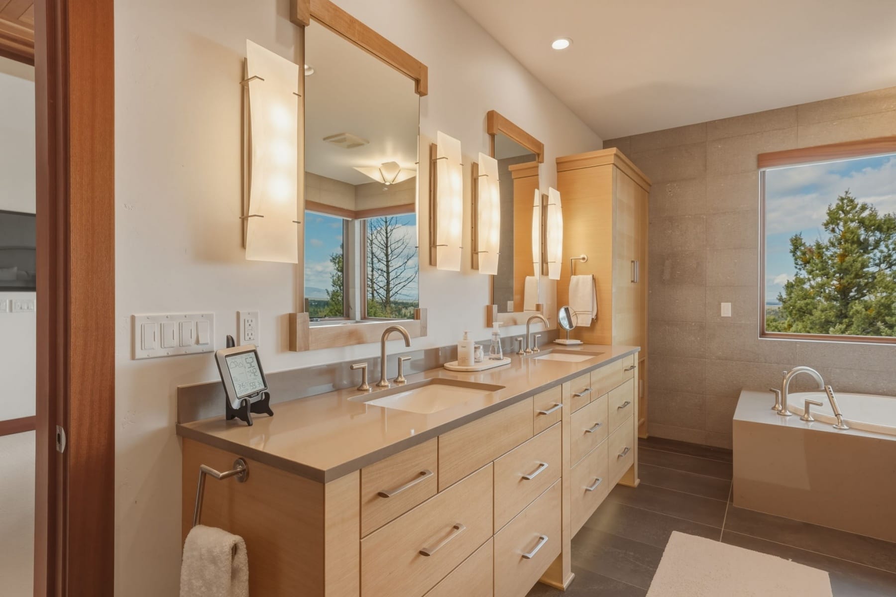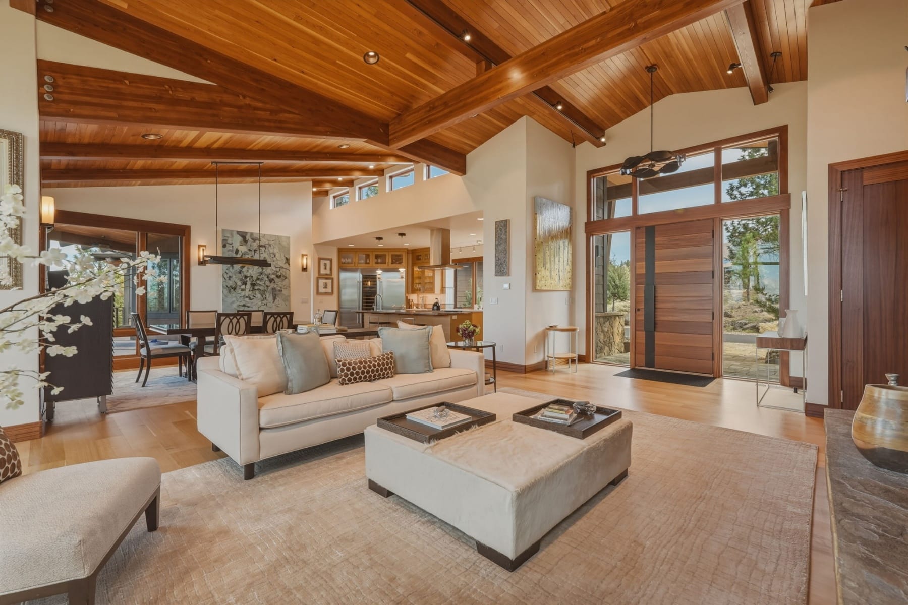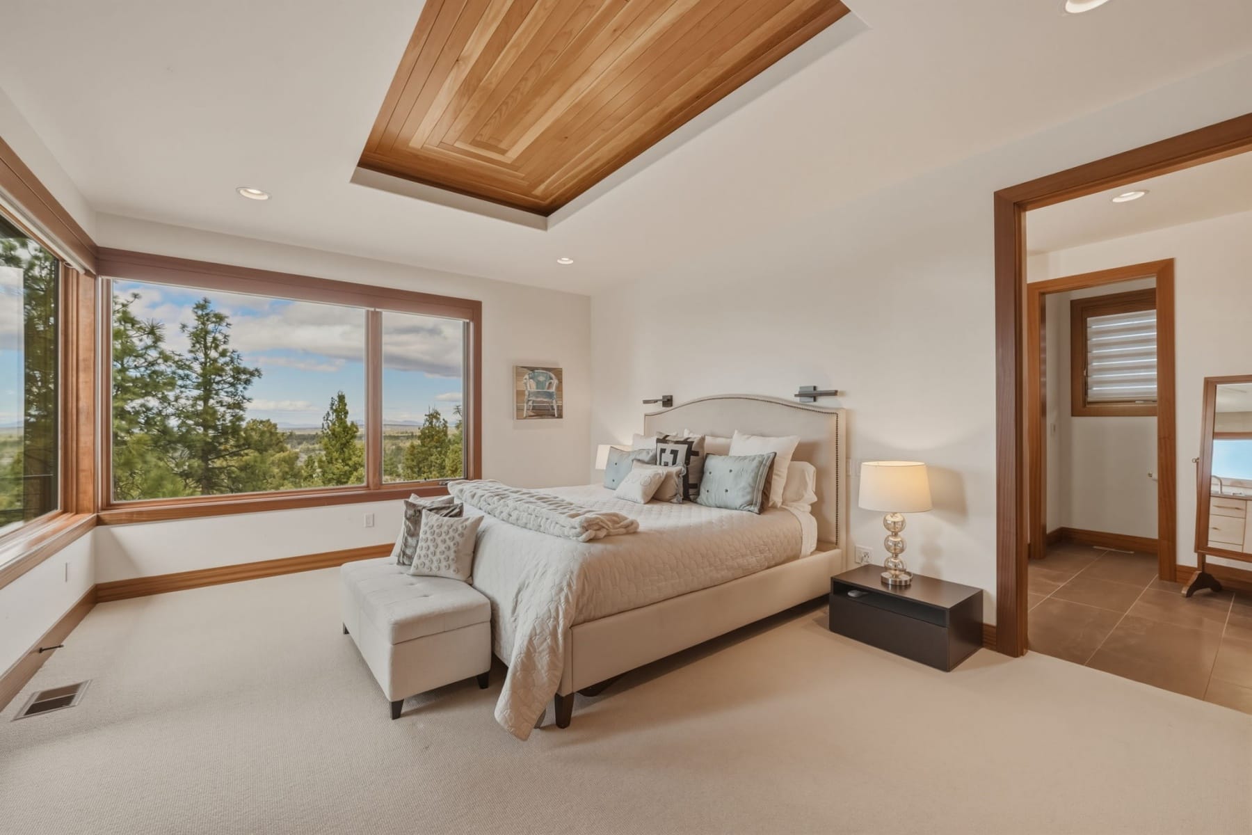 Begin and end each day with an unobstructed view of a snow capped Mt. Jefferson and the stillness of nature around you. This single-level residence, set on a peaceful corner acre in gated North Rim, was built with a more measured scale in mind. Exceptionally constructed by Norman Building & Design, it offers a gourmet kitchen, lofted wood ceilings and high-end finishes throughout. Expansive windows invite in abundant natural light and Cascade views, while heated outdoor space offers both covered and open-air options for relaxed mornings and unhurried evenings. The design balances clean lines with warmth, allowing the home to lean modern or transitional depending on your aesthetic. A well-separated primary suite enhances privacy, with welcoming guest spaces tucked away on the other end of the home. North Rim residents enjoy pickleball, tennis, park space, a clubhouse, and direct access to the Deschutes River Trail. This home is perfect for those ready to simplify without compromise.