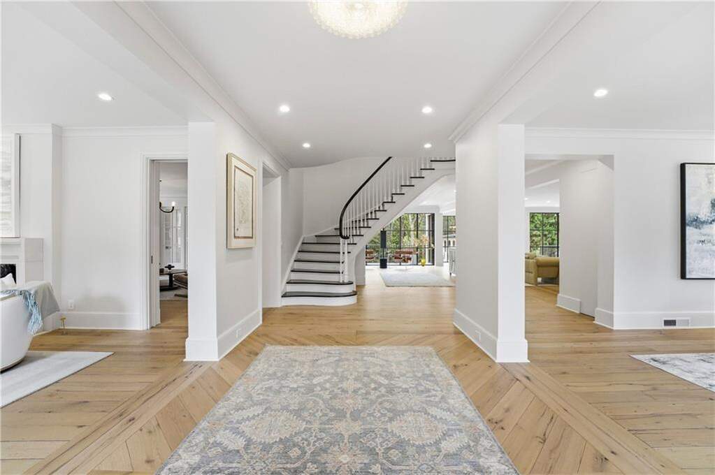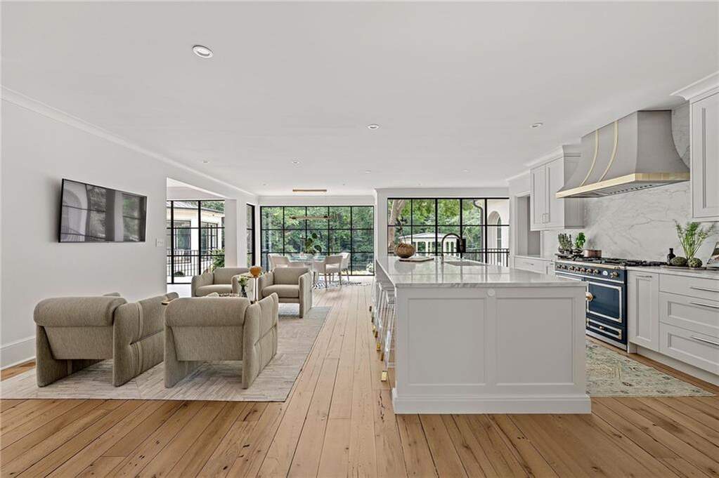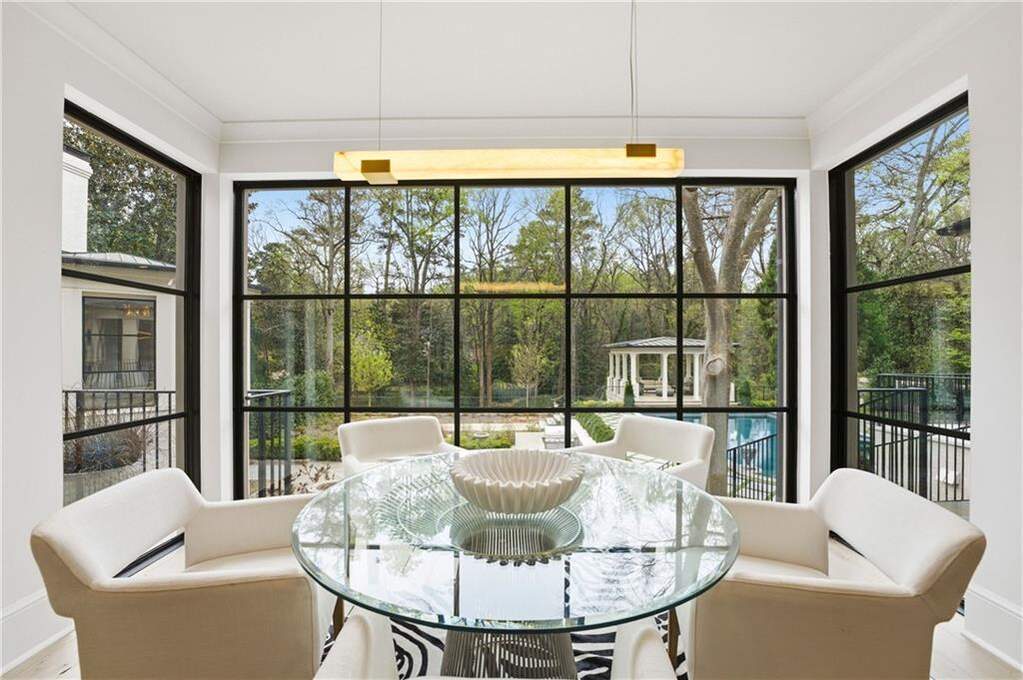 Introducing a distinguished Buckhead estate, originally built in 1955, this iconic residence has been meticulously transformed to offer the perfect balance of architectural heritage and modern sophistication-living effortlessly like a newly constructed home and masterfully reimagined by Tish Mills Interiors. Bathed in natural light, the interiors showcase dramatic steel windows and doors, reclaimed wide-plank white oak flooring, and a curated palette of refined finishes. The exquisite kitchen by Design Galleria serves as the heart of the home, anchored by a statement La Cornue range and complemented by marble surfaces, bespoke cabinetry, and a fully appointed scullery. Designed for both grand entertaining and intimate living, the main level flows seamlessly to a balcony overlooking the manicured gardens and resort-style pool. The primary suite on the main level is a private sanctuary, featuring dual spa-inspired marble baths, custom dressing rooms, a fireside sitting area, and a sunlit conservatory with tranquil views of the grounds. Upstairs, beautifully appointed en-suite bedrooms offer elevated comfort and privacy. The terrace level is equally impressive, with a guest suite, recreation spaces, wine cellar, and a fully outfitted gym-all opening to the pool and spa. Set on 1.72 acres, the grounds are a true showpiece, with tailored English gardens, a level lawn, a redesigned pool and spa, an outdoor kitchen, and a charming gazebo ideal for sophisticated outdoor entertaining. Behind the scenes, the home has been comprehensively updated with all-new systems, including plumbing, electrical, HVAC, insulation, and tankless water heaters. A fully integrated smart home experience-featuring Josh.ai, Lutron lighting, Sonos audio, and a robust Ubiquiti network with security-delivers seamless control, comfort, and peace of mind. Complete with multiple garage bays, EV charging, and exceptional storage, this turnkey residence offers an unparalleled blend of timeless elegance, modern luxury, and cutting-edge technology in one of Buckhead's most coveted settings.
