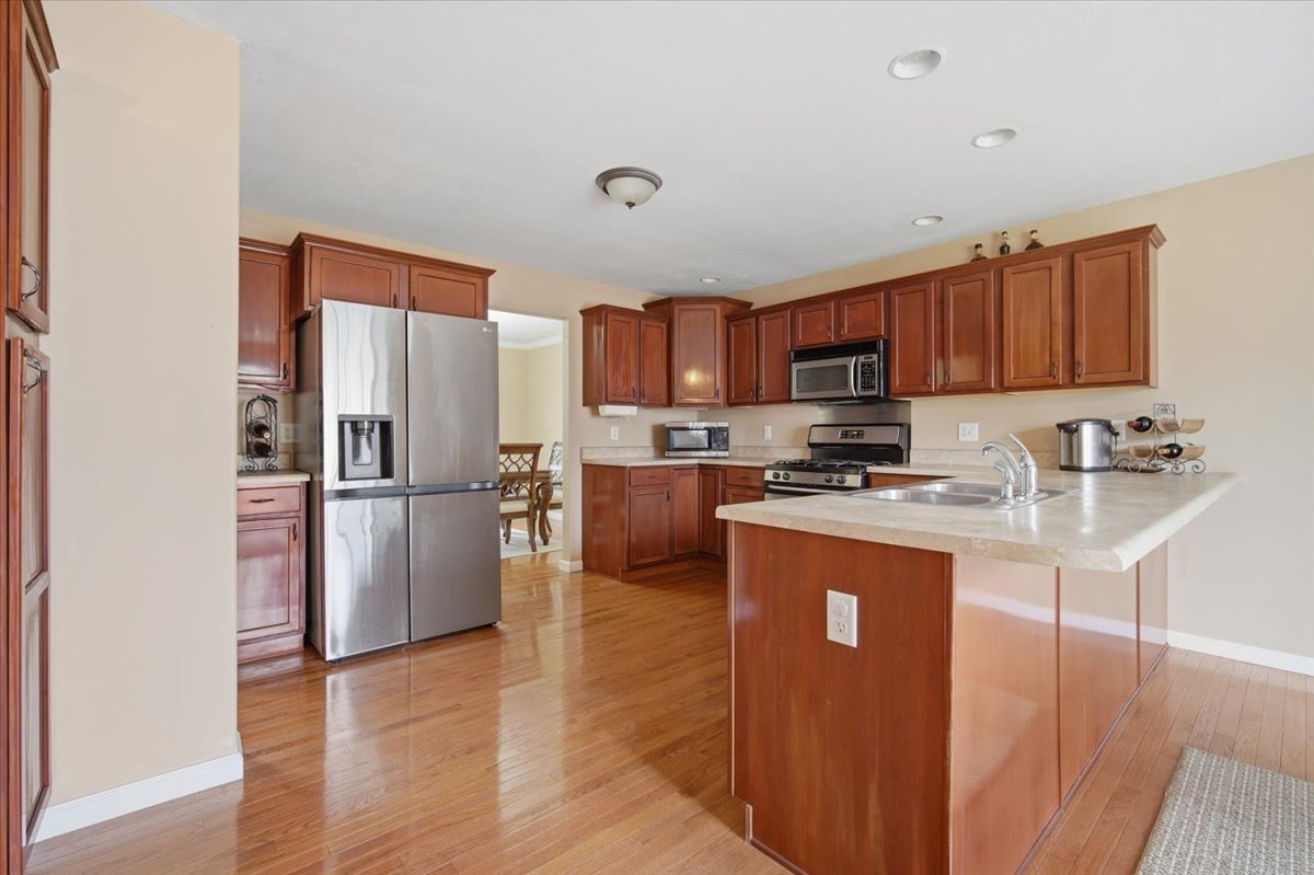 Beautiful, north facing home in Eagles Landing with 4 bedrooms and 2 1/2 bathrooms. Very large and open main level with table space kitchen with all its appliance staying, a separate dining room, and a fabulous family room. The main level just feels larger too with the staircase being on the backside of this level rather than the facing the entry door. The laundry room is also conveniently located on the main level. The finished basement has 2 egress windows on its east side and a bath rough in. The other side of the basement has a media room with overhead surround sound and projector plug ins. Head upstairs to find 4 generously sized bedrooms, all with great natural light. Neutral paint and carpet are throughout the home, along with real hardwood flooring on the main level, and ceramic tiling in the bathrooms. This is a wonderful home in a really wonderful neighborhood!