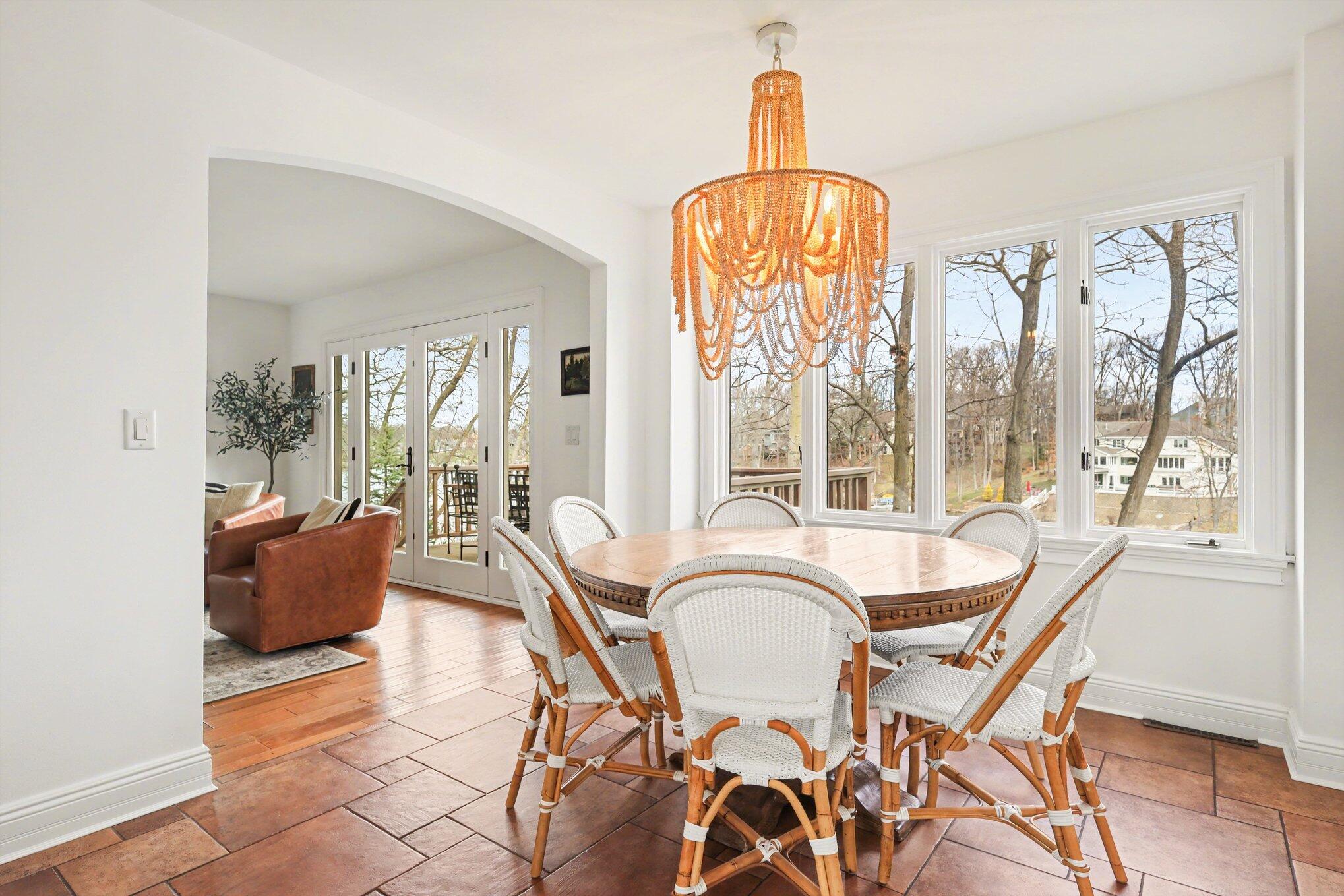 Beautiful lakefront home with all the bells and whistles! Magnificent beveled glass front doors welcome you into this beautifully updated residence, featuring hand-scraped wood floors throughout the main level. The spacious kitchen boasts stainless steel appliances and granite countertops, perfect for both everyday living and entertaining. The living and dining rooms offer stunning lake views, complemented by a cozy family room with a fireplace and a private office completing the main floor. Upstairs, the large primary suite includes an ensuite bathroom, along with two additional bedrooms and a full bath. The fully finished lower level is designed for entertaining, featuring a fabulous wet bar, wine area, TV/lounge space, workout room, fourth bedroom, and full bath.