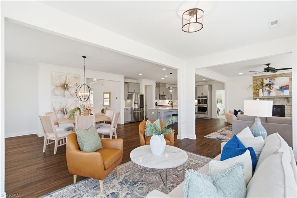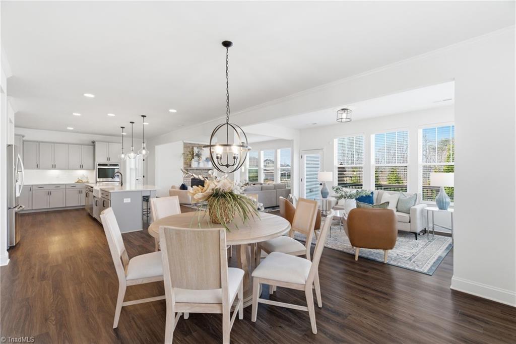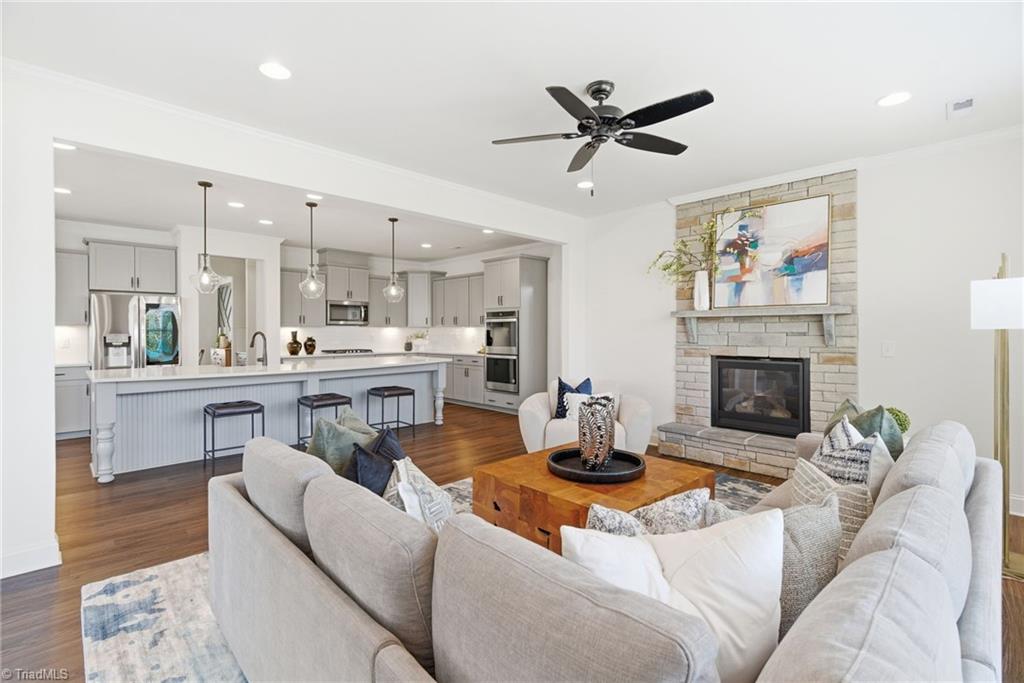 Built in 2019, this 5-bedroom, 3.5-bath home in Mackintosh on the Lake offers 3,753 heated square feet with a flexible two-story layout and an attached 2-car garage. The main level features a dedicated office, formal dining room, spacious living area with gas-log fireplace, and an open kitchen with a large island, butler's pantry, gas cooktop, double ovens, and breakfast area. A main-level bedroom with full bath adds flexibility for guests or multigenerational living. Upstairs, the primary suite includes a tray ceiling, garden tub, separate shower, and dual sinks, along with additional bedrooms, a loft, and second-level laundry. Outside, enjoy a fenced backyard with deck space for relaxing or entertaining. Neighborhood amenities include a community pool and clubhouse. Floor plan available. Refrigerator remains. Buyer to verify tax rate and tax amount.