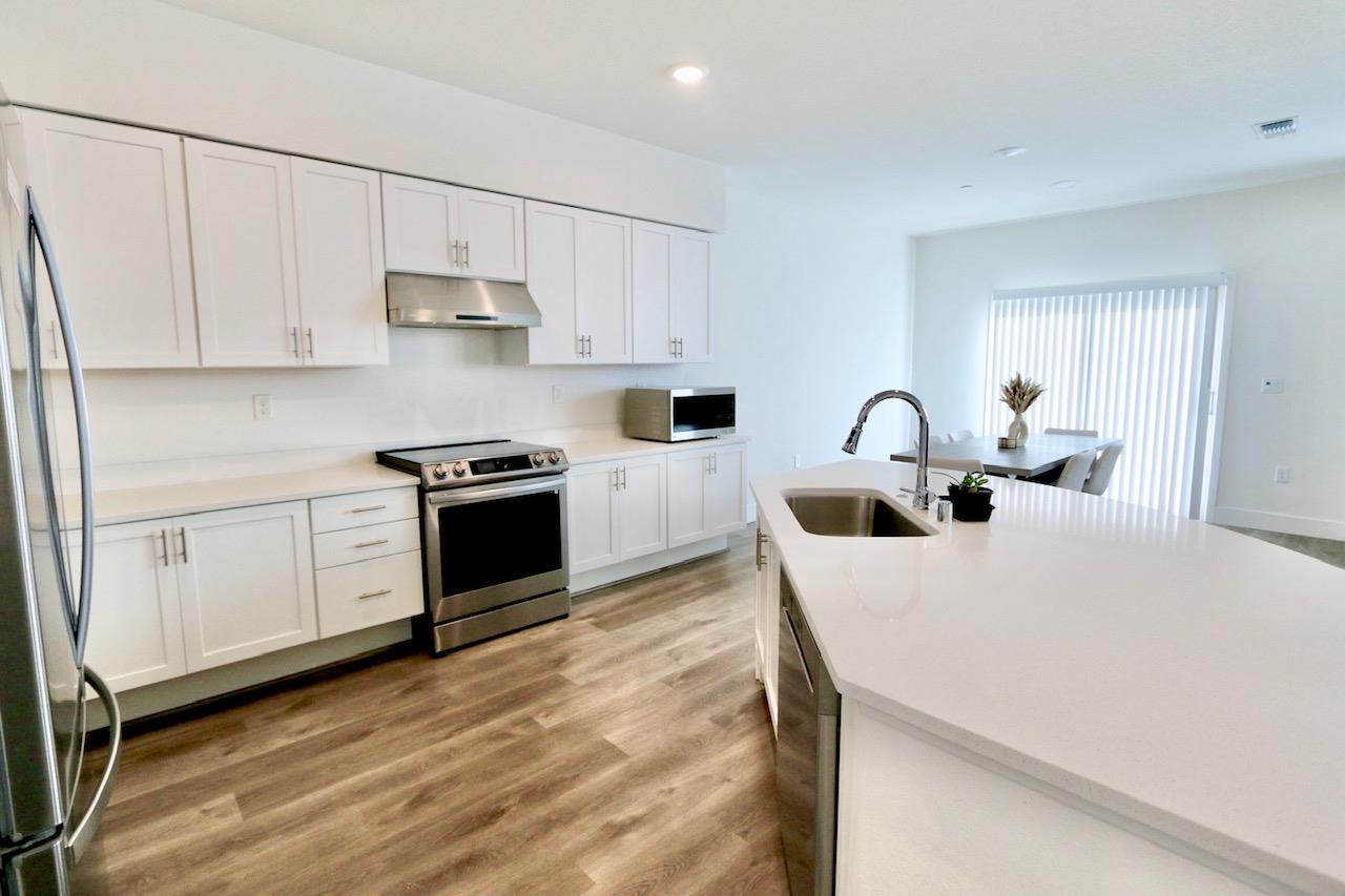 Situated at 5301 E Commerce Way #33102 in the highly sought after Artisan Square Complex, this 3 bedroom, 2.5 bathroom condo presents an attractive living opportunity. The kitchen serves as a central hub, featuring a generously sized island that provides substantial space for culinary endeavors and casual gatherings. Elegant stone countertops complement the refined aesthetic of the shaker cabinets. Within the property, a restful bedroom offers the convenience of an ensuite bathroom, creating a private retreat. This thoughtfully appointed bathroom enhances daily routines with its spacious walk-in shower, providing a refreshing experience, and a double vanity, which ensures effortless preparation. Practicality is thoughtfully integrated throughout the home exemplified by the dedicated laundry room, convenience to the private patio and outdoor. The exterior is crowned with a durable tiled roof, offering both aesthetic appeal and lasting protection. This property offers an exceptional opportunity for an inspired lifestyle within a beautifully maintained setting.