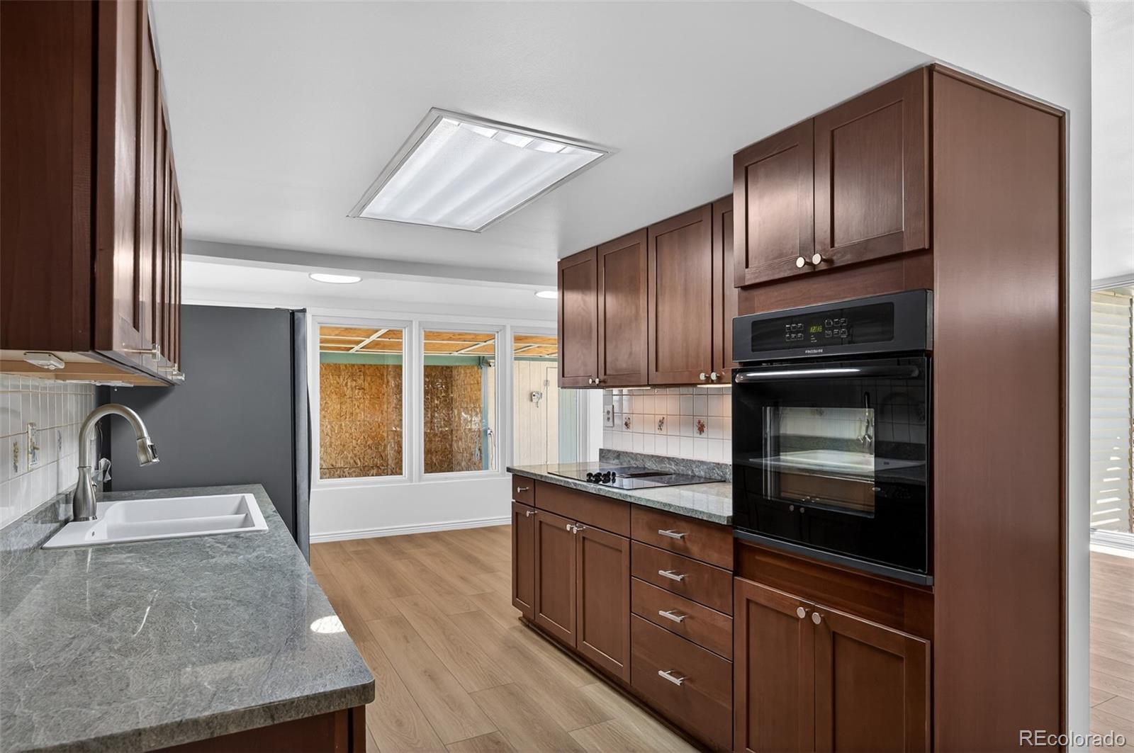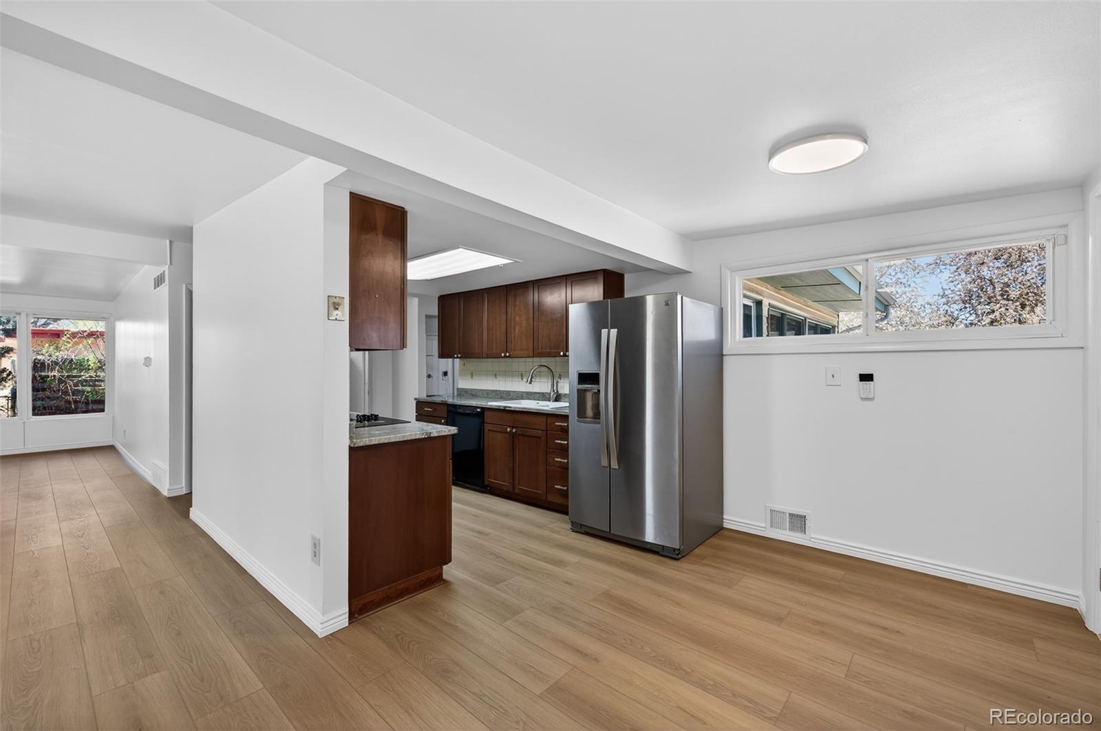 Charming 3-bedroom, 1-bath mid-century modern home situated on a spacious, fully fenced and gated lot. This light-filled home features tall ceilings and abundant windows, creating a bright and airy atmosphere while maintaining a sense of privacy. Recently renovated with fresh interior paint, new carpet, and updated flooring throughout. The kitchen is equipped with newer appliances, granite countertops, and an adjoining dining area. The property includes a 2-car carport, three storage sheds, and ample space for expansion or the addition of a 2-car garage. A wonderful opportunity to own a move-in ready home with room to grow.
