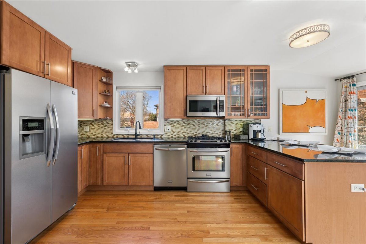 All good vibes in this inviting and delightful 2 bed, 2 bath home in Evanston's West Village! The first floor features hardwood floors throughout, a sweet living room with large picture windows, open northern views over the neighboring property lot provide wonderful natural light, a full bath with laundry, dining room, and kitchen with patio sliders leading to the deck. The second floor features skylights, 2 bedrooms where one has a deck, and the bedrooms share a Jack-and-Jill bathroom. The finished basement with lower ceiling height offers great space for storage, cozy lounging, or a home office. No garage possible, but enjoy the fully fenced yard with a brick paved patio on an approximately 100' deep lot. Estate sale, sold as-is.