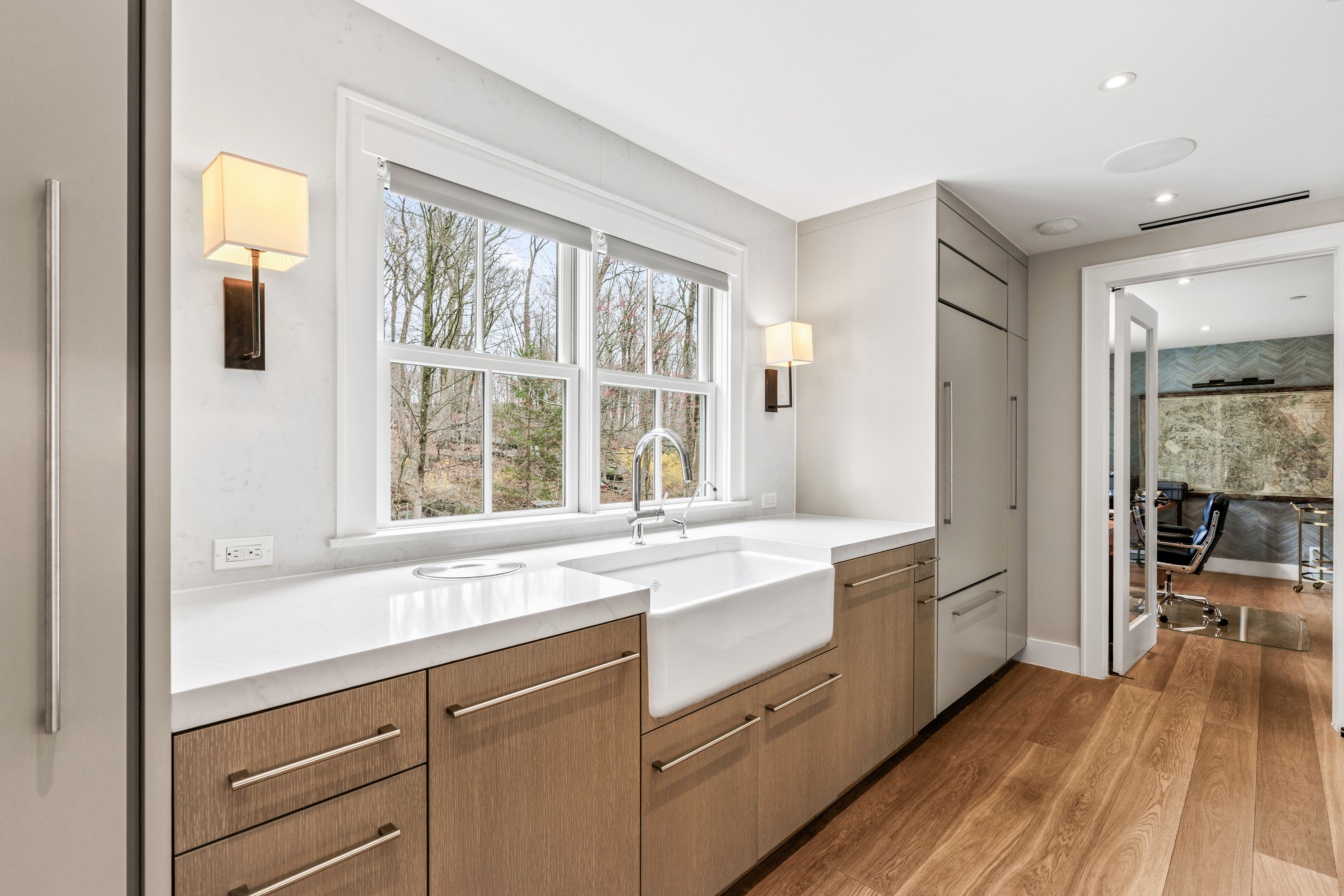 A showcase of modern luxury, this reconceptualized & reconstructed residence in Harrison's coveted Winfield Glen neighborhood blends high-design with effortless functionality. Set behind a gated driveway on beautifully landscaped private grounds, the home offers sun-drenched interiors, bespoke finishes, and seamless indoor-outdoor living.