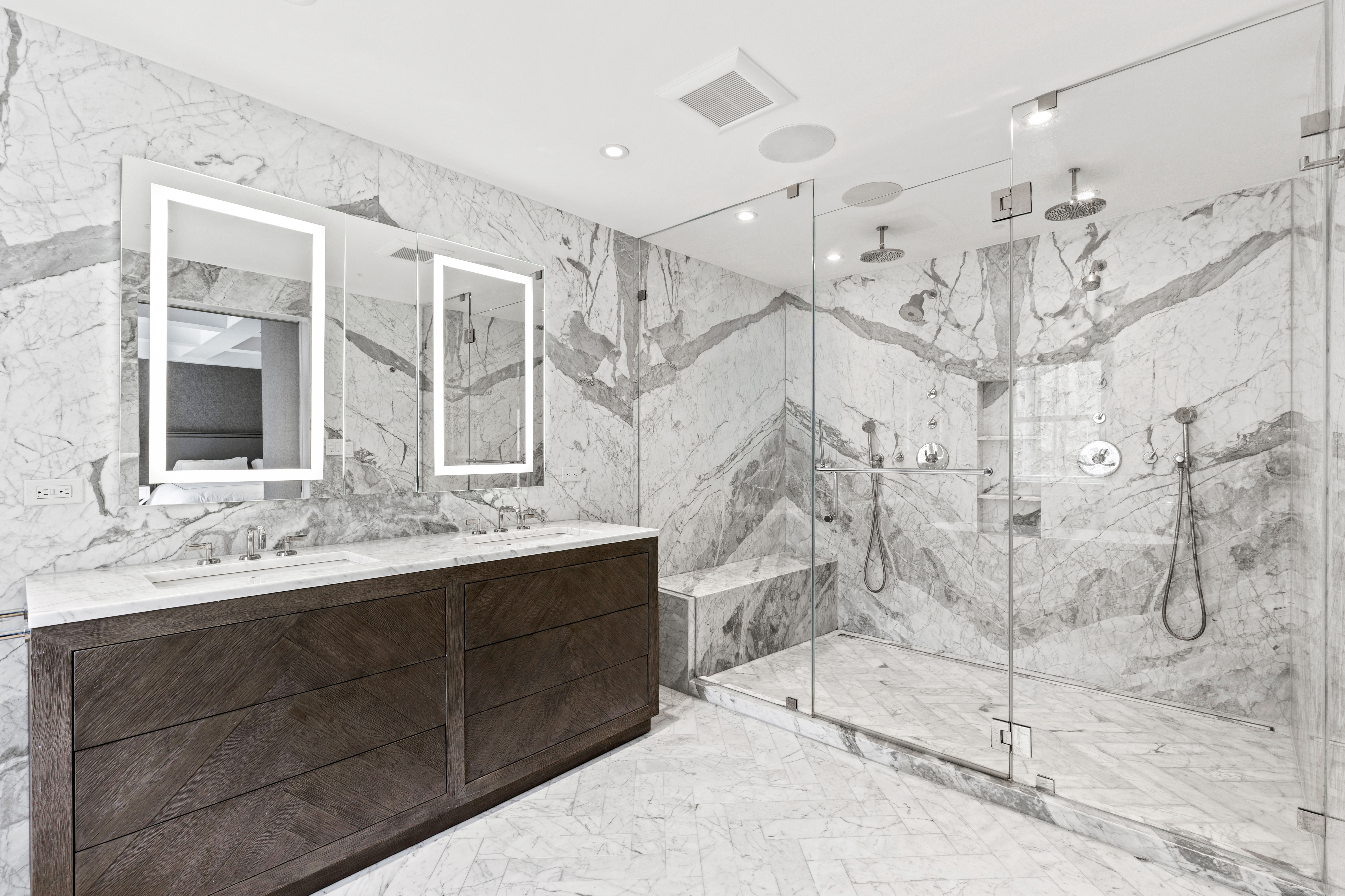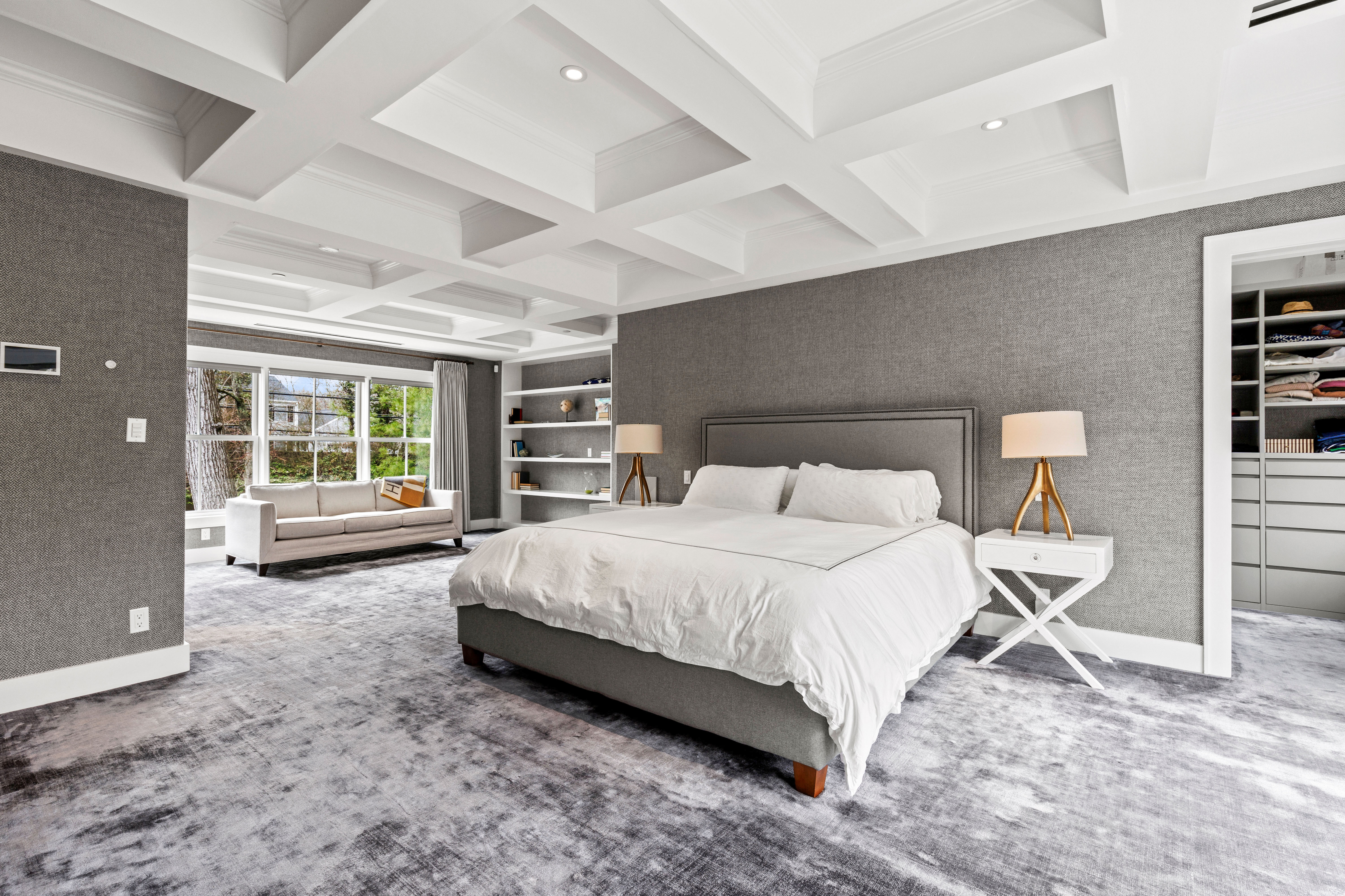 Upstairs, the Primary Suite offers a private sanctuary with coffered ceilings, oversized walk-in closet, gas fireplace and an integrated infrared sauna. The spa-like Primary Bathroom is finished with book-matched Statuary marble slabs, double vanity with recessed cabinets, over-sized multi-zone glass-enclosed shower & private water closet. 3 Additional Bedrooms with outfitted closets and two full Bathrooms, Lounge Room & Laundry Room and ample storage complete the second level. Additional highlights include a First-Floor Bedroom with Ensuite Bath, custom California Closets throughout, 7" wide plank white oak flooring, radiant heated floors throughout the first and second levels, a dedicated AV room, full-house generator, pet wash area & so much more.