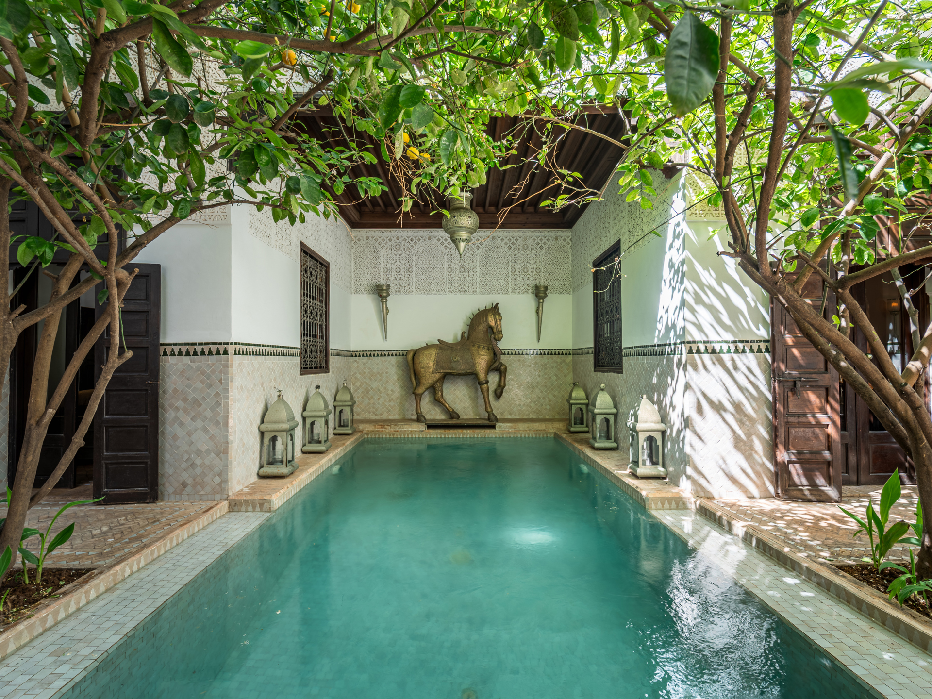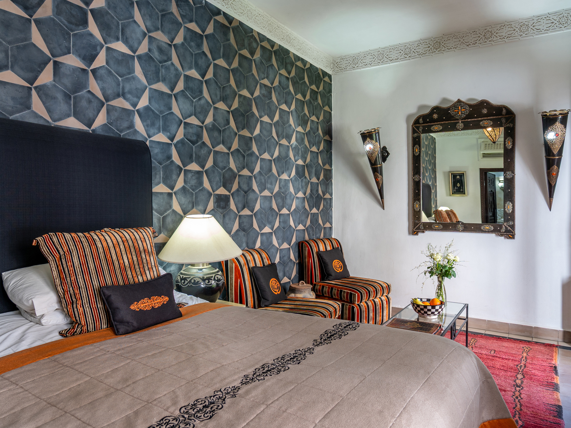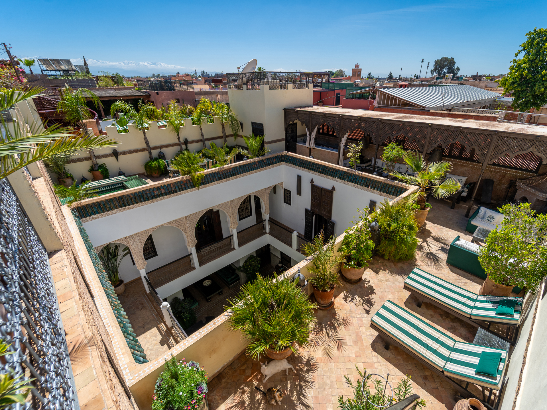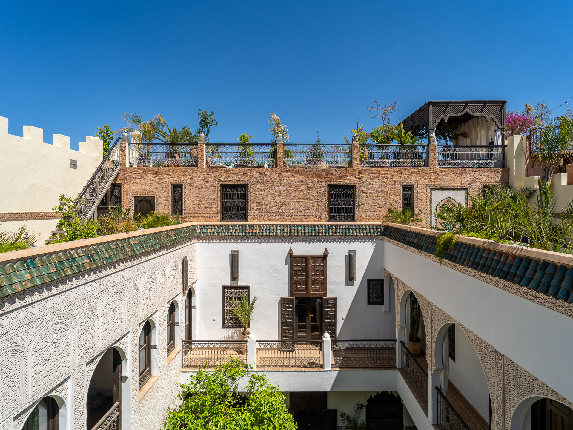 Located just steps from the renowned Bahia Palace and with car access only 30 meters away, this Riad, operating as a guesthouse for over 15 years, is a true sanctuary of tranquility. The Riad features a patio with a generous 6 m x 3 m swimming pool, seamlessly integrated into the spacious courtyard adorned with orange trees. On the ground floor, there are two elegantly appointed bedrooms with en-suite bathrooms, a double living room with fireplace and dining area, a bhou overlooking the pool, a fully equipped kitchen, an office, guest toilets, and ample storage. The first floor comprises two junior suites with bathrooms, two comfortable master suites, and a massage room. On the terrace, a 45 m² apartment includes a kitchen, living room, dressing area, bedroom, and bathroom, which can be configured as two bedrooms with bathrooms. The terrace also features a water point with solarium, a pergola for dining with an outdoor kitchen, and a panoramic upper terrace overlooking the medina, offering 360° views of the city and the Atlas Mountains. Originally, the Mellah was the Jewish quarter of the medina, evidenced by its synagogue and cemetery. Authentic and vibrant, it is dotted with cafés, fine dining establishments, and houses the Bab Mellah spice souk. For further information, please contact Charles Detchessahar at +212 6 61 06 32 49.