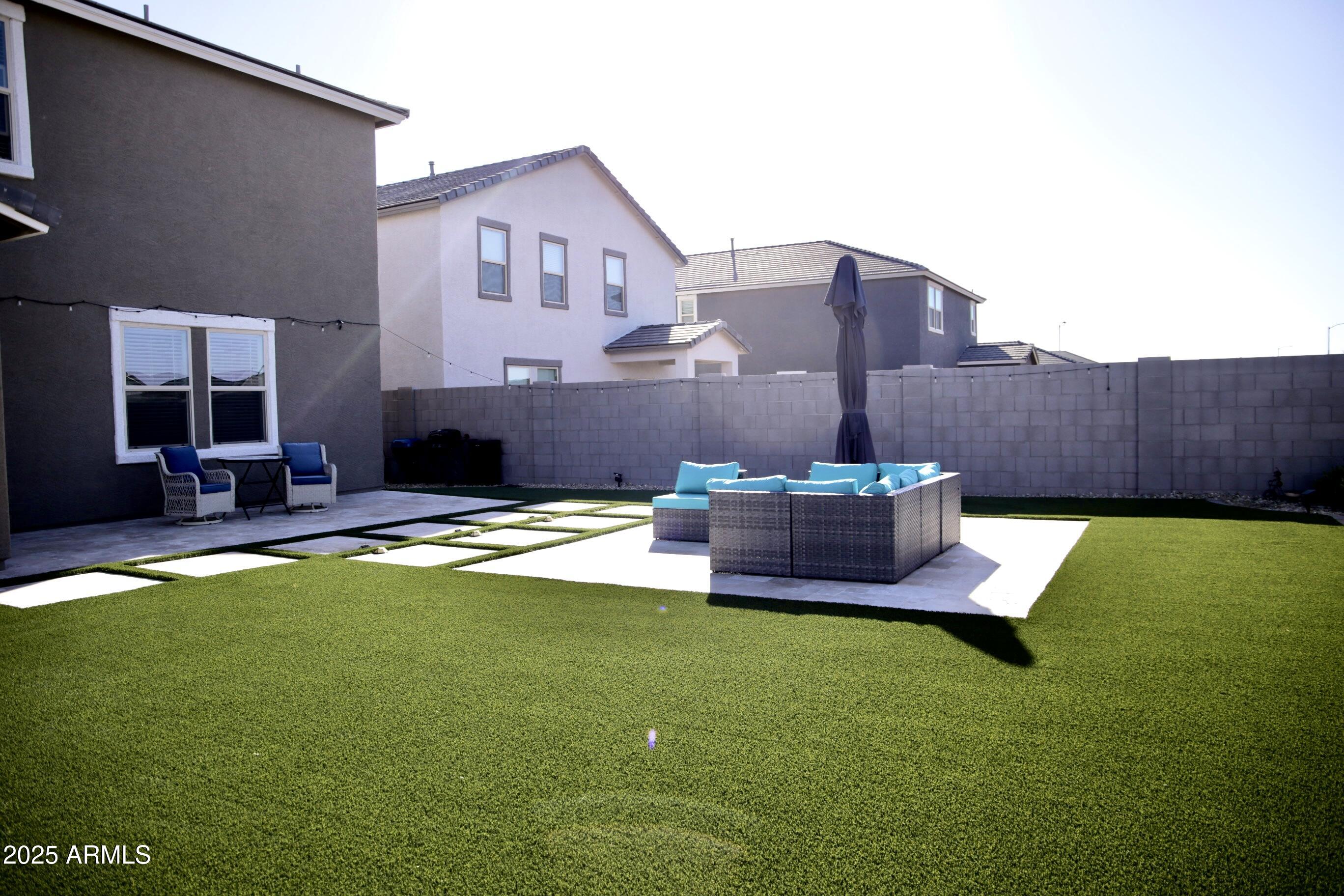 QUICK MOVE-IN.. ALSO FOR RENT: MLS # 7008220. Built in 2024, this stunning two-story home showcases an open kitchen that seamlessly connects to the family room and opens to a covered patio, perfect for indoor-outdoor living. The backyard is fully fenced with durable block walls and features low-maintenance artificial turf and pavers. Inside, enjoy a first-floor bedroom, a generous loft, walk-in closets in four bedrooms and a convenient laundry room on the second floor. The home also includes dual-zone A/C, a programmable thermostat, and a two-car garage for added comfort and functionality. A two-car garage completes this impressive home.
