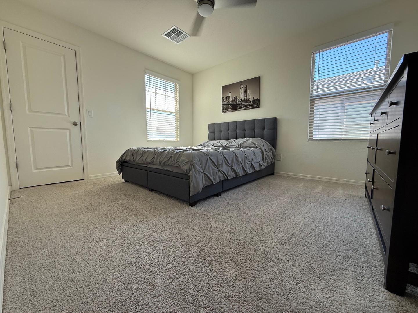 ALSO FOR SALE: MLS # 6995974.QUICK MOVE-IN! Built in 2024, this stunning two-story home showcases an open kitchen that seamlessly connects to the family room and opens to a covered patio, perfect for indoor-outdoor living. The backyard is fully fenced with durable block walls and features low-maintenance artificial turf and pavers. Inside, enjoy a first-floor bedroom, a generous loft, walk-in closets in four bedrooms, and a convenient laundry room on the second floor. The home also includes dual-zone A/C, a programmable thermostat, and a two-car garage for added comfort and functionality. thermostat. A two-car garage completes this impressive home.