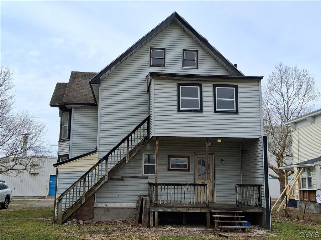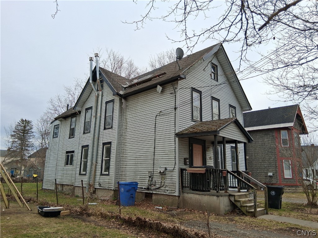 This upper/lower two-unit is located on a quiet residential street with a large back yard. First floor unit has a large dining room, living room, kitchen, bath and two bedrooms (one is small). It also has a back porch. Upstairs has a large dining room, living room, kitchen, bathroom, back porch and a bedroom on the second floor and an additional three rooms in the attic. Home needs a new roof and has deferred maintenance. There is a full basement with a laundry hook-up and separate utilities. Don't miss this investment opportunity to fix and rent or fix and flip. Priced to sell at $100,000.