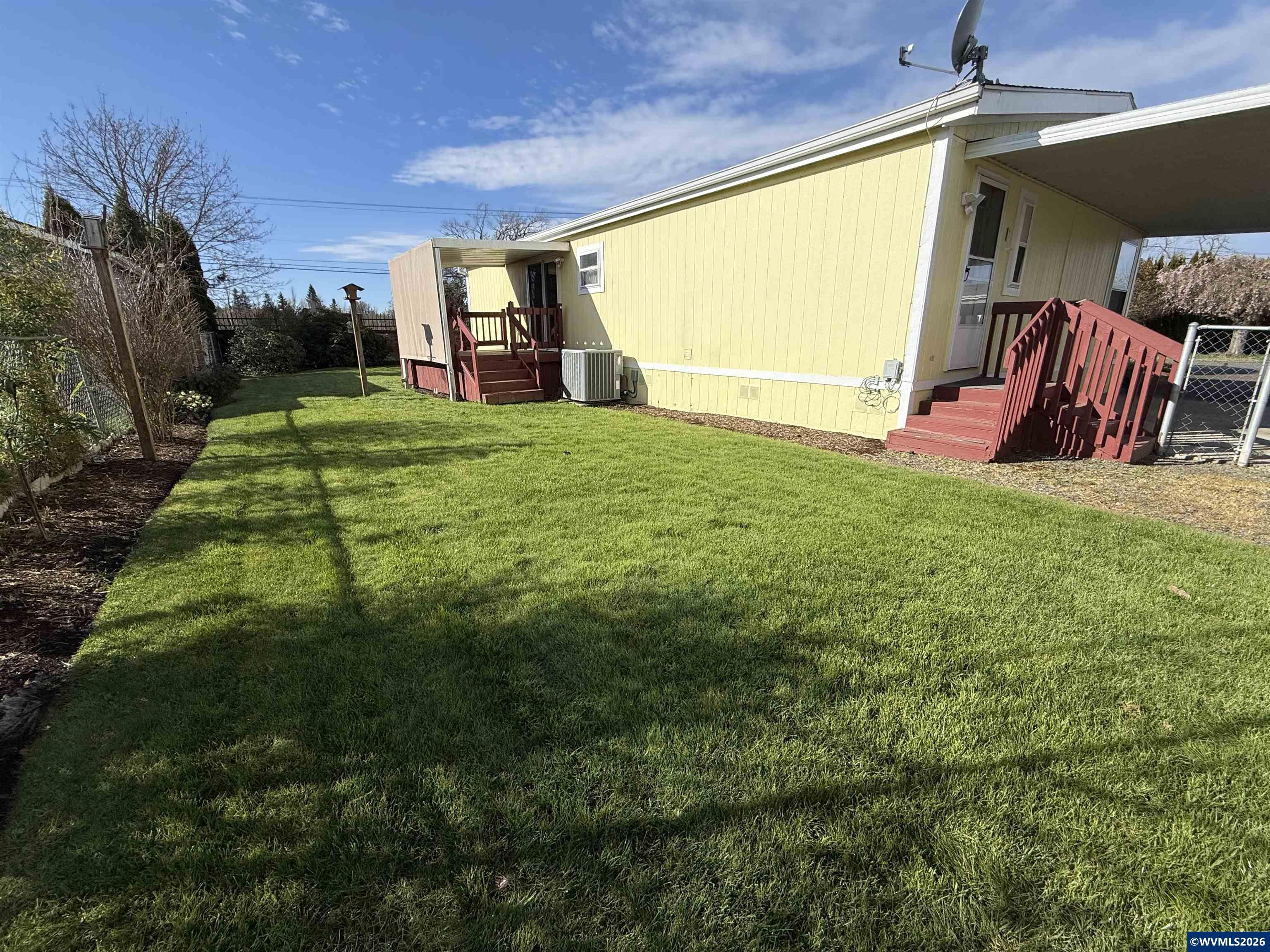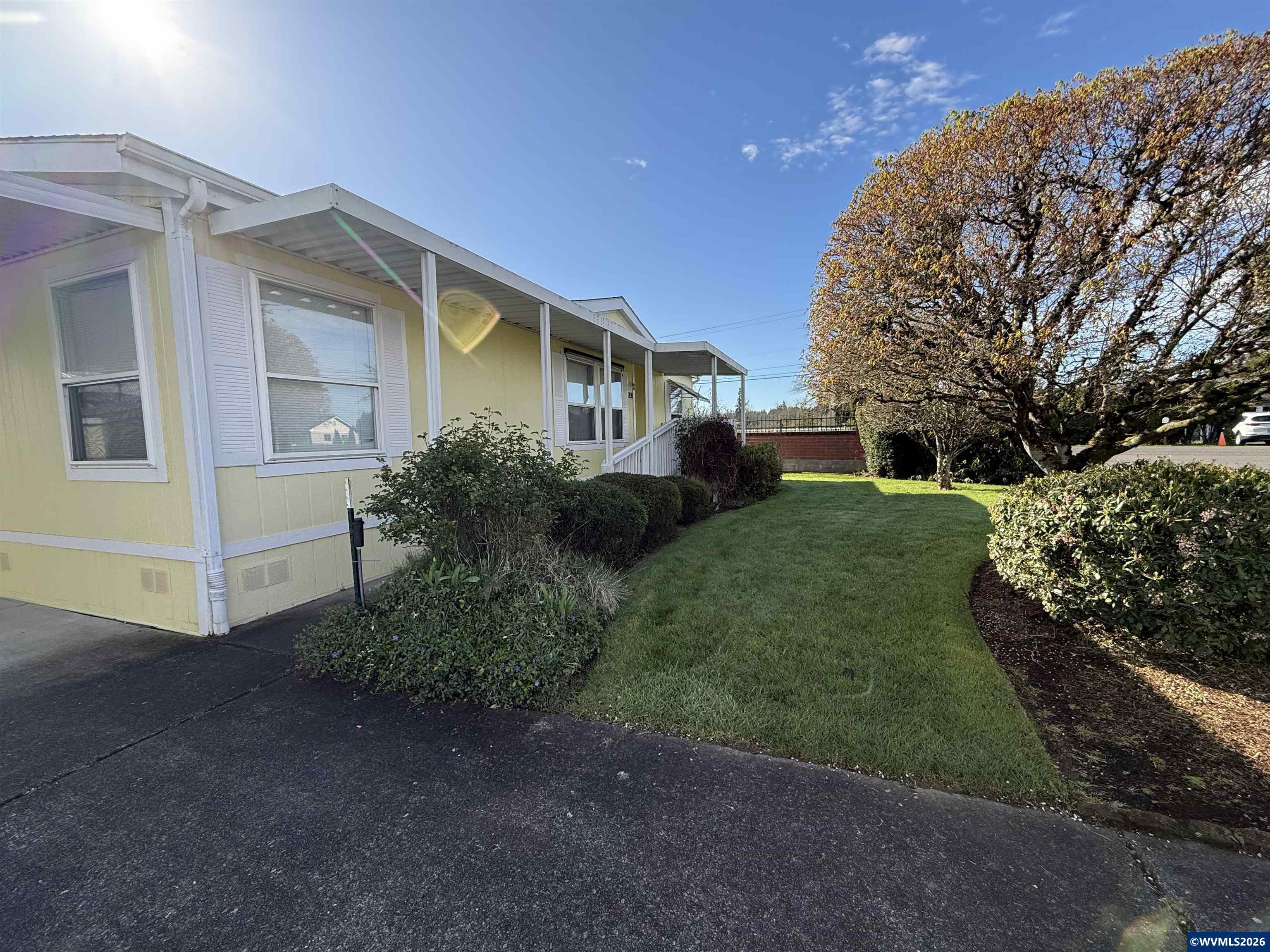 Charming home in an all-age park features a large flat fenced yard & extra parking. Inside enjoy an open bright layout w/vaulted ceilings, spacious room sizes, 3 bed 2 bath. Recent updates include roof, heat pump, hot water heater, shower, range and laminate flooring. Beautifully maintained landscaping and a shed perfect for gardening or a workshop. Conveniently located near the post office, city hall and local parks.