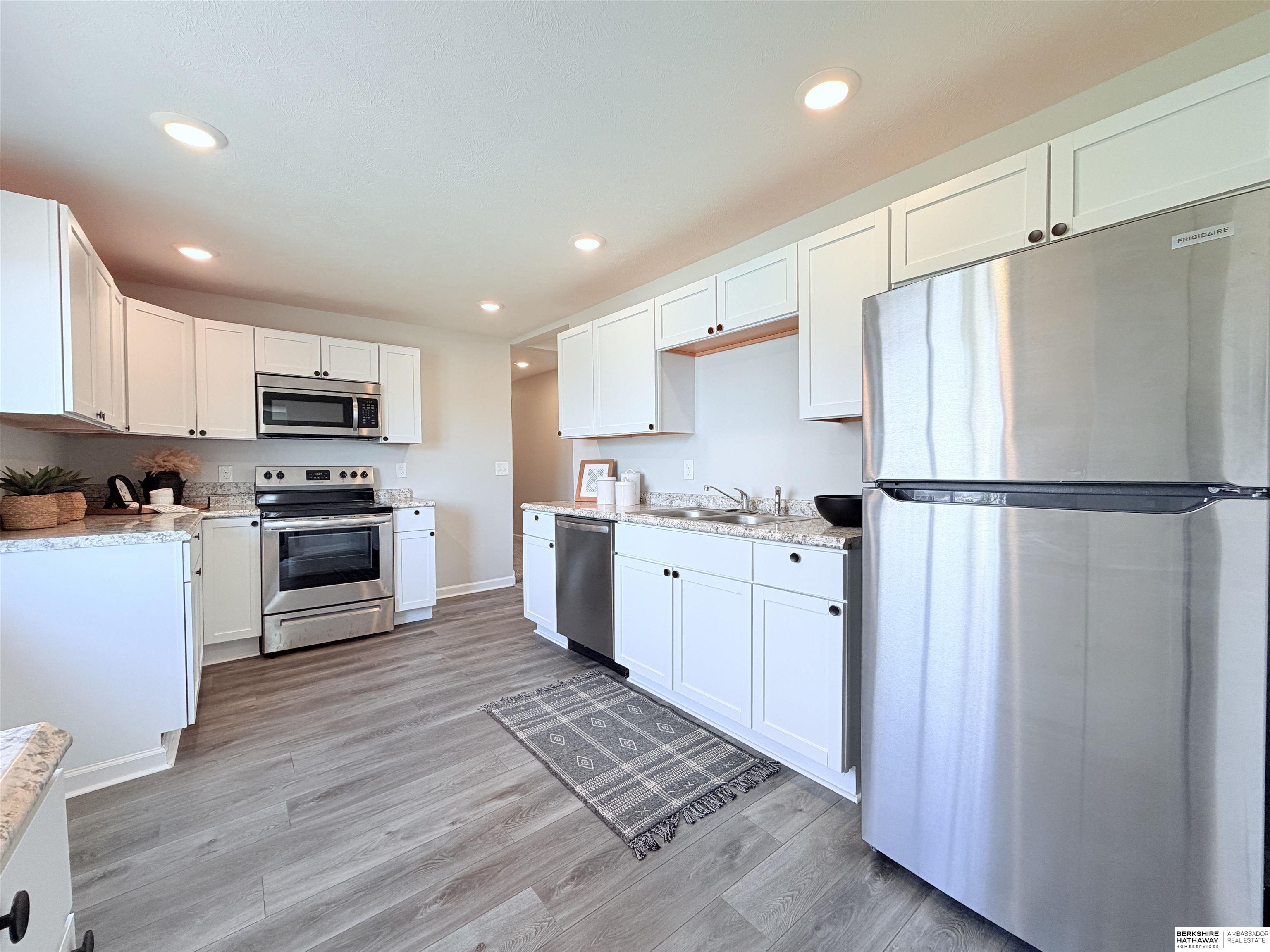 Fresh, inviting, and easy to love-this 3-bedroom ranch is ready for its next chapter. Major updates completed in 2023, including furnace, AC, electrical, plumbing, and modern finishes, bring comfort and confidence from the start. The main level offers a bright, welcoming feel with a dedicated dining space and a spacious kitchen featuring stainless steel appliances and generous cabinetry. Downstairs, you'll find approximately 449 square feet of partially finished space with new carpet, a finished ceiling, and defined areas that offer flexibility for a second living space, hobbies, or a quiet retreat, while still keeping a functional laundry area. The garage feels more refined and usable, and the improved curb appeal makes a strong first impression. With a large backyard and quick access to Sorensen Parkway and downtown Omaha, this home blends comfort, convenience, and everyday living.