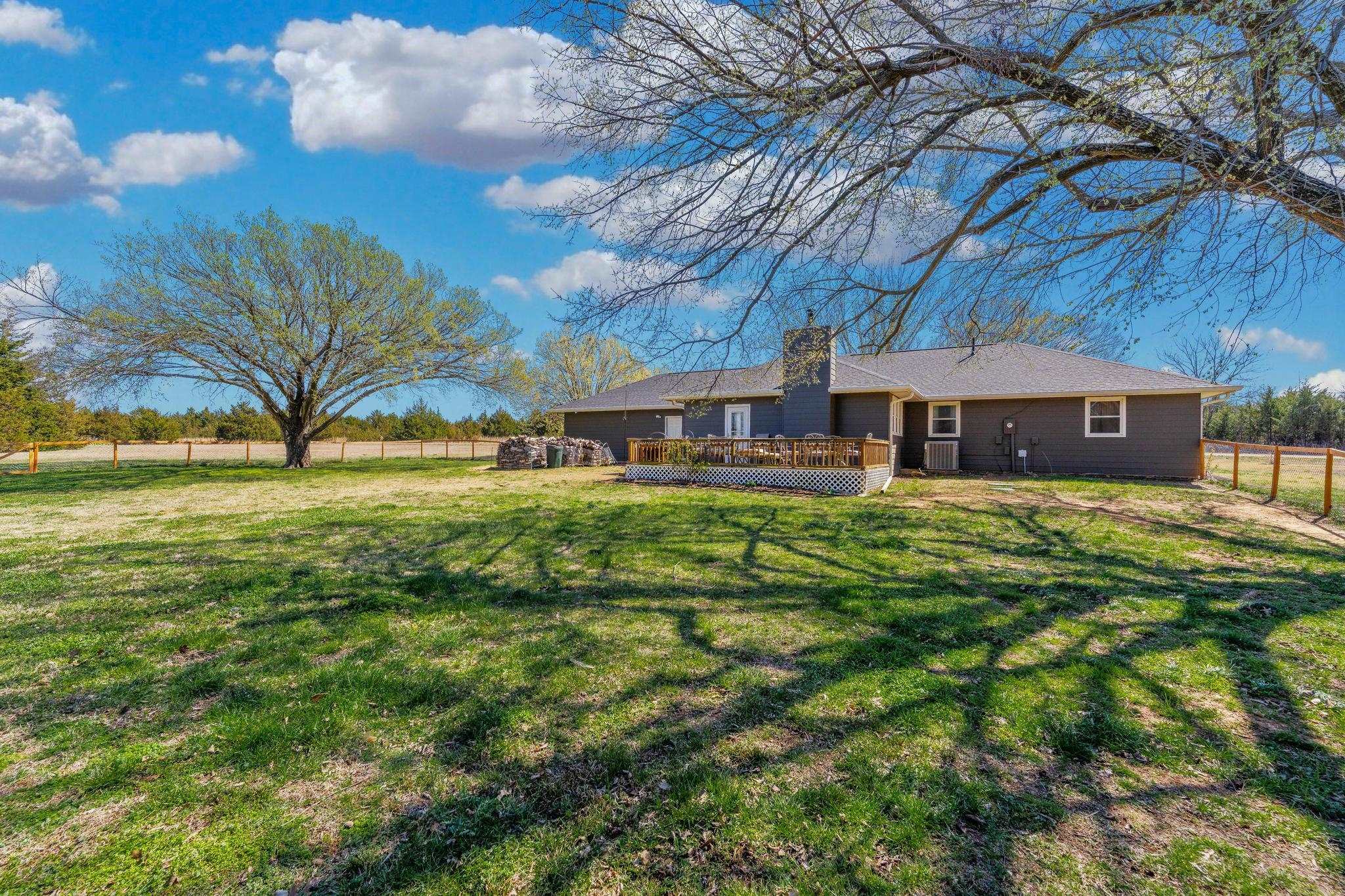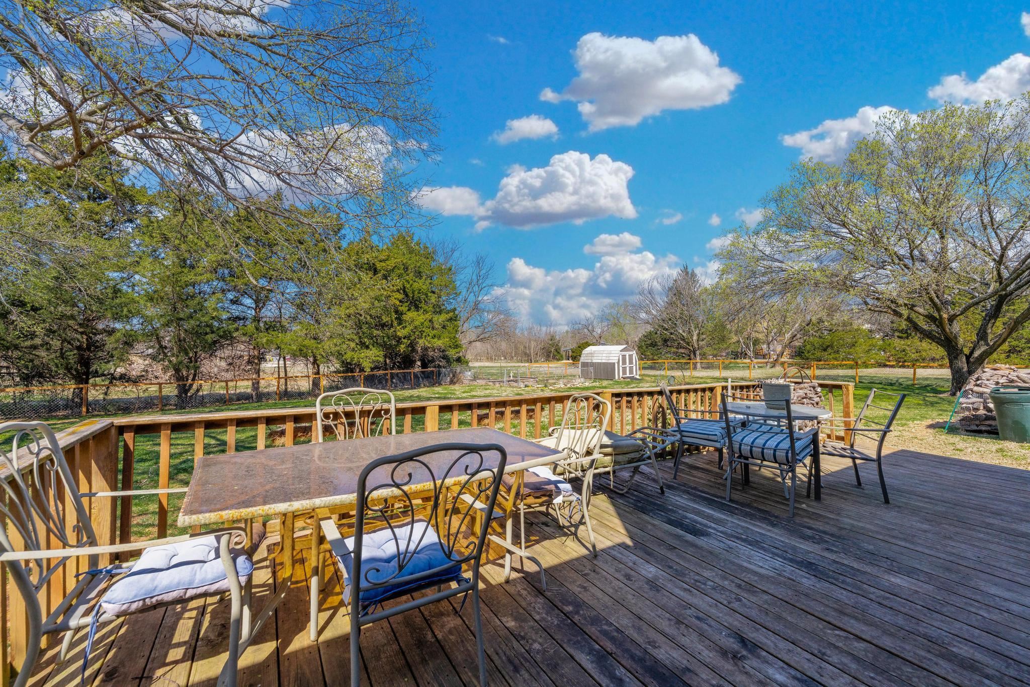 Welcome to the quiet kind of luxury you feel, not just see. Tucked gently into the trees of Lakewynds Estate, this charming ranch home invites you to slow down, breathe deeper, and truly live. Set on just over an acre, this three bedroom, two bath home offers something that's getting harder and harder to find: peace, privacy, and space to make memories. Step inside and you'll immediately feel it! That sense of comfort that says you're home. The spacious family room becomes the heart of it all: cozy evenings, laughter with friends, and effortless entertaining with the convenience of a wet bar just steps away. But it is what happens outside that truly sets this home apart. Imagine early mornings on the back deck, coffee in hand, as the trees gently sway and the world wakes up around you. Evenings bring those breathtaking Kansas sunsets that never get old. And then there are the moments you don't plan for. Picture a quiet morning any time of year: soft light filtering through the trees, a sense of stillness all around you, and just beyond your front window, a doe and her fawn moving gently through the landscape. It is the kind of everyday magic that reminds you why you chose a home like this in the first place. The fully fenced backyard creates the perfect space for pets to safely roam, play, and be part of your everyday life because home just is not the same without them. And for those who dream a little bigger, this property offers even more. An adjoining lot provides the rare opportunity to expand your vision, whether that's building a hobbyist's workshop, a mechanic's dream garage, or simply creating additional space to suit your lifestyle. Here, you're not just buying a home; you're investing in possibility.