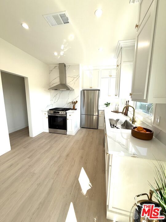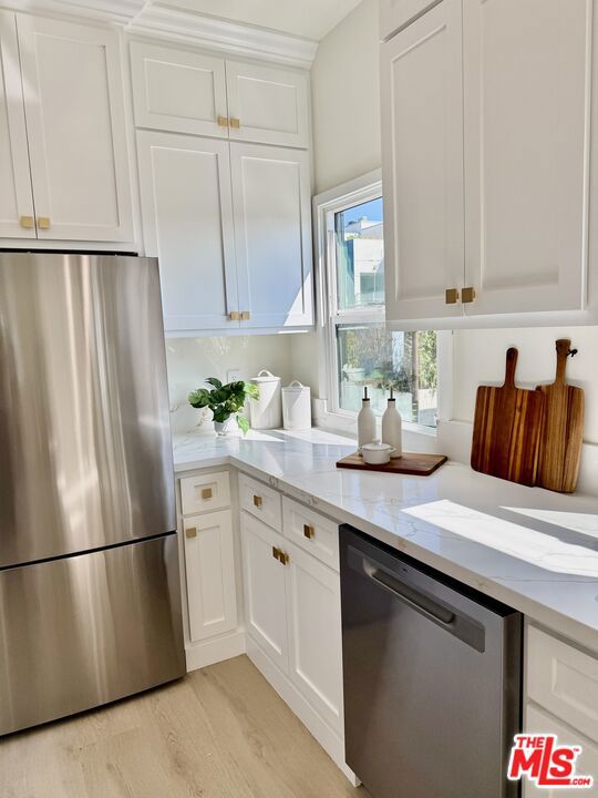 Magnificently remodeled with taste and elegance. This gorgeous unit with a private entry, offers 1,359 square feet of sprawling open floor plan with a large sun-field living room and a large sun-field dining room open to the gourmet kitchen with custom cabinets, custom quartz countertops and top of the line appliances. Large bedrooms with walk-in closets. Recessed lighting, hardwood floors, central AC unit, in-unit laundry and much more. Located in one of the most sought after locations of west Hollywood, This unit is designed for luxury, comfort, and entertaining.