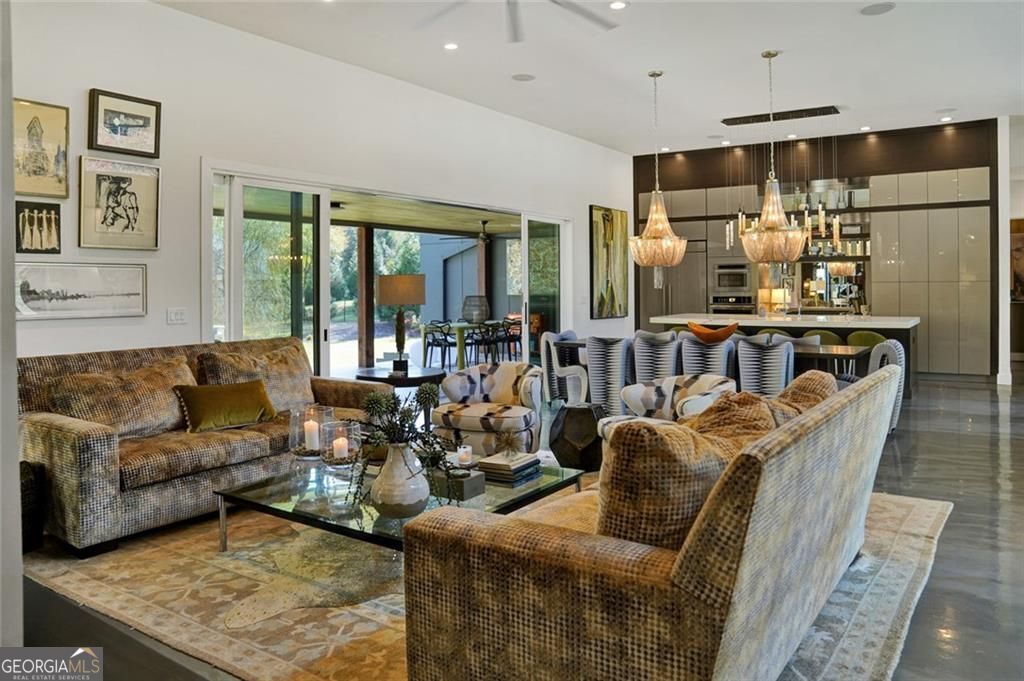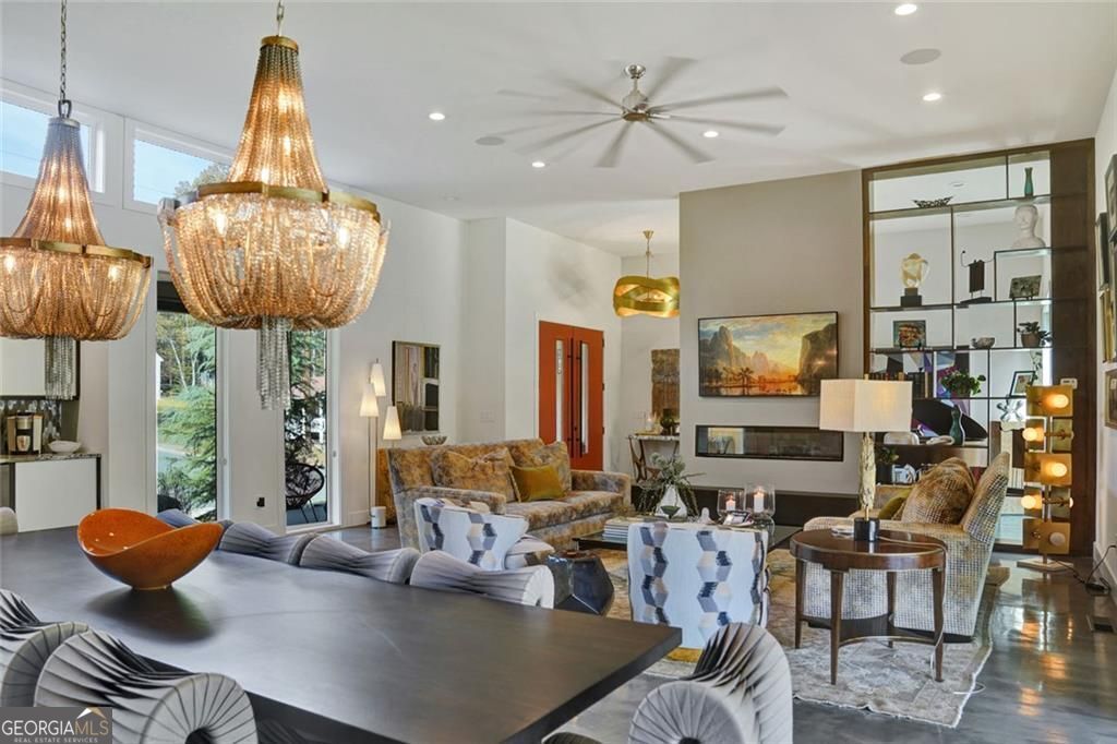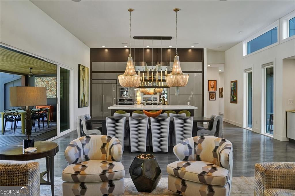 This home has an incredible story-and will speak to you from the moment you enter. It is a home with heart and is a one-of-a-kind that you will not find anywhere else. For more than 25 years, the seller carried the dream of this home in her heart. About 10 years ago it was finally sketched on a simple napkin, and in 2018, that dream became reality. Every line, every corner, and every finish was chosen with care and intention. The Seller personally hand-selected each element to create a home that feels both unique and timeless, built with true quality craftsmanship from the very beginning. From the start, the goal was to create a home that could do it all-perfect for entertaining and gathering, yet still warm, inviting, and peaceful. It's a private retreat that feels tucked away, while still being just moments from the vibrant charm of downtown Woodstock. This home has been the setting for countless memories-laughter-filled evenings, holidays surrounded by family, quiet mornings with coffee, and celebrations with friends. It is a home full of love and joy, and it will always hold a special place in the seller's heart and now is special to downtown Woodstock. The outstanding features are truly unmatched and it is hard to name them all from the custom light fixtures throughout-each one handpicked for this home and space. The inviting family room offers a stunning two-sided fireplace with custom built-in shelving. The chef's delight kitchen is exceptional with intention, featuring a KitchenAid/Sub-Zero refrigerator, gas cooktop with a disappearing vent hood, and beautifully custom-ordered high gloss acrylic touch-latch cabinetry. Soaring 14 feet ceilings in the main living area and open floor plan with beautiful light and 10 foot ceilings on the rest of the main level. A unique side bar area with tile backsplash, ice maker, and wine cooler. Tankless hot water system, and special-order European doors and most windows add even more elevated detail. One of the most striking features is the staircase to the second level-artist-designed and truly one of a kind. Step outside and you'll find an unforgettable backyard oasis situated on 1.5 acres, complete with a heated saltwater pool, hot tub, wood-burning fireplace, two outdoor televisions, gas grill trex deck, AstroTurf, front and back irrigation systems, fenced backyard and even a separate dog run area. You will fall in love with this home the moment you walk through the door.2 secondary bedrooms on main level with 2 full baths and one half contain plenty of closet and storage space. Full upstairs in-law suite, teen suite or perfect for an au pair. Loft area, spacious room with its on roof top deck. Hardie cement board and ship lap adorn the outside of the home. 3 Car garage. There is nothing like this in downtown and we know you will love it.