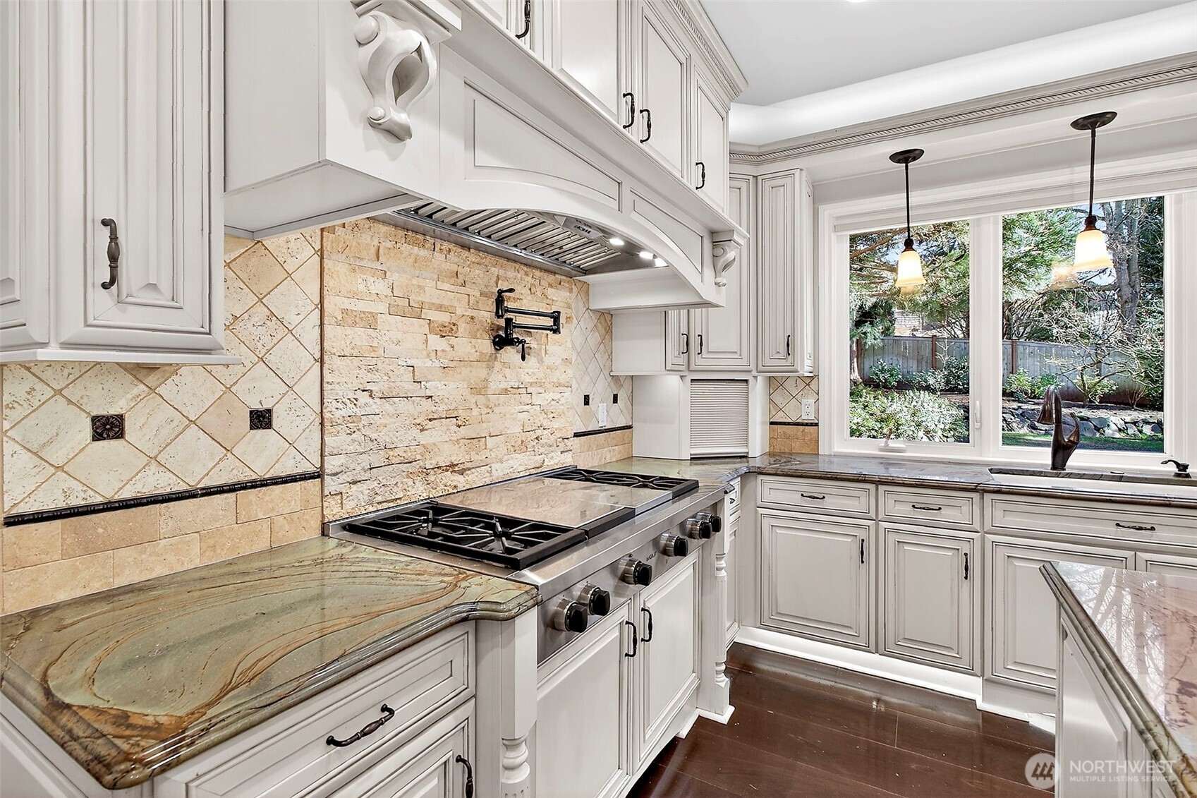 Welcome to a truly exceptional estate tucked away on a quiet cul-de-sac, where luxury, privacy, and lifestyle come together in spectacular fashion. Spanning over 5,469 sq ft, this stunning home sits on a beautifully curated, park-like lot surrounded by mature trees, offering rare seclusion and incredible curb appeal. From the moment you arrive, the craftsmanship is undeniable - lush landscaping, architectural lighting, and tranquil water features set the tone. The outdoor experience is unmatched entertain under the covered open-beam living space with skylights, relax in the built-in spa, or host unforgettable evenings with heaters, sound system, fire table. A fully lit sport court for pickleball, tennis, and basketball plus a powered cabin-style outbuilding adds versatility and fun. Inside, rich walnut flooring, soaring 8' doors, and custom millwork create a warm yet grand feel. The chef's kitchen shines with Sub-Zero, Wolf gas cooking, double ovens, Bosch dishwasher, and custom cabinetry. Expansive sliding doors seamlessly blend indoor/outdoor living. Enjoy a media room with surround sound, custom office, and flexible spaces throughout. The primary suite offers a sitting parlor, heated spa-like bath, soaking tub, multi-head shower, and custom walk-in closet. An oversized 4-bay garage with workshop, 220V power, and abundant storage completes the package. Outdoor living space includes 72-inch smart TV and Heaters This is more than a home - it's a lifestyle