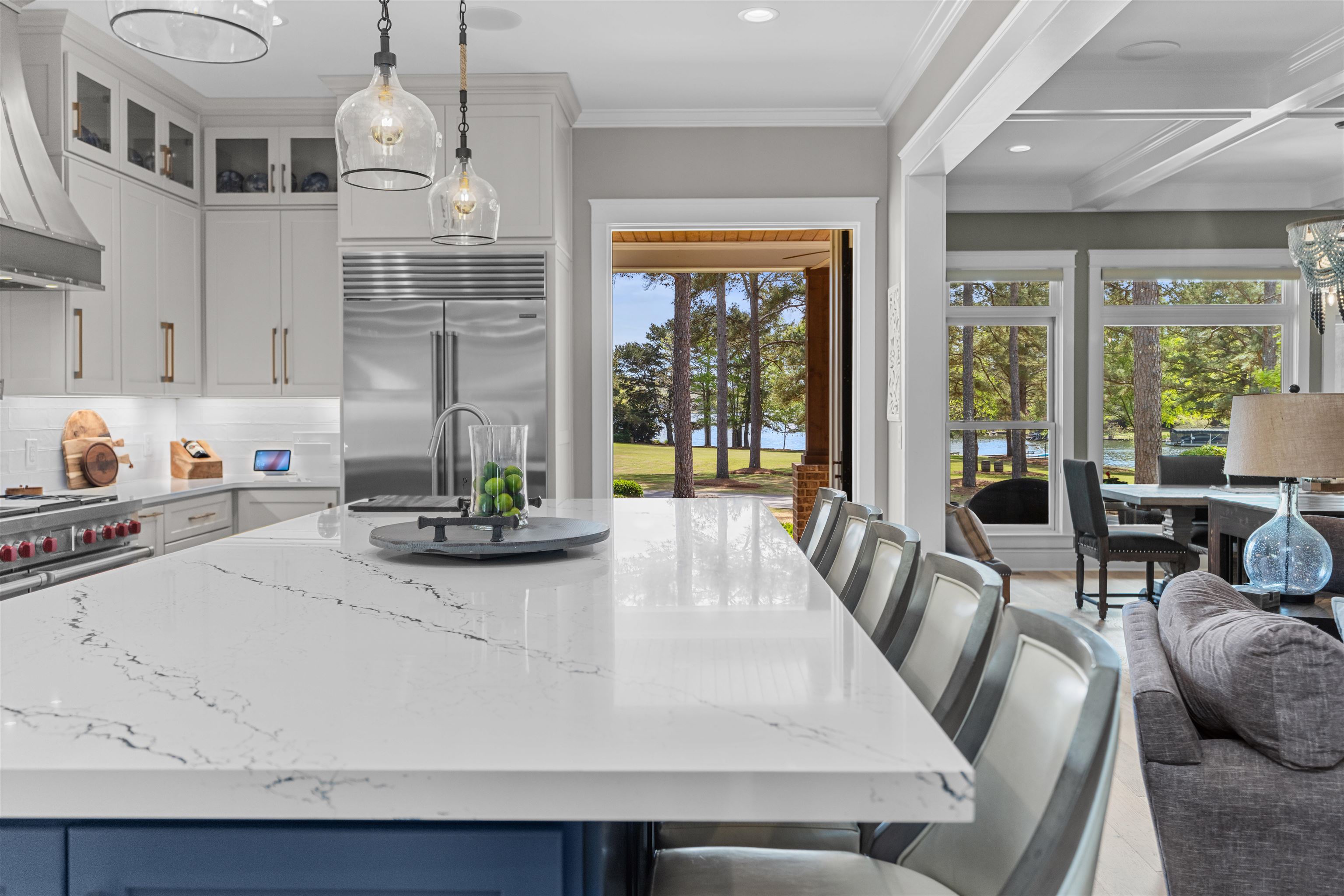 Luxury Lake Living in Cuscowilla at Lake Oconee! This beautifully remodeled 4-bedroom, 4.5-bath Craftsman-style home offers stunning lake views overlooking protected green space, with shared docks conveniently located just across the street. Designed for both comfort and entertaining, the main level has been fully updated and features new wood flooring, high-end lighting, and an open-concept layout with surround sound. The gourmet kitchen is a true showstopper, complete with Cambria quartz countertops, custom cabinetry, a pot filler, a Sub-Zero refrigerator, Wolf oven and warming drawer, Cove dishwasher, built-in microwave, separate ice maker, farmhouse sink, and a separate prep sink. The spacious primary suite provides a luxurious retreat, while additional bedrooms upstairs offer ample space for family and guests. Enjoy seamless indoor-outdoor living with inviting spaces to relax, including a firepit overlooking the lake. A separate 3-car garage includes extensive storage, built-in cabinetry, workbench, utility sink, refrigerator, and a full living space above - perfect for guests, a private office, or studio. An additional owner's entrance off the garage adds convenience and privacy. Additional highlights include an invisible fence, and a water softener. Incentives include a $7,500 golf membership credit and a 1-year home warranty. Experience refined lake and golf course living in Cuscowilla - Lake Oconee's only fully private golf community. Residents of Cuscowilla enjoy an exceptional lifestyle with access to premium amenities including pickleball and tennis courts, a fitness facility, community garden, dog park, driving range, and playground.