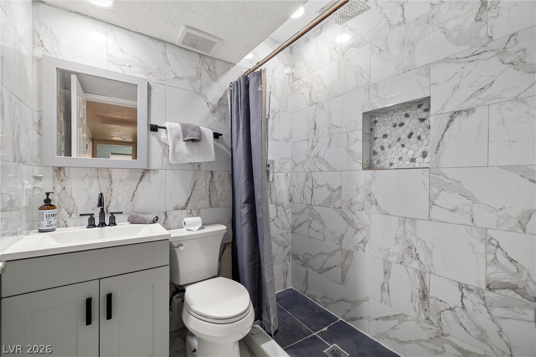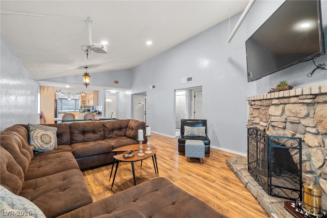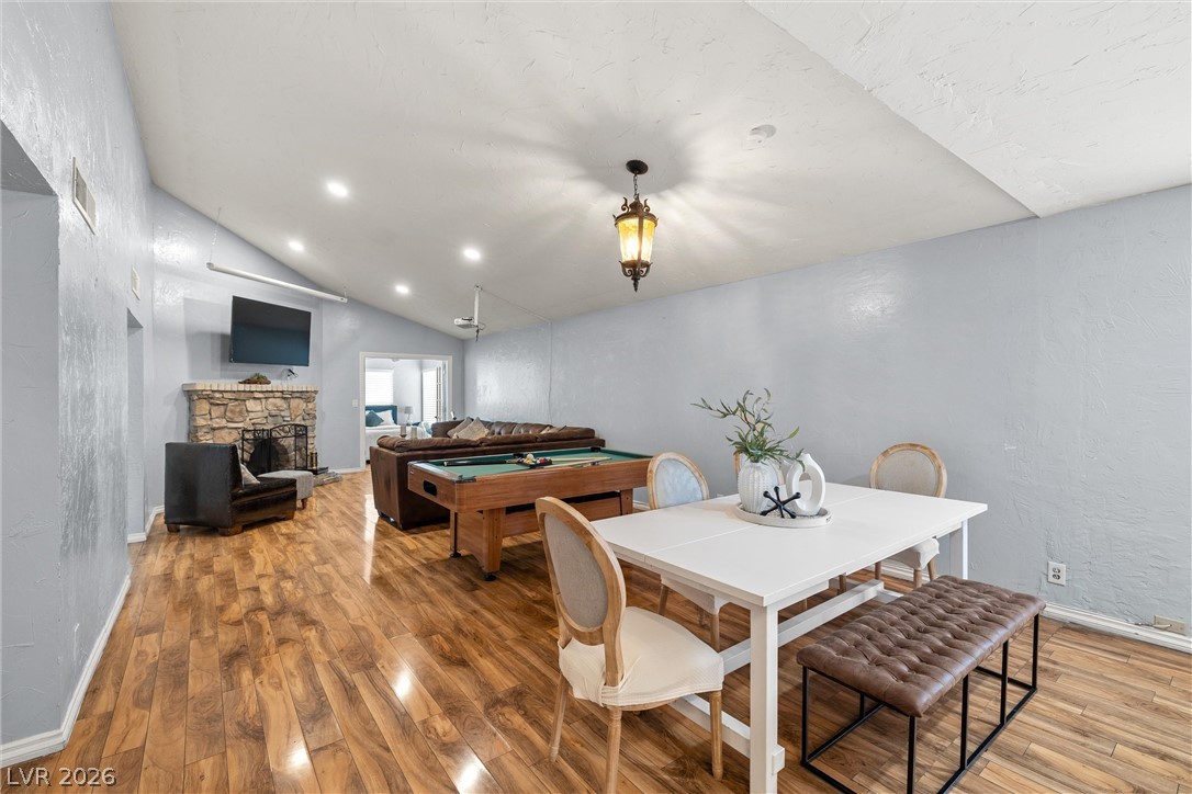 GREAT LOCATION*FULLY RENOVOVATED*PAID OFF TESLA SOLAR PANELS*PRIVATE POOL*NOHOA Move-in ready 4-bedrooom, 3-bath home just minutes from the Strip yet tucked away in a quiet, sanctuary-like neighborhood. Surrounded by shops, supermarkets, restaurants, and cafes, convenience is at your doorstep. This renovated property boasts smart features including fully paid off Tesla solar panels, Nest thermostat, security cameras, and upgraded pool equipment. A built-in video projection system with cinematic screen enhances family time and entertainment. The open concept kitchen offers granite counters, 42" upgraded cabinets, stainless steel appliances, flowing seamlessly into the dining room and great room. Bedrooms are thoughtfully placed on one side, each near an updated bathroom with modern fixtures and tile. Unique light fixtures, a cozy fireplace and solid flooring add warmth and style. The backyard is designed for relaxation and fun, featuring a sparkling pool and out door movie setup.