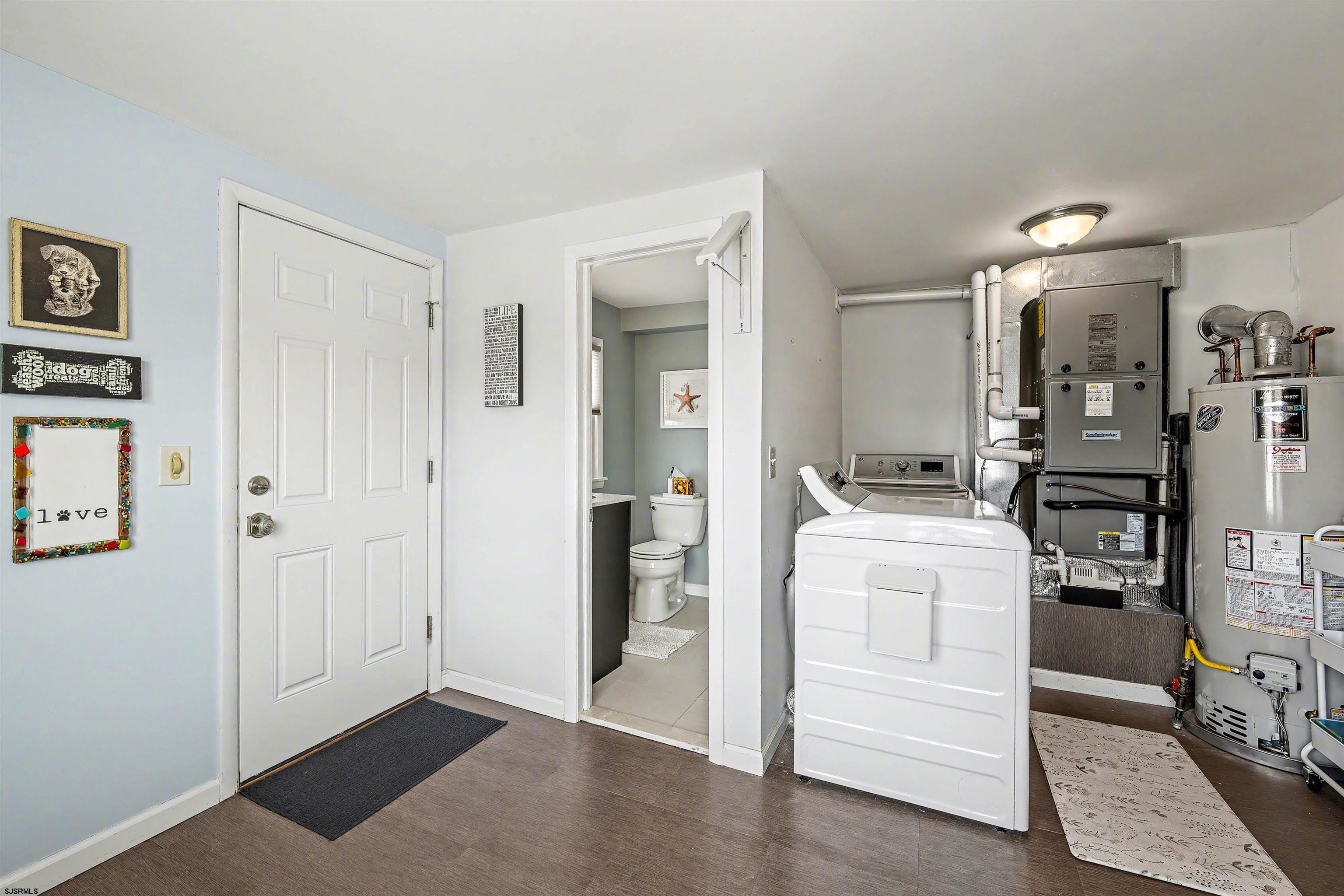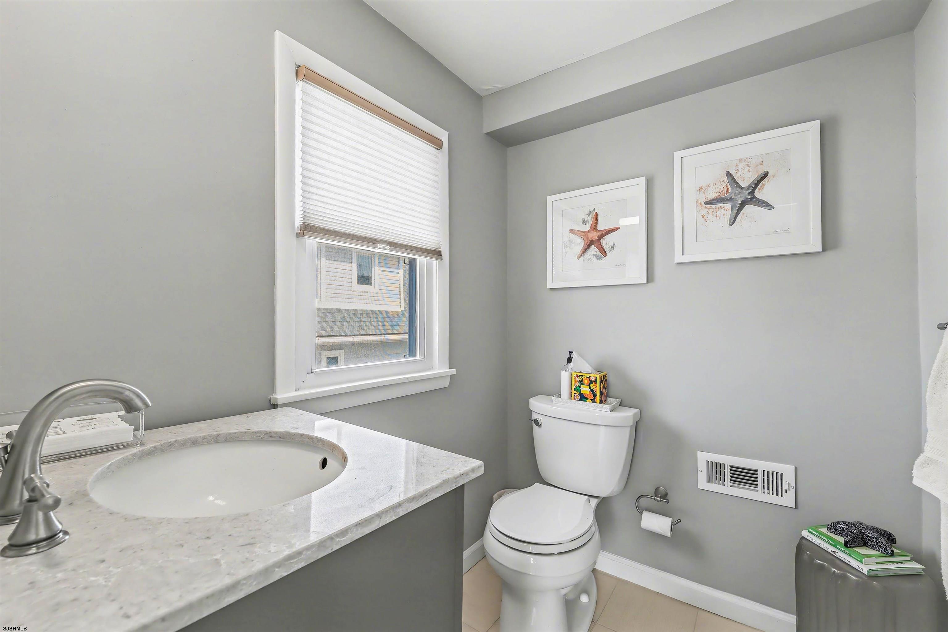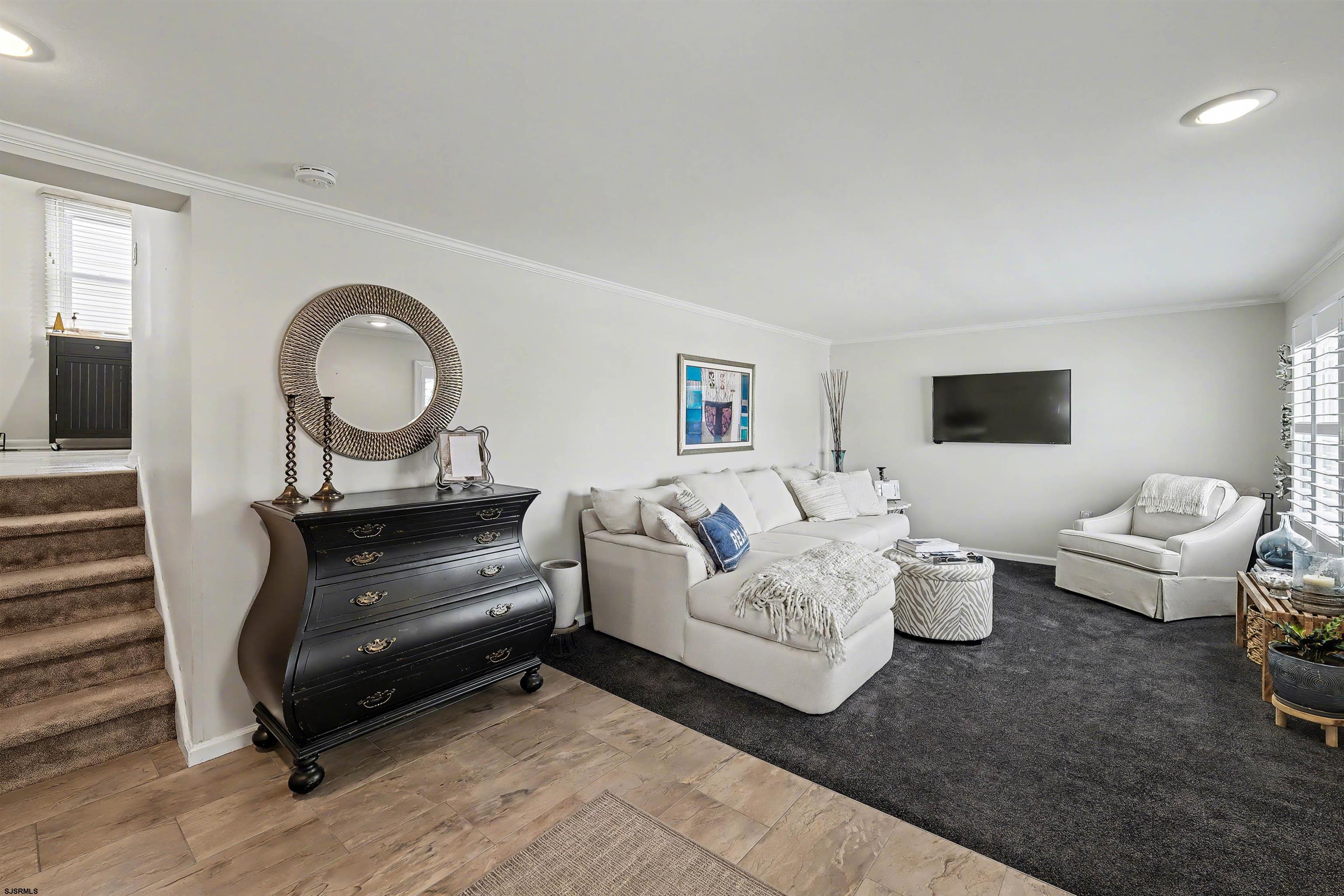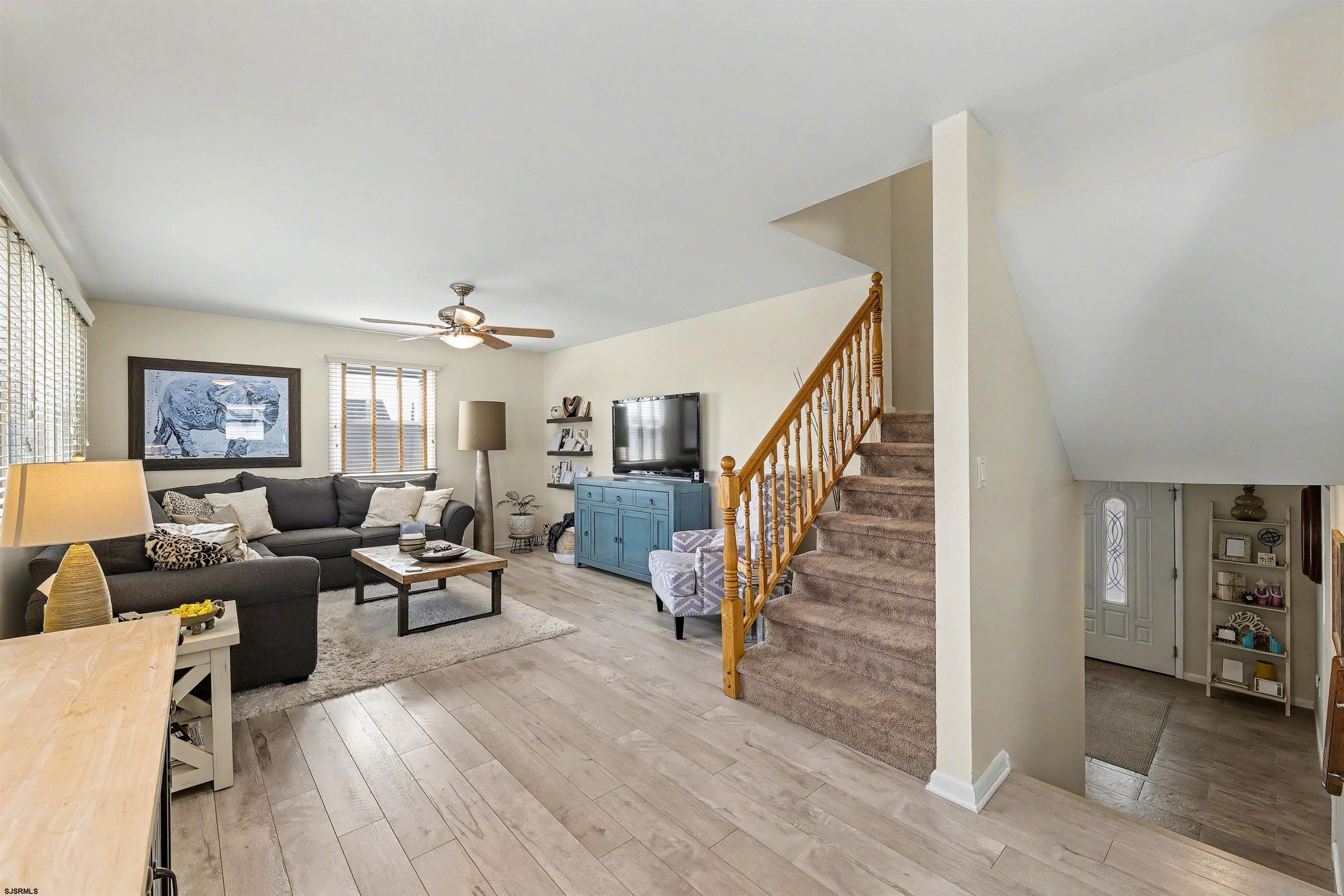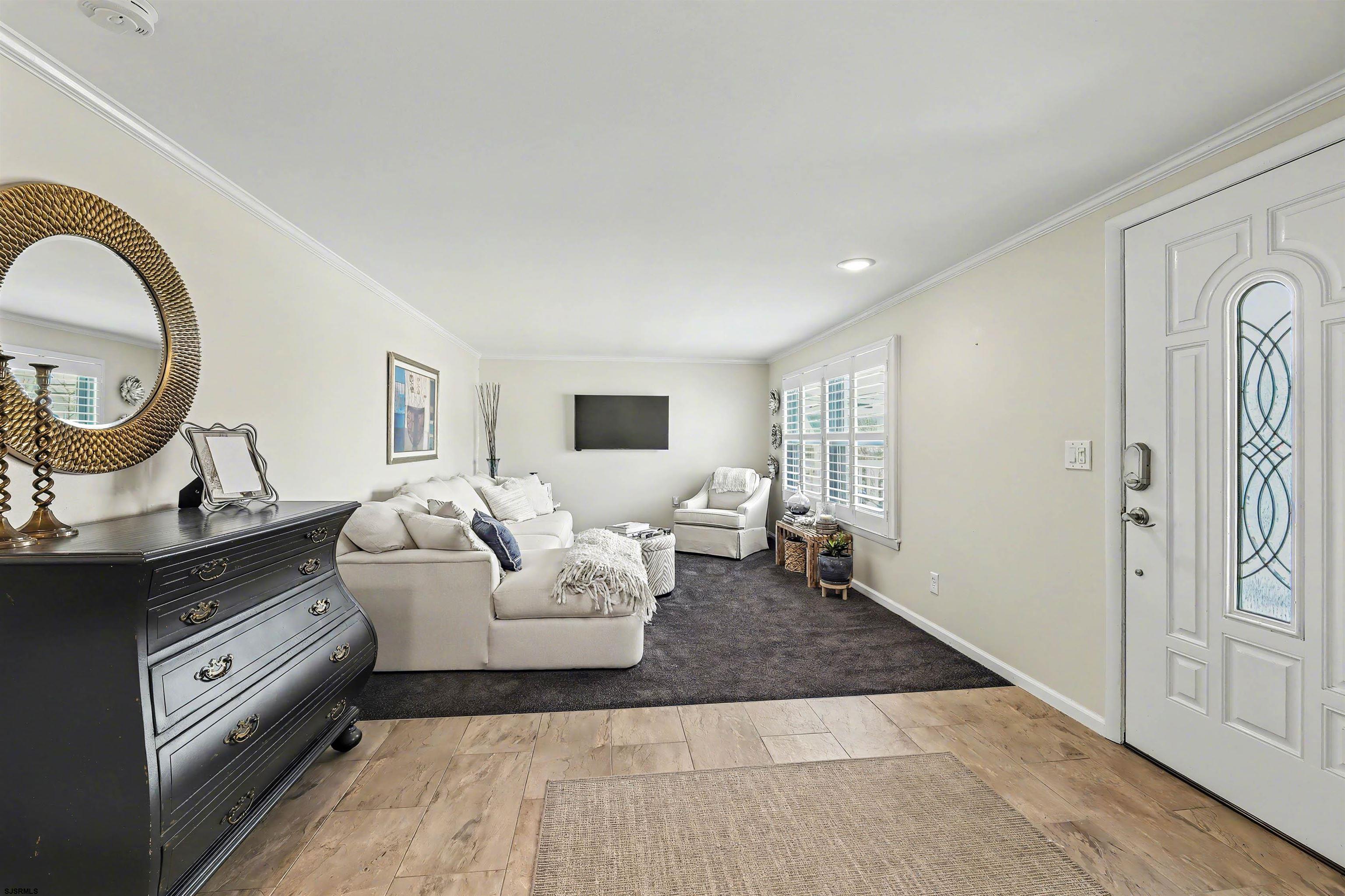 Beautiful and charming 3 bedroom 1.5 bathroom split level home located in the desirable Ventnor Heights neighborhood. Upon entering the stunning, custom tiled foyer, to the right is a cozy den and to the left you will find a large laundry/mud room, 1/2 bath and side entry door. Newer hot water heater, as well as newer washer and dryer. Walk up a few steps to the open concept kitchen/ dining area. The kitchen boasts floor to ceiling cabinets, newly installed luxury vinyl plank flooring creating a seamless flow in to the cozy living room. Newer appliances, instant-hot water dispenser, garbage disposal, and newer quartz countertops. Custom blinds and shutters throughout the home finish the look. Top level houses three bedrooms and newly renovated full bathroom. Side overhang attic runs length of the house plus a full attic. Roof was replaced in 2012 and in 2015-16 along with new windows, siding and a new electrical panel was installed. Central air and ceiling fans in all rooms. Expanded concrete parking pad for 4 cars or a boat. This property is a corner lot and was raised in 2015-16 with added Trex decking and Azek railing system located on deck as well as the side landing, this property has an irrigation system installed for a beautiful plush lawn. When the home was lifted in 2015-16 that created a huge area below the house with very high ceilings, electric, and a separate entry door, the space can be used for so many things, currently being used as a gym and storage, could be used as a teens hang out, home office, band rehearsal, crafting etc. Great neighborhood and location with easy access to the beach, bay, ballfield, shopping and so much more! This home has the potential to add a stall shower to the half bath if desired.