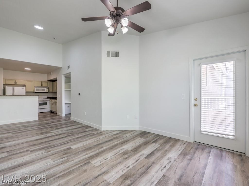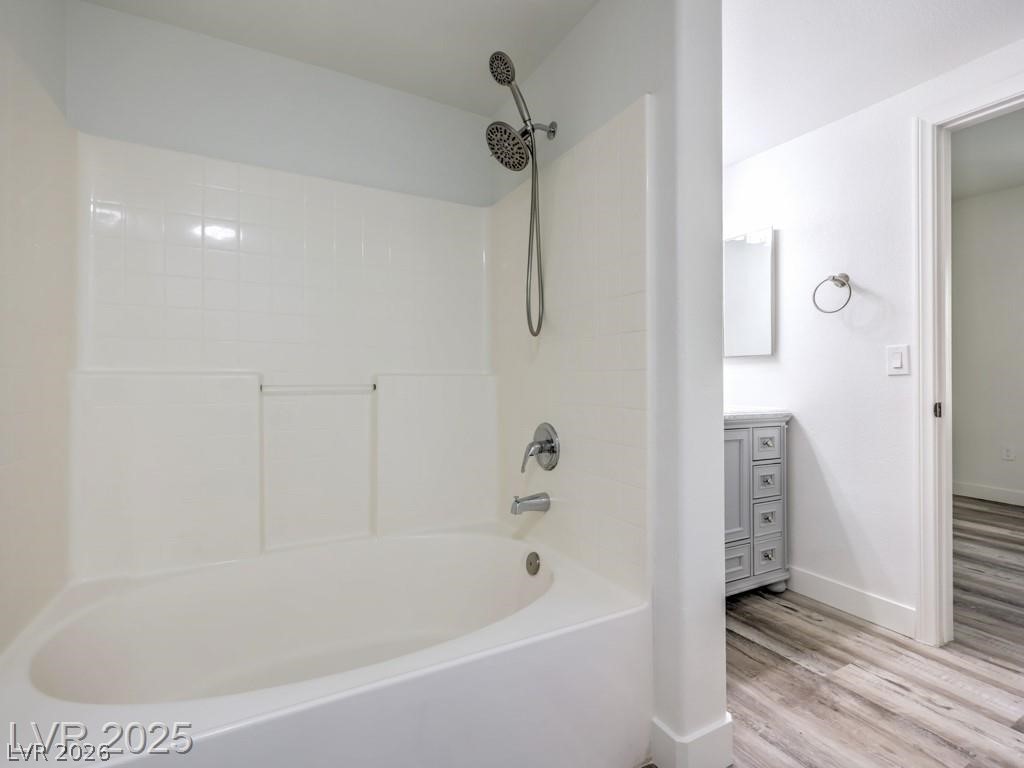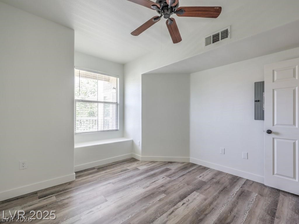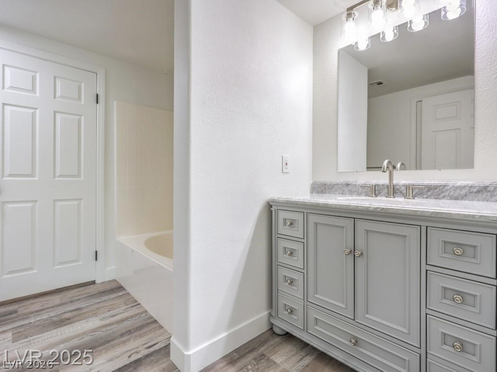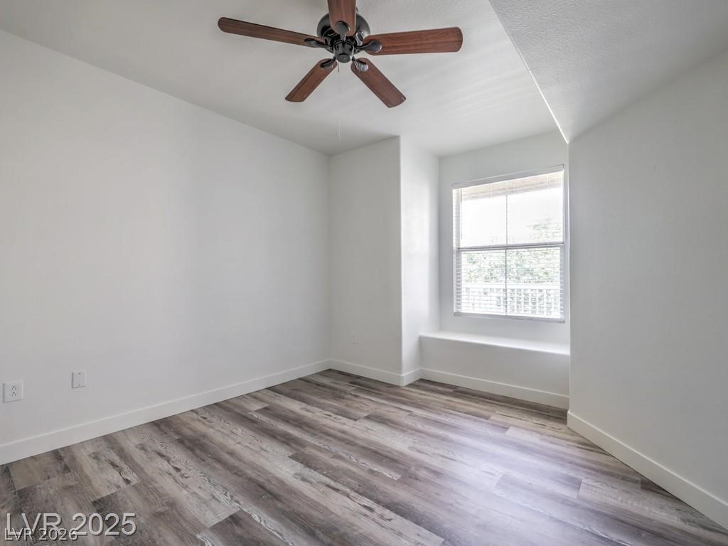This delightfully updated 1-bedroom, 1-bath condo offers comfort and style in the tranquil gated community of Chateau Nouveau. Enjoy fresh paint, beautiful new flooring (no carpet), ceiling fans, and updated lighting throughout. The kitchen features granite countertops and a breakfast bar, while the renovated bathroom includes a brand new vanity. You'll love the spacious bedroom with a generously sized walk-in closet. Conveniently located just minutes from the 215 Beltway, Downtown Summerlin, shopping, schools, parks, and recreation. Community amenities include a sparkling pool, relaxing spa, clubhouse, and exercise room. Ready for you to move in and enjoy!