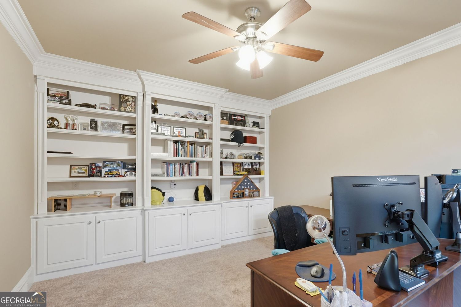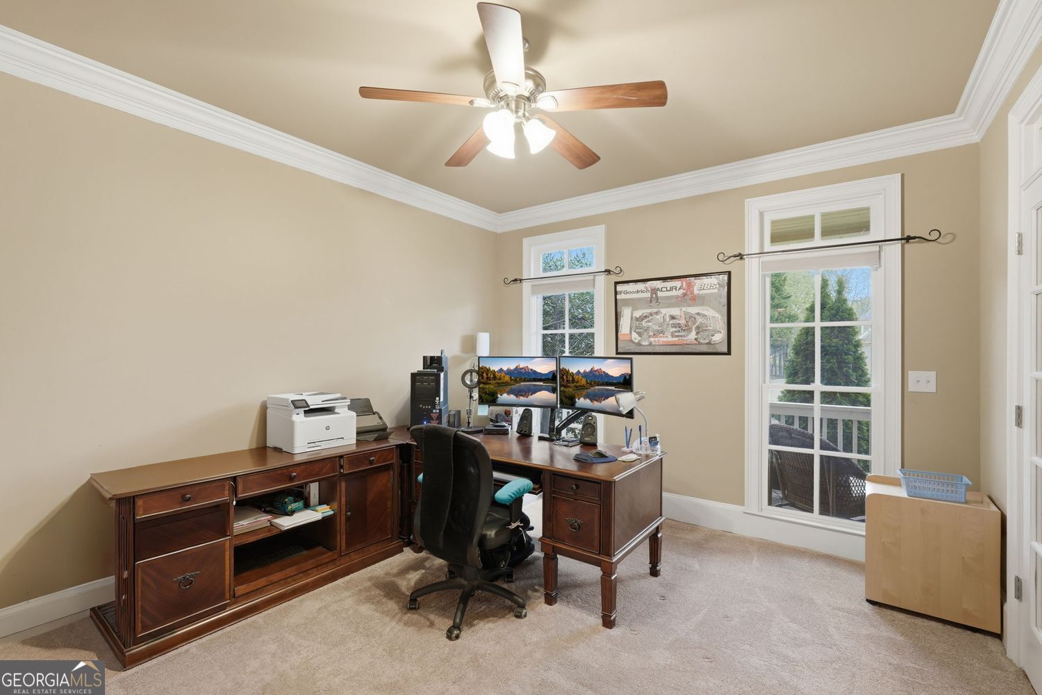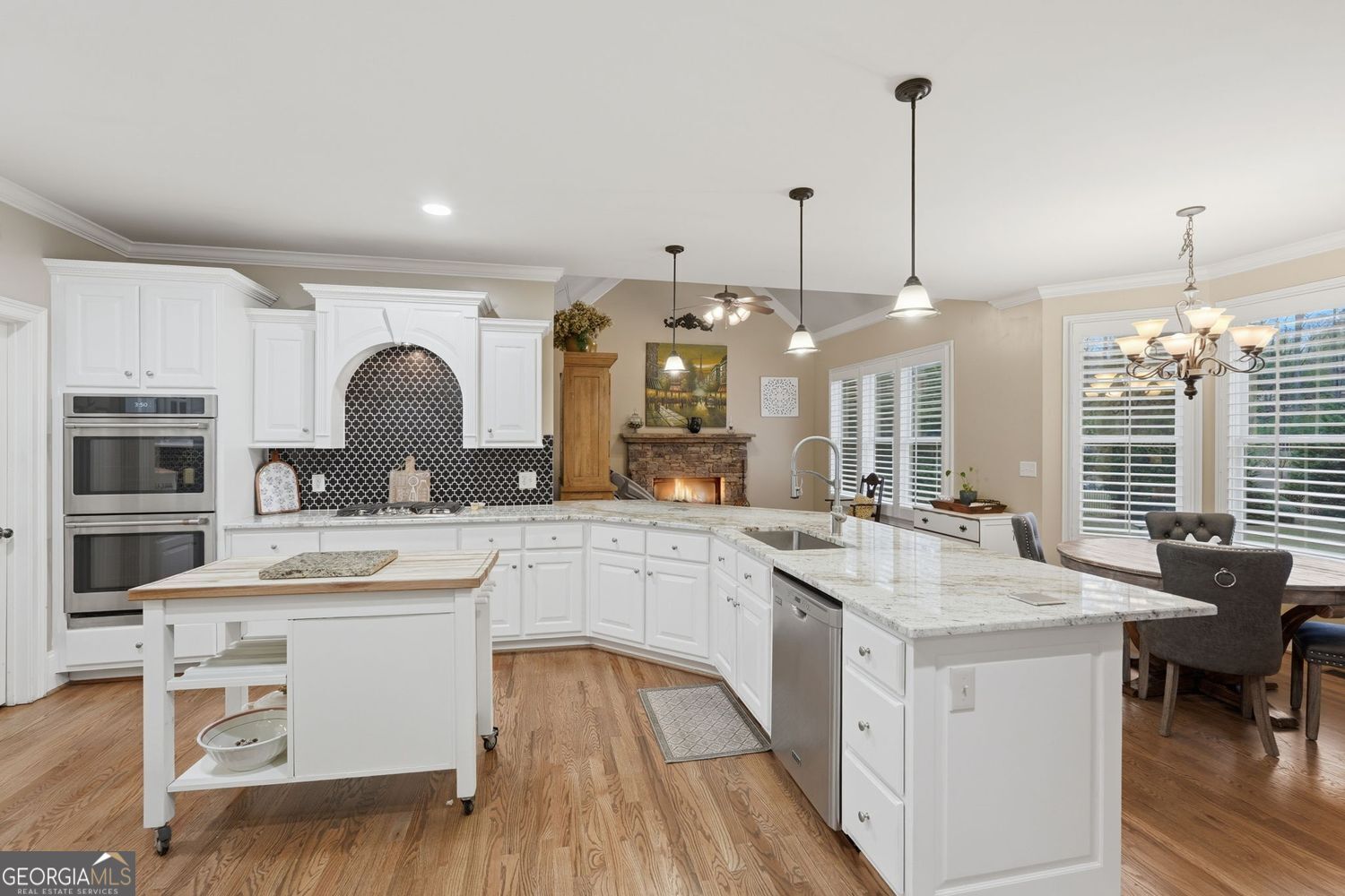 BEAUTIFUL FOUR-SIDED BRICK HOME situated on a landscaped corner lot in the popular LAKE ASTORIA swim/tennis community. Offering nearly 6,000 square feet of finished living space, this home is designed for both everyday comfort and convenient entertaining. This spacious property features 5 bedrooms, 4.5 baths plus a DEDICATED OFFICE with built-ins, a formal dining and multiple living areas, including a vaulted family room with a wall of windows, a keeping room and a finished terrace level. REAL HARDWOOD FLOORS on the main level. The spacious kitchen includes granite countertops, walk-in pantry, separate butler's pantry and access to the oversized deck area. A vaulted keeping room with fireplace sits just off the kitchen, creating a warm and functional gathering space. Upstairs, the spacious primary suite features its own romantic fireplace, custom built-ins, and a spa-inspired bath complete with whirlpool tub, dual vanities, and an oversized dual-head tiled shower. Secondary bedrooms are all generously sized, each offering a walk-in closet. Two share access to a Jack-and-Jill bath and an additional en-suite bedroom provides flexibility for family and guests. The finished terrace level expands the living space with a large secondary living area, a game room w/ pool table, an exercise room, bedroom, full bath, and ample storage, making it ideal for multi-generational living or extended stays. Enjoy outdoor living on the huge, upper-level open deck overlooking the beautiful backyard (large enough to accommodate a pool). An underdeck rain system protects the covered patio below, providing comfortable shady outdoor lounging space. ADDITIONAL HIGHLIGHTS include: a 4-car garage (3-car with hydraulic lift for a 4th vehicle), separate HVAC systems for each level. This home offers the space, functionality, and features today's buyers are seeking in a prime setting.