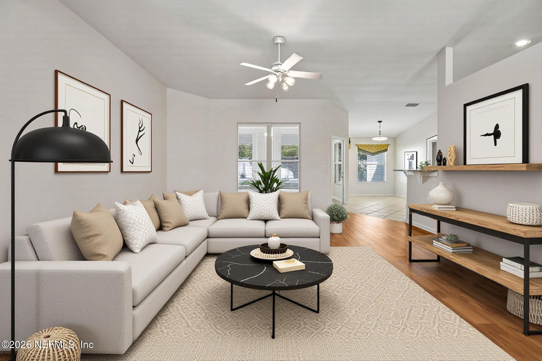 Welcome to this lovely Mandarin home tucked away on a quiet cul-de-sac street in a convenient location. The home features engineered wood floors in the dining room, living room and hall, wood blinds throughout & 10-ft ceilings in the living areas, creating an open and inviting atmosphere. A large flex room is ideal for a study, home office, or additional lounge space offering versatility to suit your lifestyle. The kitchen which overlooks the living area offers granite countertops, a breakfast bar, a light and bright eating area, double sink, built-in desk, and a spacious pantry, making it both functional and practical for entertaining. An additional tiled room off the kitchen is perfect for a craft room or playroom. The primary suite boasts separate walk-in closets and a private bath with double sinks, garden tub, water closet, and linen closet. A split bedroom floor plan provides added privacy for family/guests. Roof and HVAC replaced in 2020, No CDD fees and low HOA.