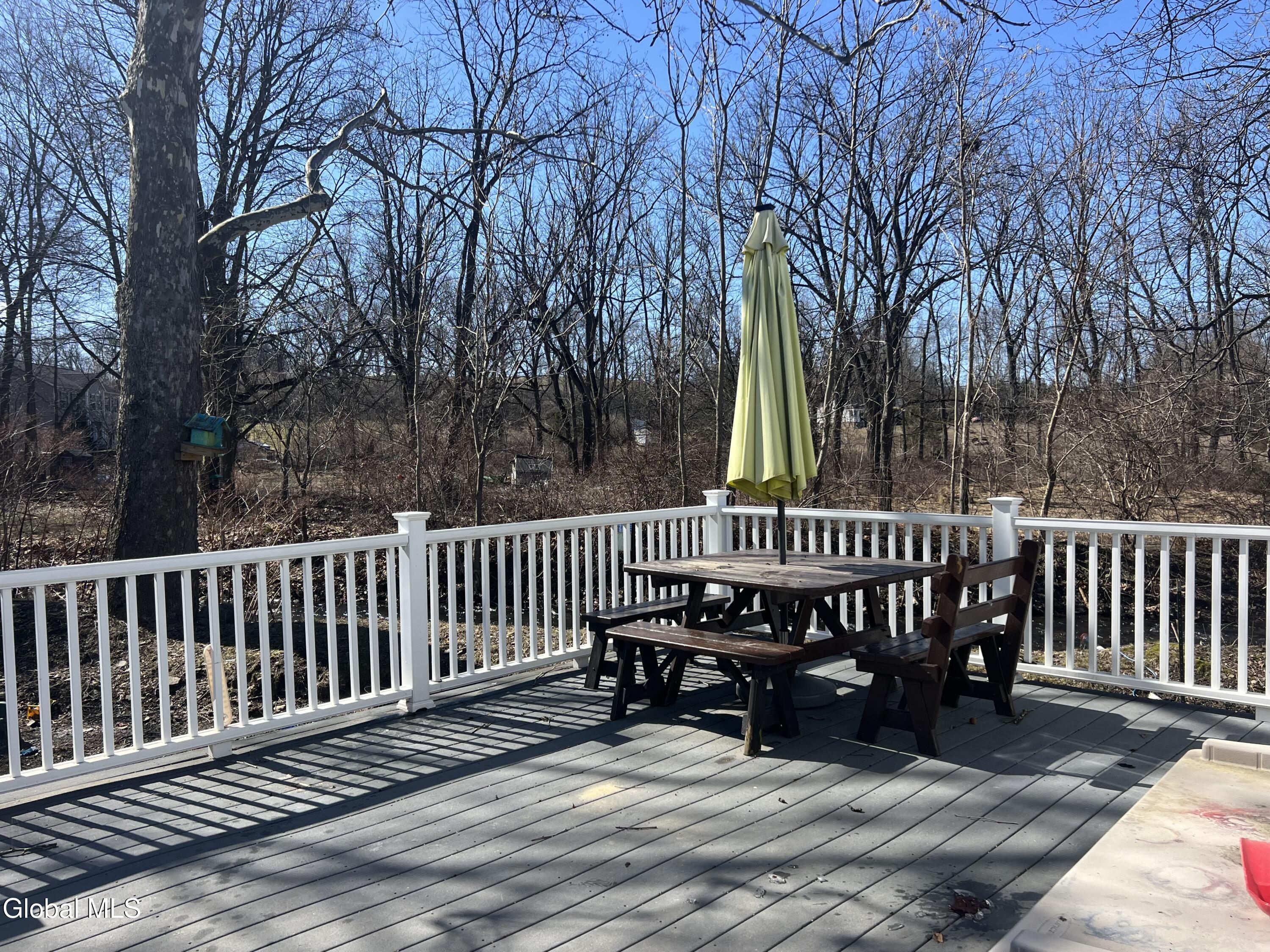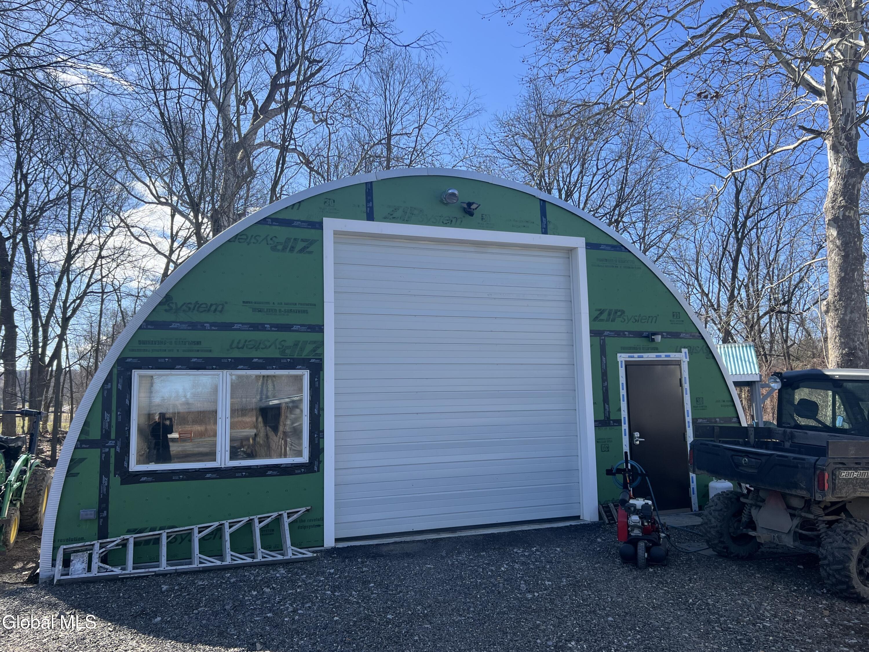 Wonderful Claverack ranch style country home sitting on 1 acre with meandering stream throughout the property. Updated eat-in kitchen with commercial Viking range, stainless appliances and French door to large Trex deck. Living room with beamed ceiling, primary bedroom with 1/2 bath. Porch has been used as 3rd bedroom. Furnace is 4 years old, windows replaced and roof is 10 years old. Outside is a 30x30 Quonset hut with 12 foot door, concrete floor, propane heat and 100 amp electric. Also on property is a grandfathered mobil home, currently used for storage but with a little TLC could be a great guest or in-law area. Mobil home can be replaced with a new same size home. Separate electric, well/septic shared with main property. Taconic schools and close to Hudson.
