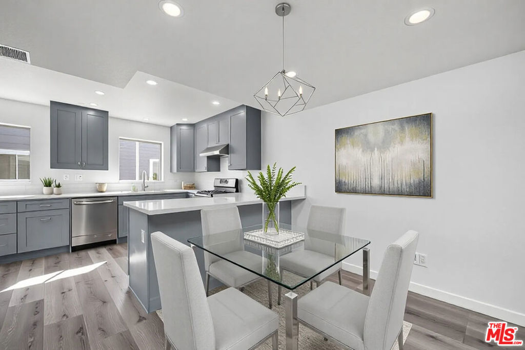 Step into this stunningly remodeled tri-level 2-bedroom townhome in Sherman Oaks with private access garage, offering both style and functionality. This walk-up unit welcomes you with an open-concept living space, featuring a bright and modern kitchen with brand-new cabinetry, quartz countertops, and a charming breakfast nook. The spacious living and dining area boasts a cozy fireplace and a front-facing balcony, perfect for morning coffee or evening relaxation. A conveniently located powder room completes the main level. Upstairs, you'll find 2 generously sized bedrooms, including a primary suite with an ensuite bathroom and private balcony. Both bathrooms have been completely renovated, and recessed lighting throughout enhances the home's contemporary appeal. The private two-car tandem garage offers direct access from the living room and includes space for a washer/dryer and ample storage. This well-maintained, secure complex features a sparkling community pool, spa, and gazebo ideal for relaxation and entertaining. Located close to trendy restaurants, LA Valley College, markets, shopping, and the Orange train Line close by. This townhome is a perfect blend of comfort, convenience, and modern living. Don't miss this incredible opportunity