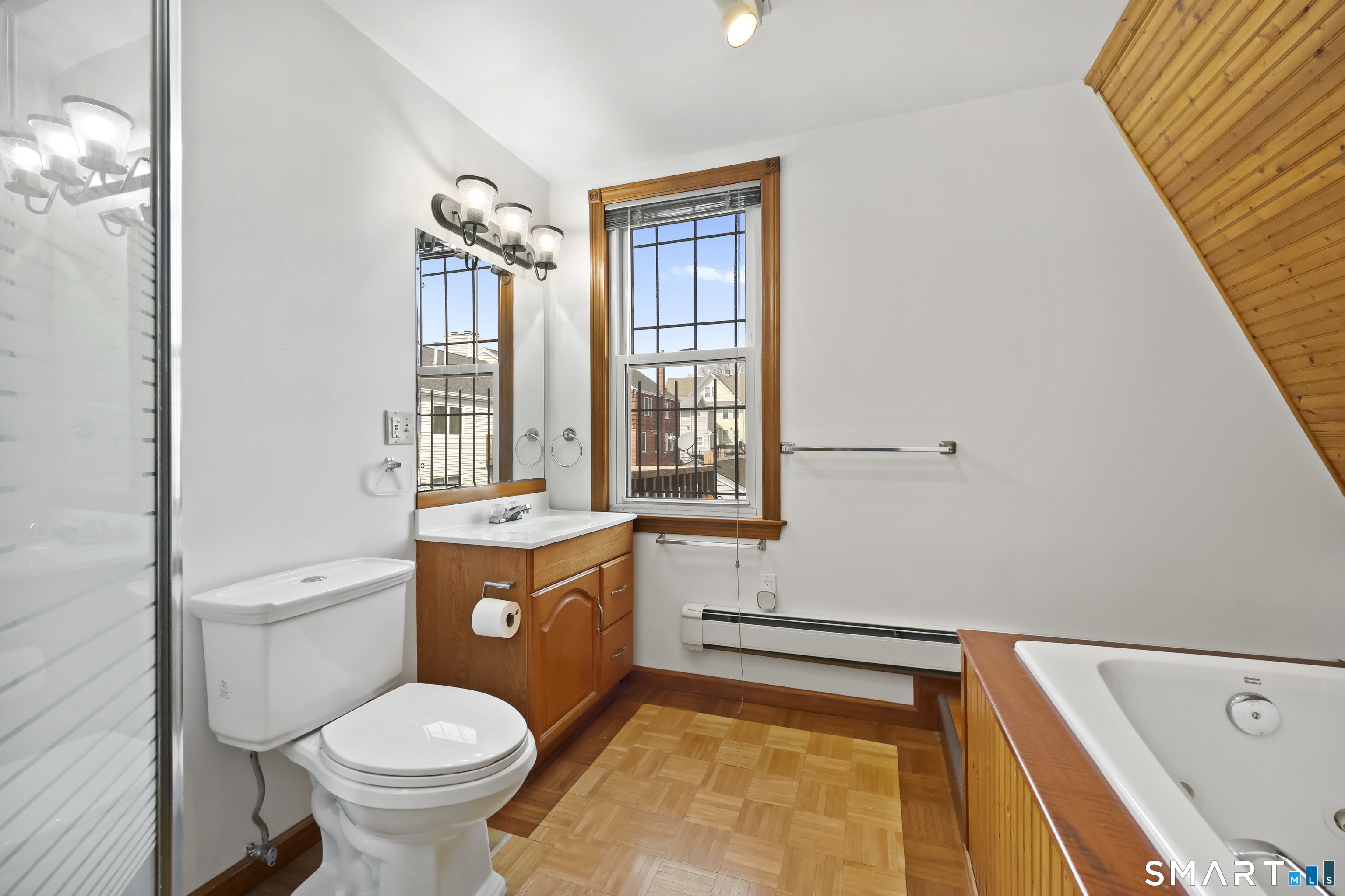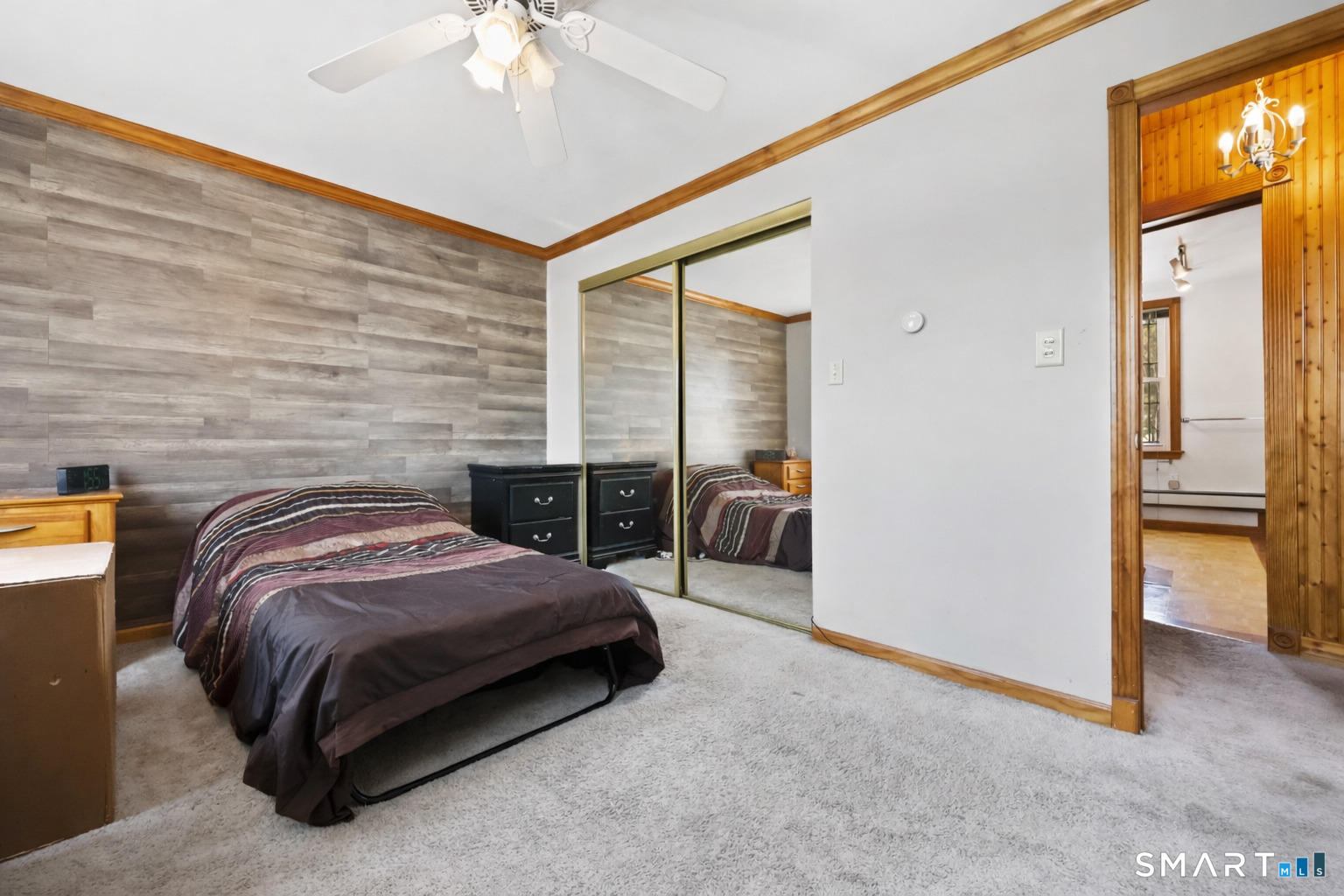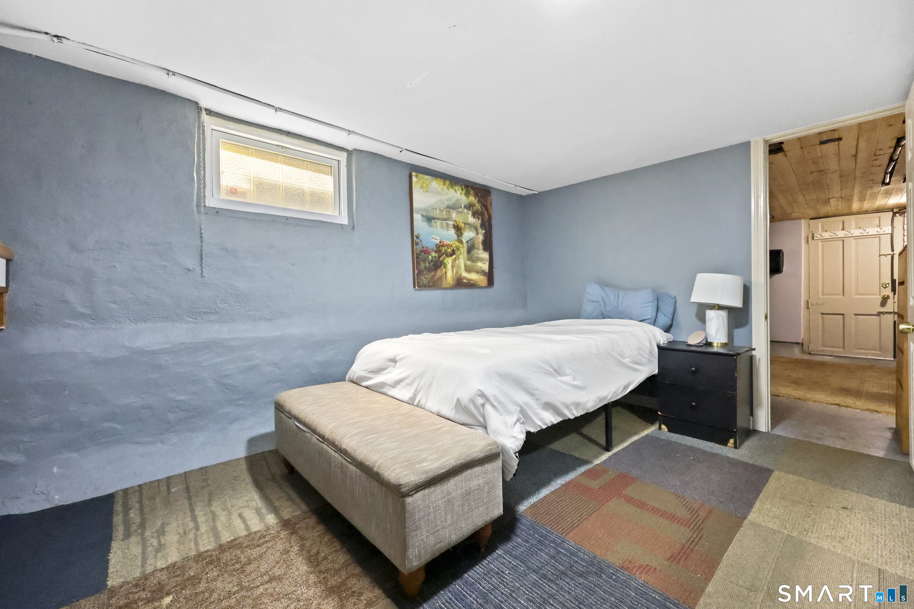 2-bedroom, 2-bathroom Colonial in Bridgeport, Connecticut. This single-family home offers a flexible layout with a one-car garage and adjacent studio space - ideal for a home office, art studio, or workshop. The main level features a living room with French doors, a formal dining room or den, a full bathroom, and a kitchen equipped with a gas range. Hardwood floors and carpeting run throughout the home. A rear porch off the kitchen opens to the backyard for outdoor dining and entertaining. The upper level includes two bedrooms, a full bathroom, and a private balcony. The finished basement adds valuable living space for a recreation room, guest suite, or additional storage. Ideally located with convenient access to major commuter routes, Metro-North stations, and the Fairfield County shoreline. A well-sized Colonial with studio space, finished basement, and outdoor living.