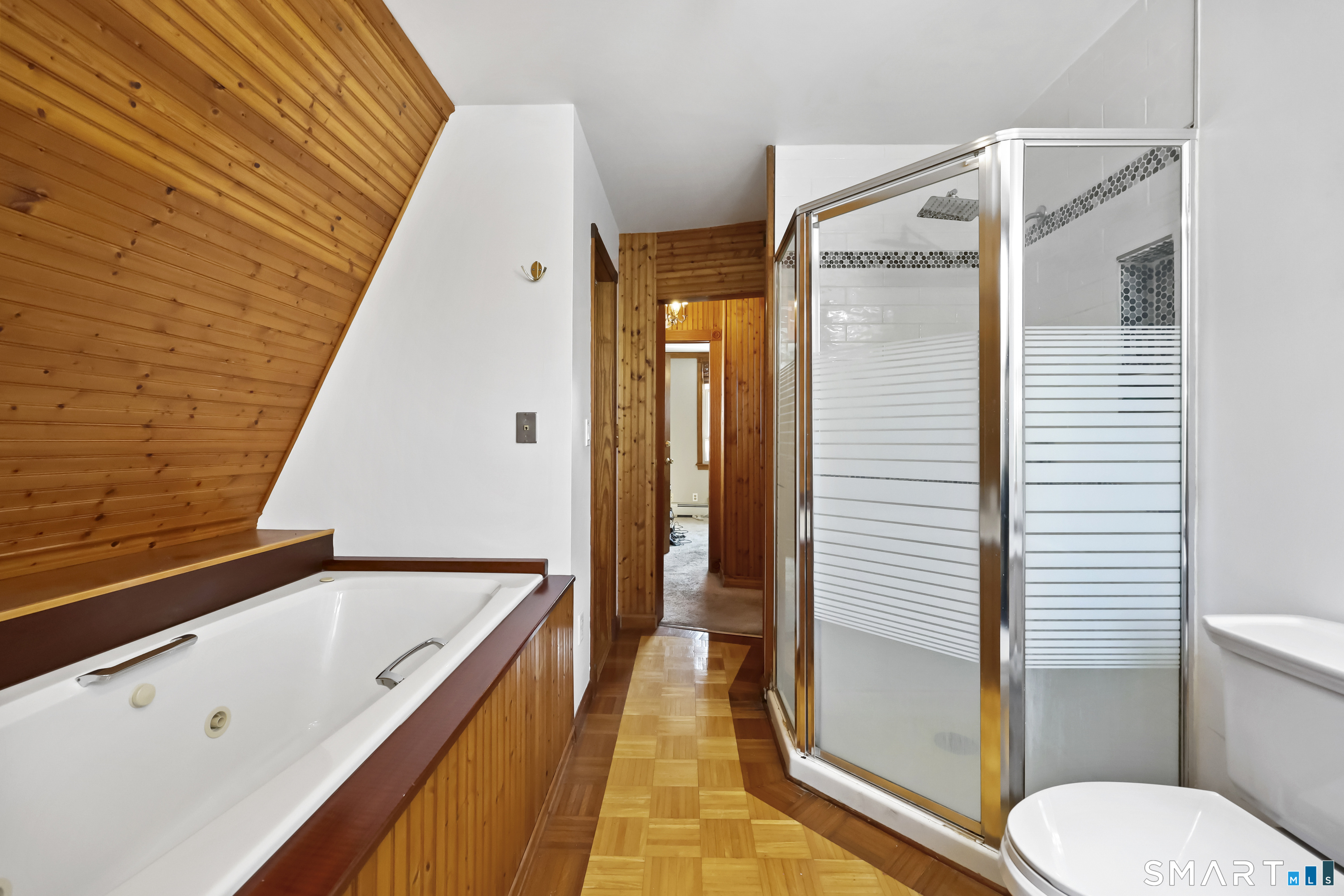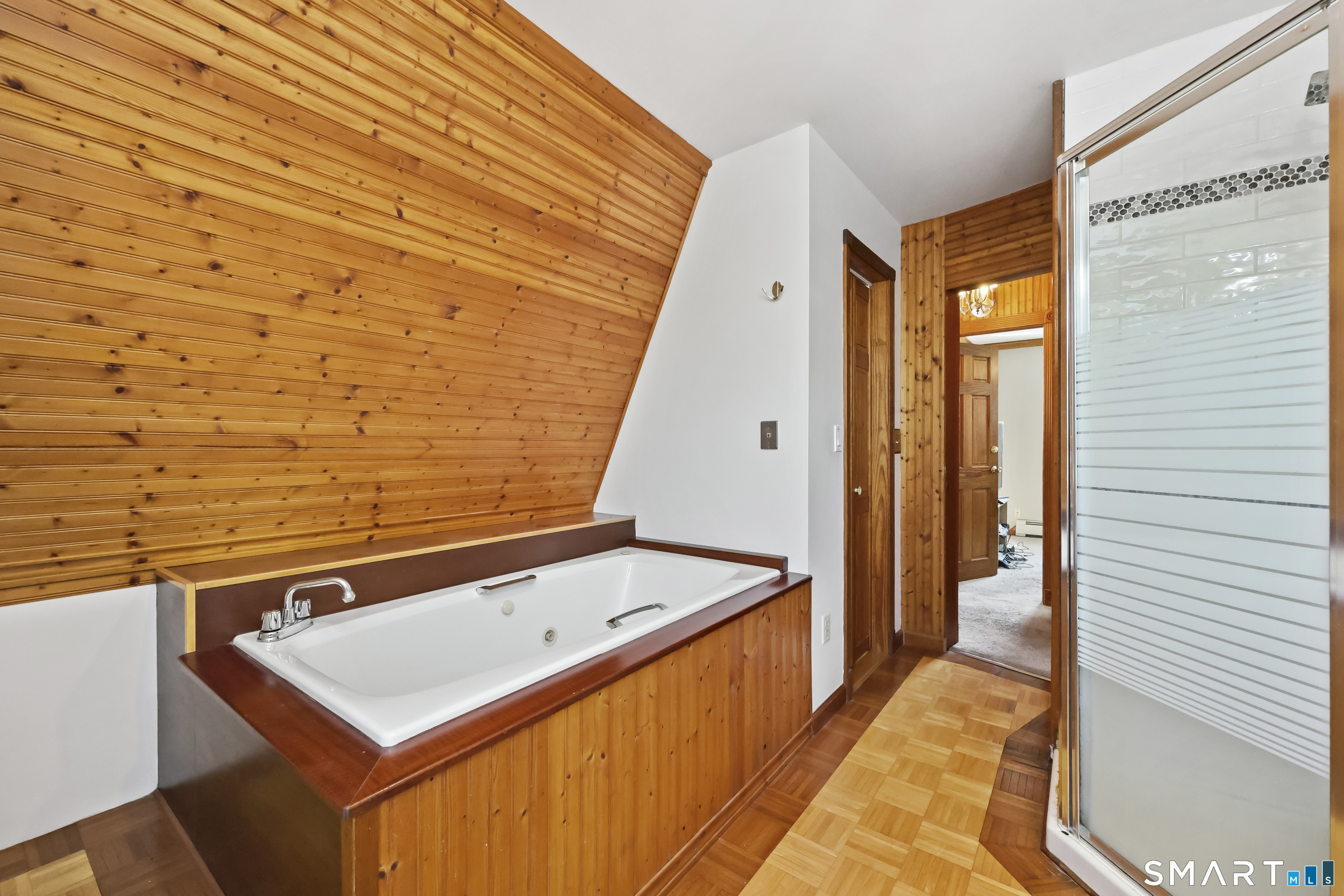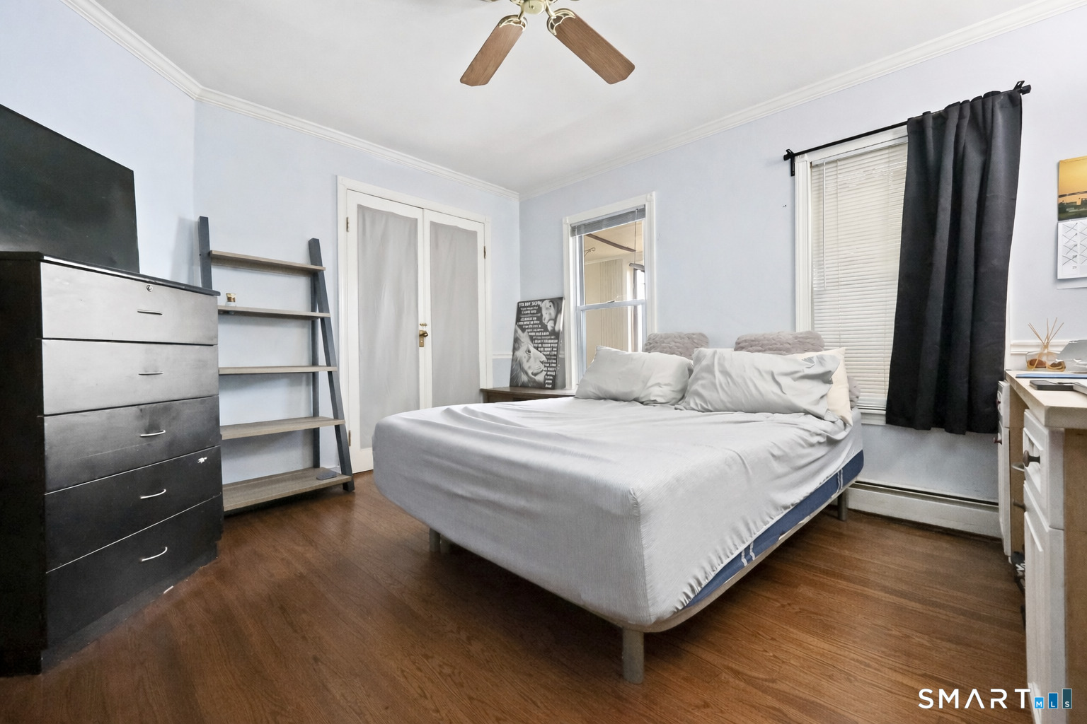 2-bedroom, 2-bathroom Colonial in Bridgeport, Connecticut. This single-family home offers a flexible layout with a one-car garage and adjacent studio space - ideal for a home office, art studio, or workshop. The main level features a living room with French doors, a formal dining room or den, a full bathroom, and a kitchen equipped with a gas range. Hardwood floors and carpeting run throughout the home. A rear porch off the kitchen opens to the backyard for outdoor dining and entertaining. The upper level includes two bedrooms, a full bathroom, and a private balcony. The finished basement adds valuable living space for a recreation room, guest suite, or additional storage. Ideally located with convenient access to major commuter routes, Metro-North stations, and the Fairfield County shoreline. A well-sized Colonial with studio space, finished basement, and outdoor living.