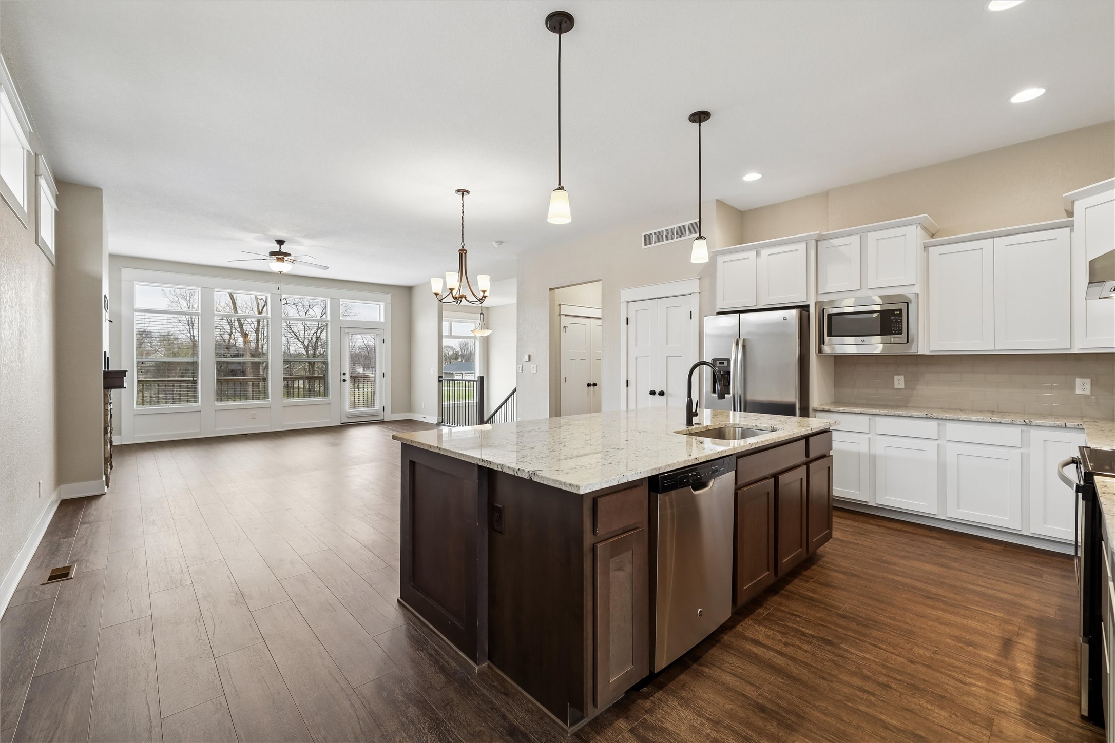 The townhome that is like a single family home without all of the outside yard maintenance. A rare walkout ranch with over 2700 finished sq ft and a true 4-bedroom layout-an uncommon find in Urbandale. Designed as a stand-alone home, it delivers the privacy and single-family living without the ongoing exterior maintenance. The main level features 10' ceilings and a bright, open-concept layout connecting the kitchen, dining, and living areas with clean. cohesive flooring throughout. The kitchen includes quartz countertops, center island, tile backsplash, and opens to the living room with a gas fireplace, creating an ideal space for daily living and entertaining. The primary suite has a tray ceiling, dual vanities, tiled shower, and walk-in closet. The fully finished walkout lower level expands flexibility with a large rec area, wet bar, two bedrooms and full bath-perfect for guests, work, or multi-generational living. Built in 2017 with 2x6 construction and Pella windows for efficiency and reduced maintenance concerns. Located in the Waukee School District with convenient access to trails, retail, dining and interstates. Opportunities like this are limited-tour it before someone else locks it in.